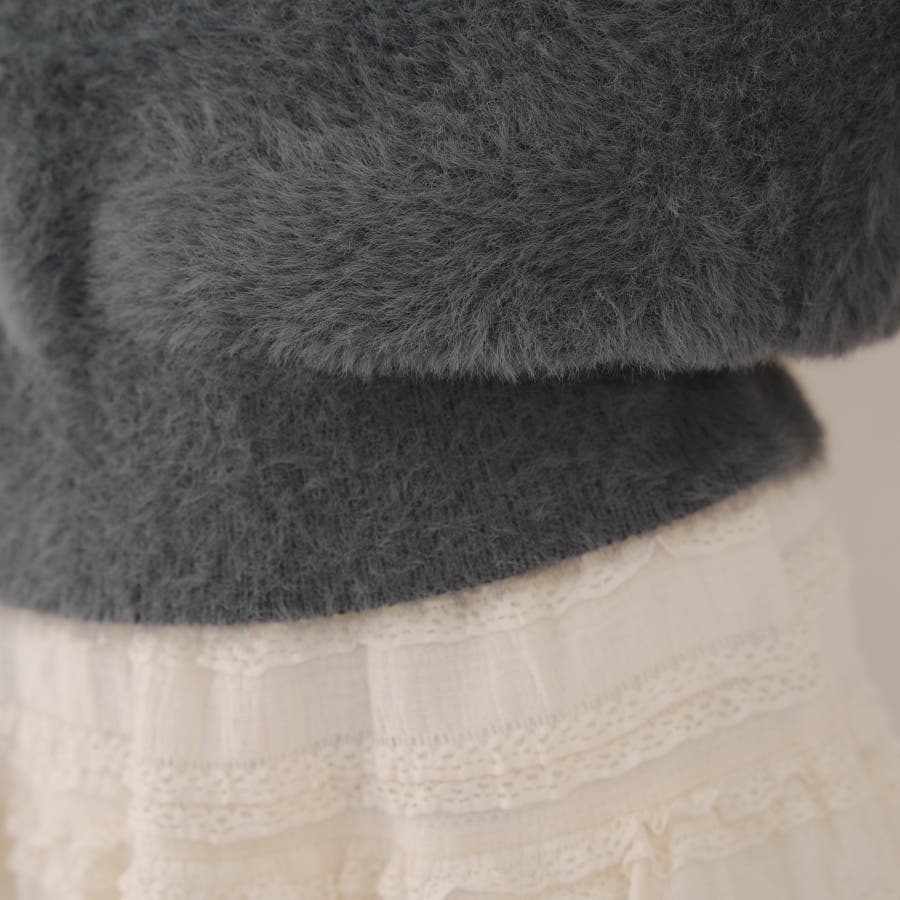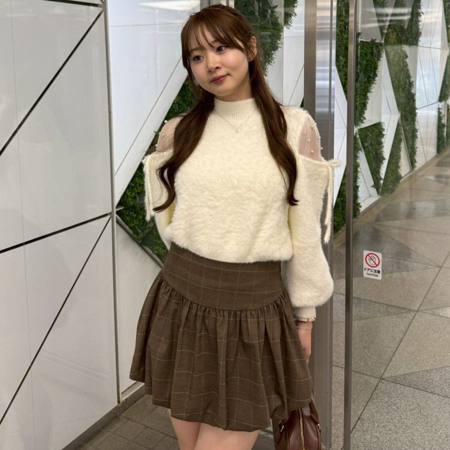 ・ヘルシーな肌見せモテコーデを楽しめるふわふわな触り心地のニット。