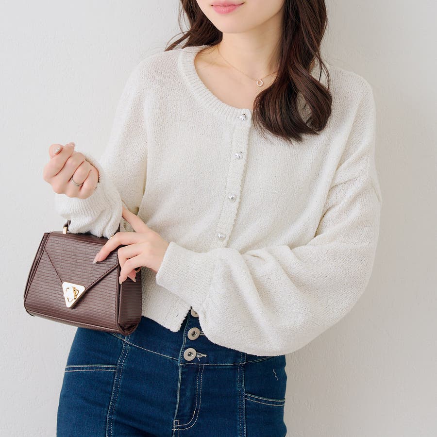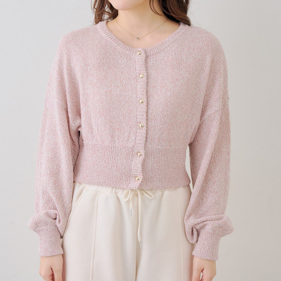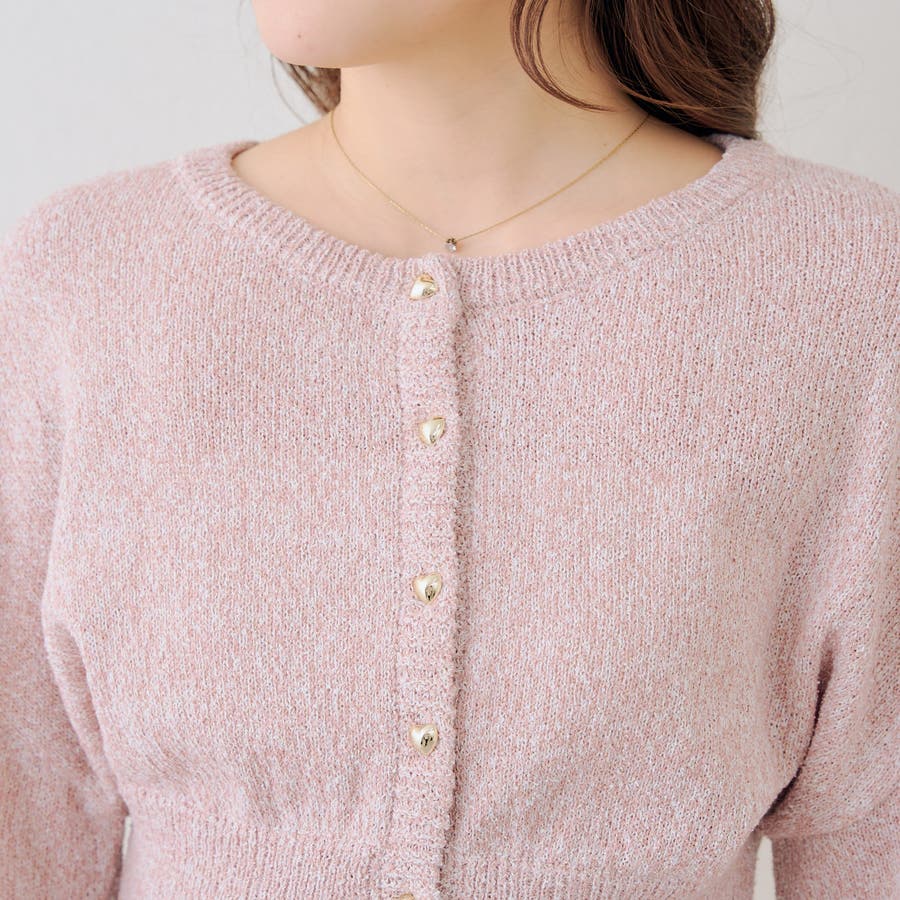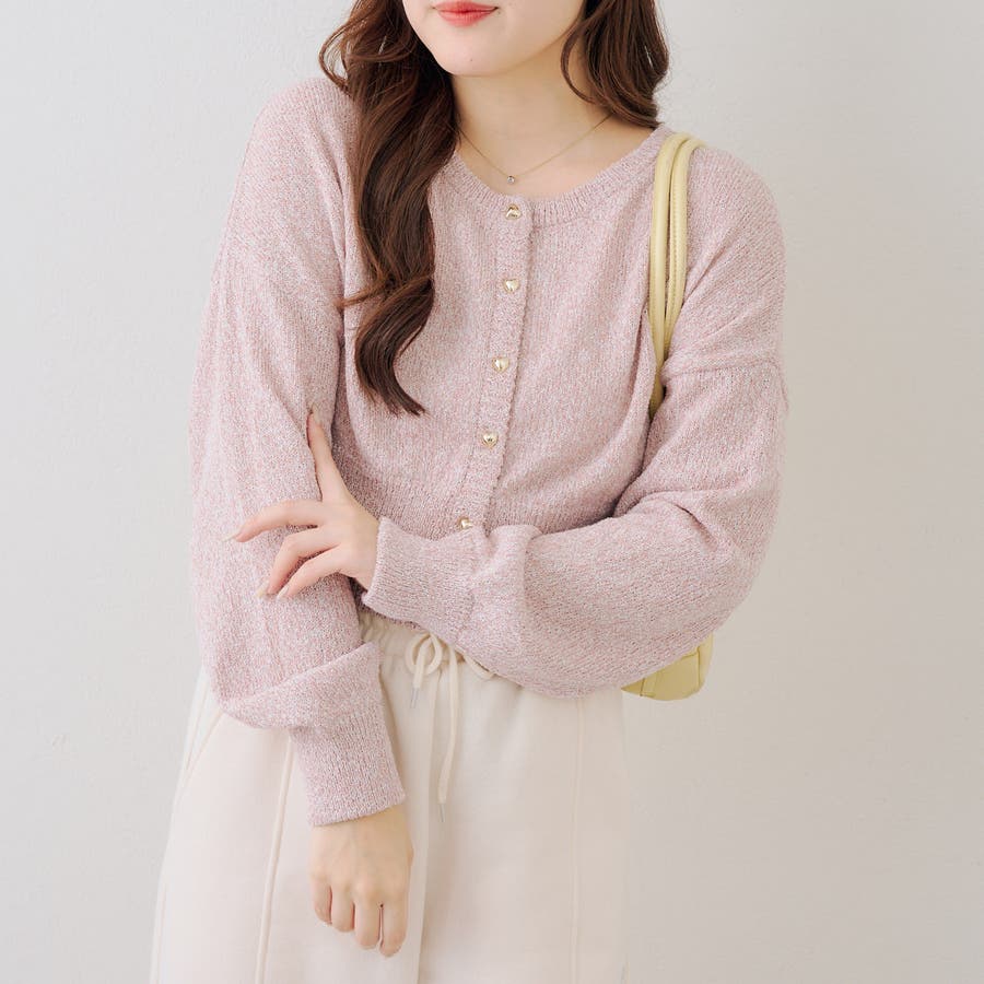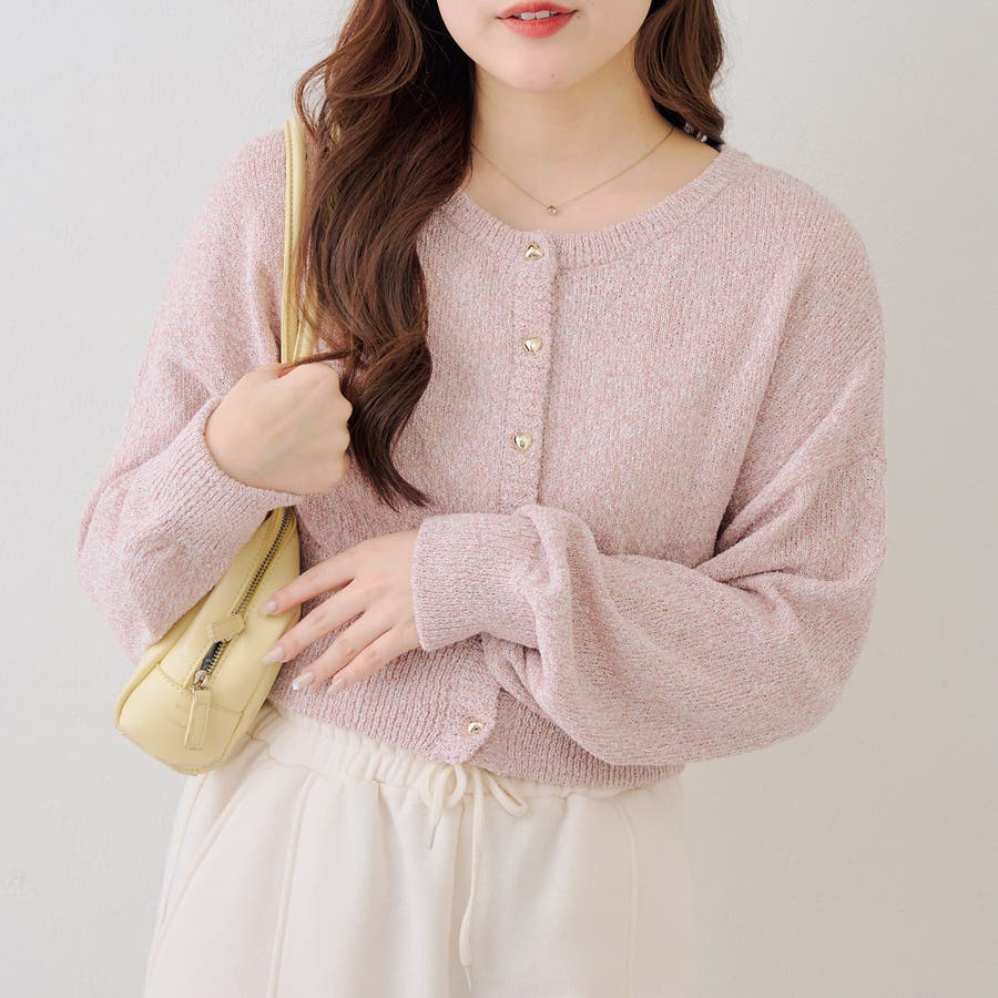 ラメハート釦クルーカーディガン