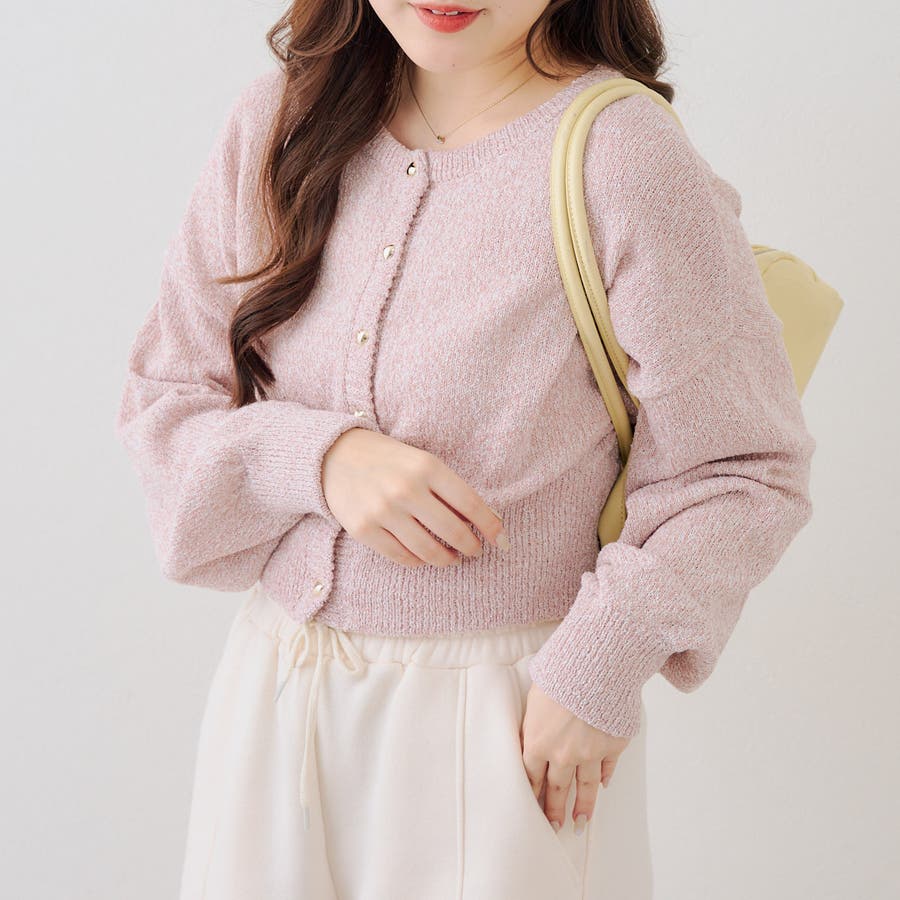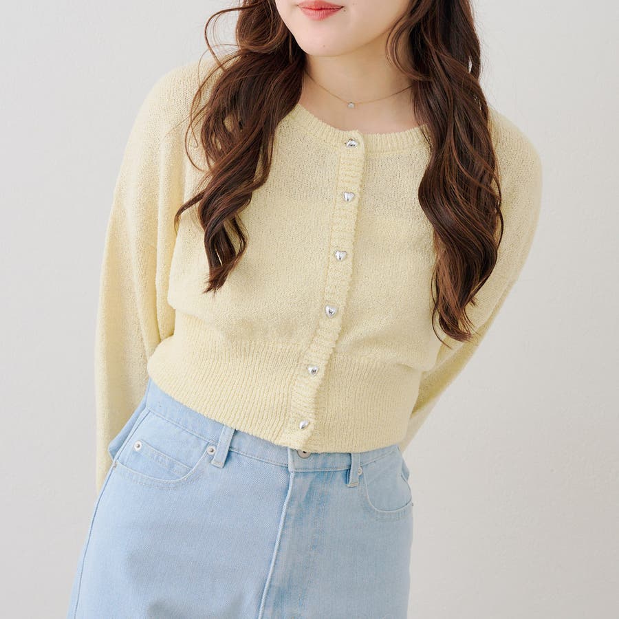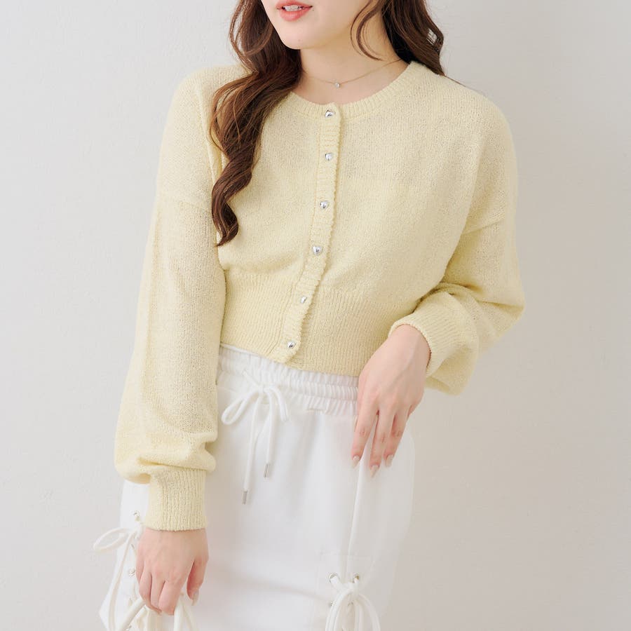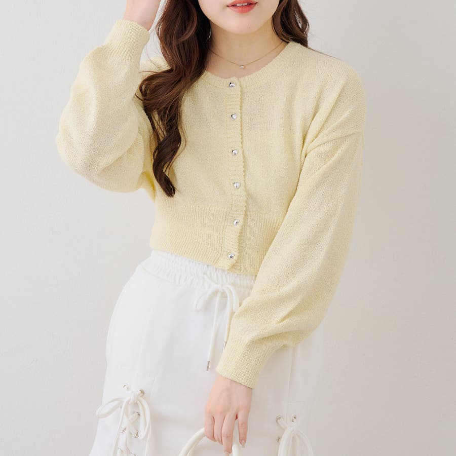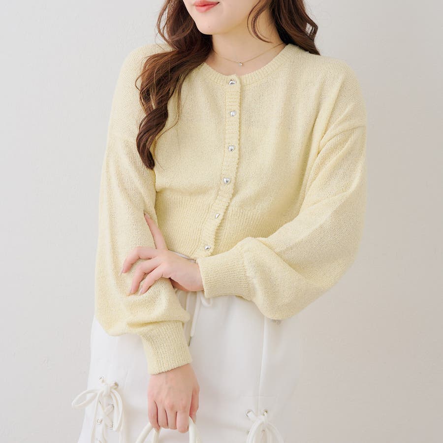 ラメハート釦クルーカーディガン