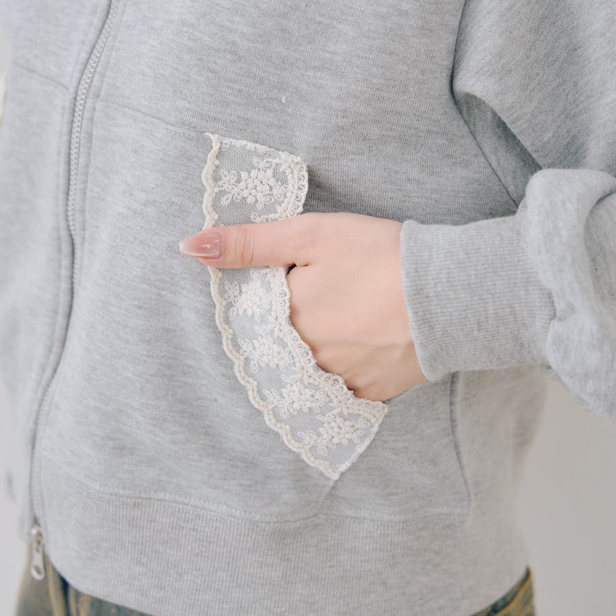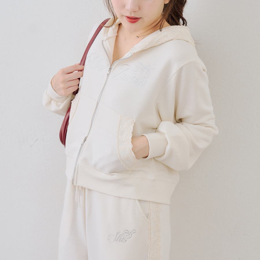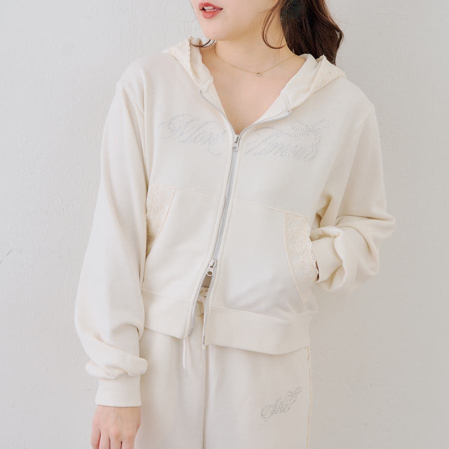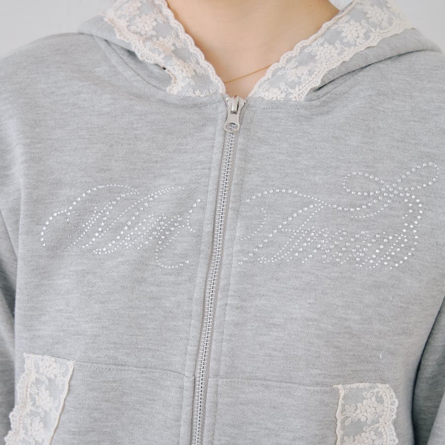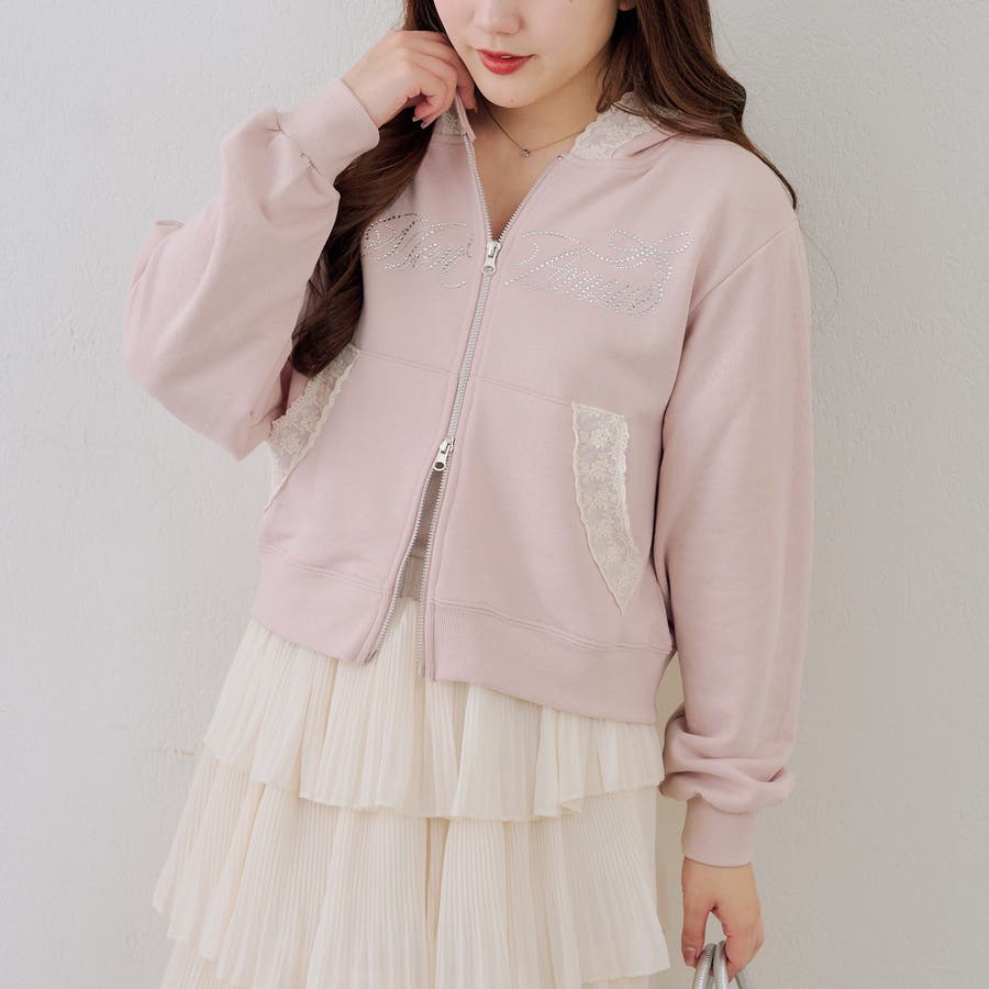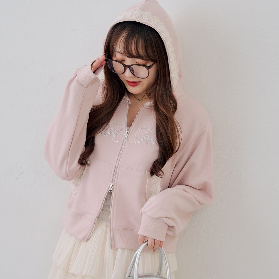 ・キラキラ輝くロゴとレースのあしらいがロマンティックなZIPパーカー
