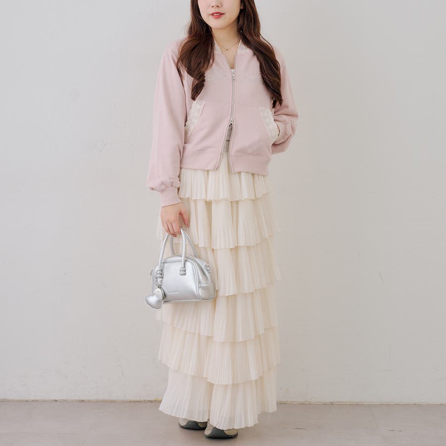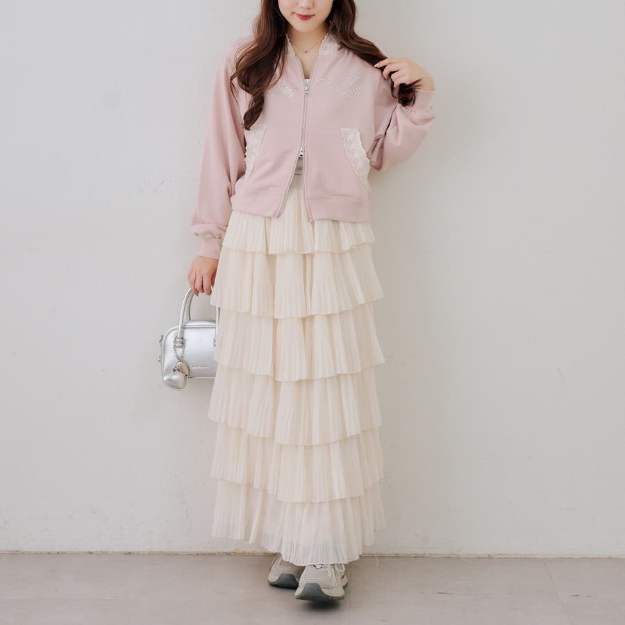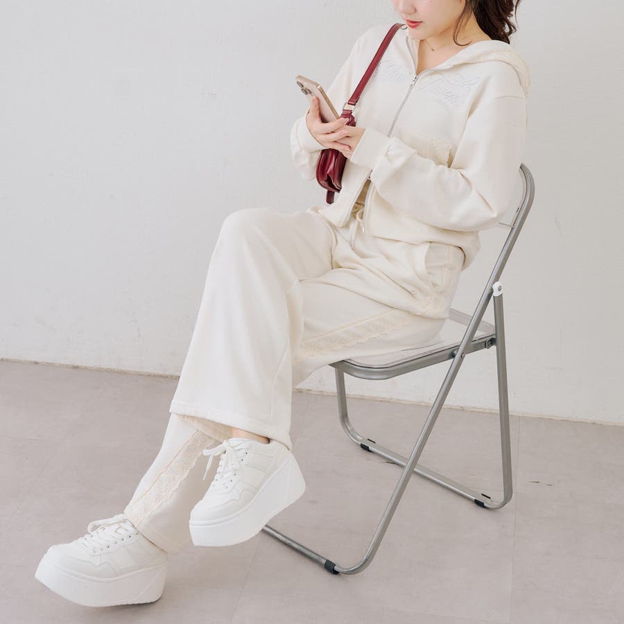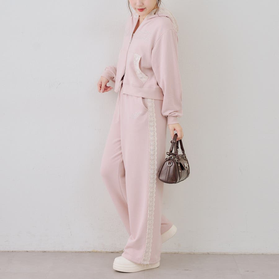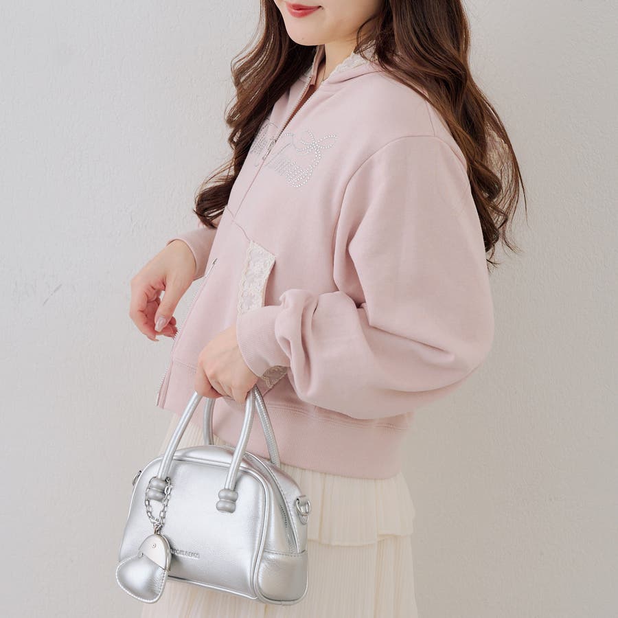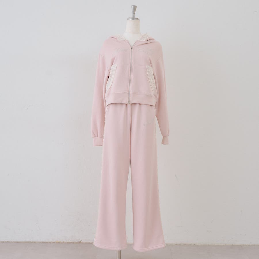 ・キラキラ輝くロゴとレースのあしらいがロマンティックなZIPパーカー