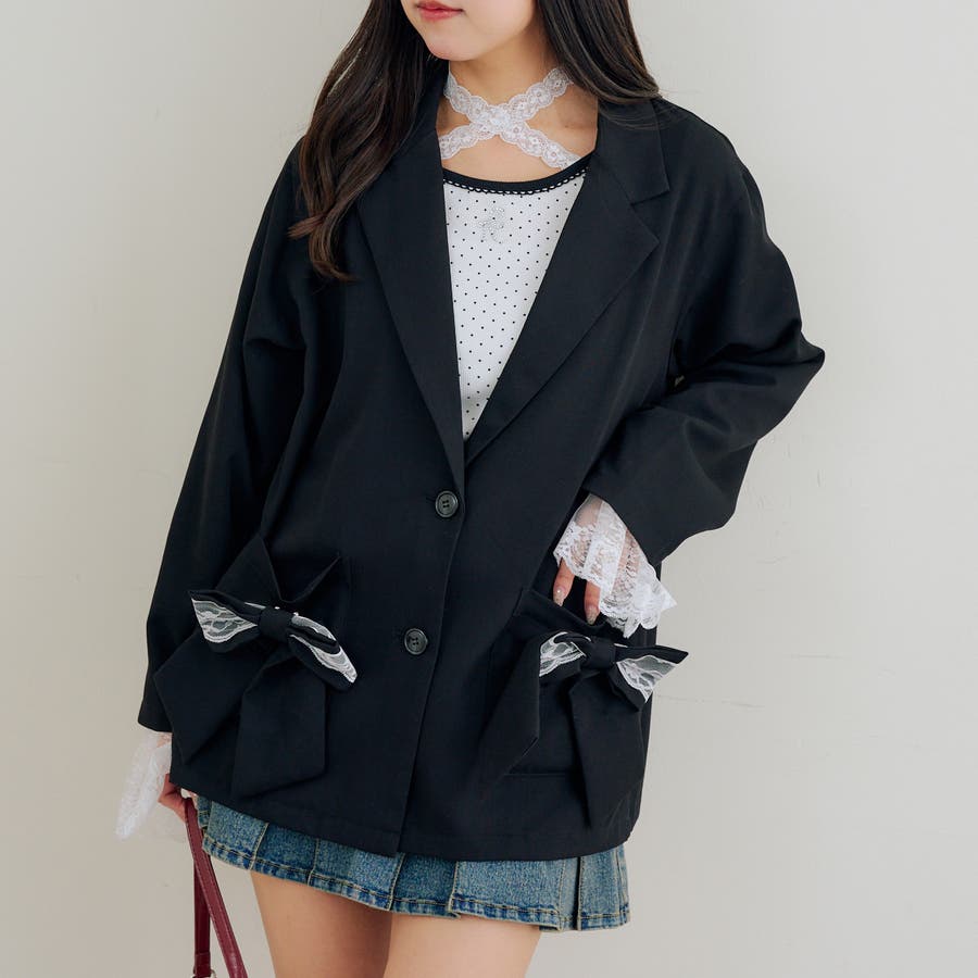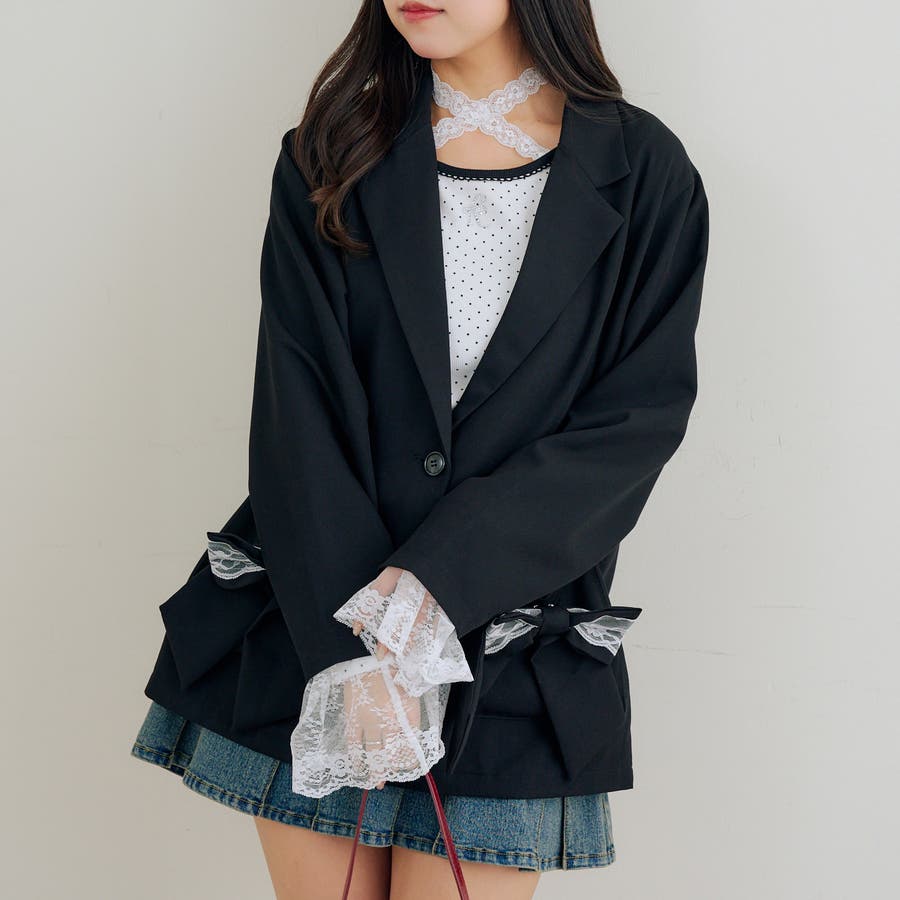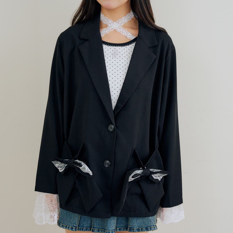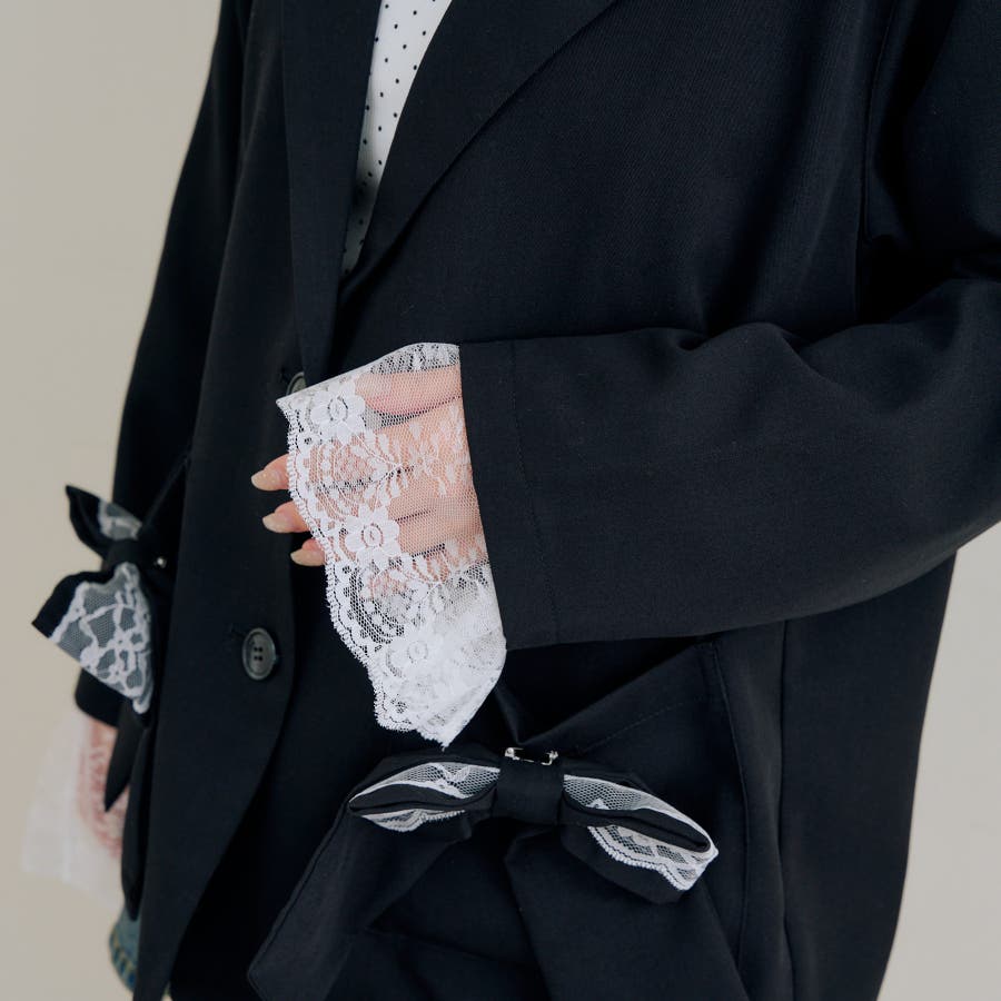 ・取り外し可能なレースとリボンで着こなしの幅広がる!テーラードジャケット