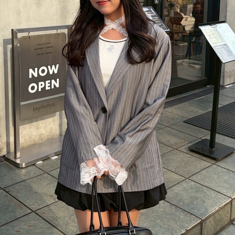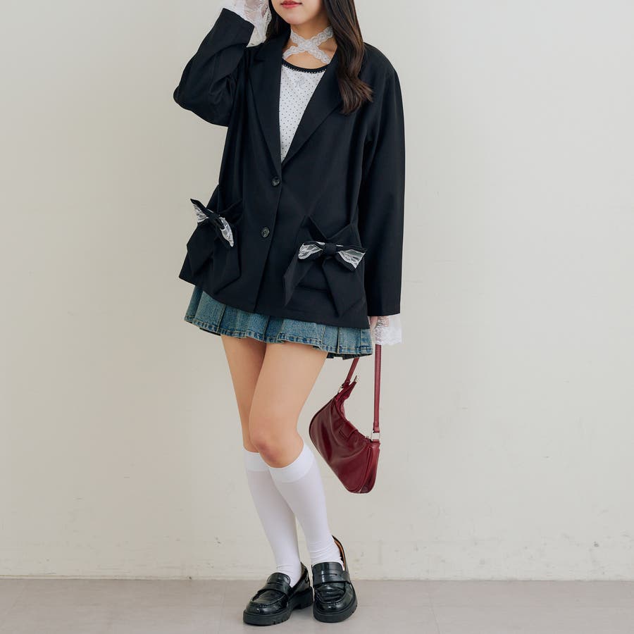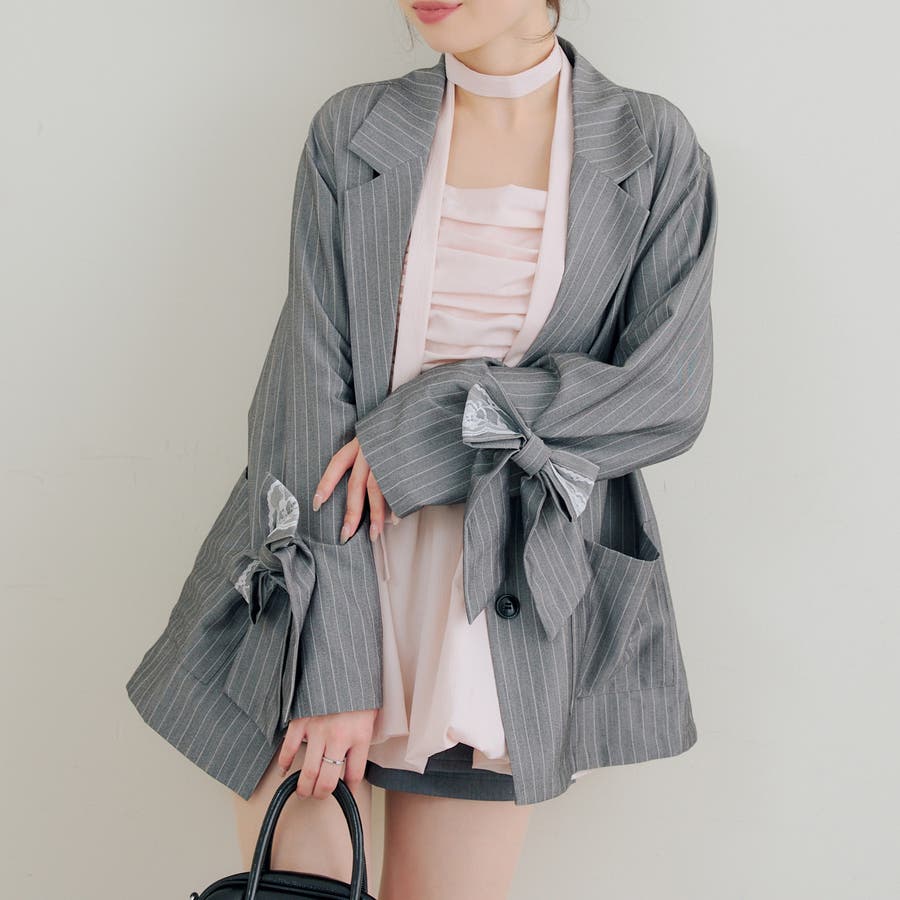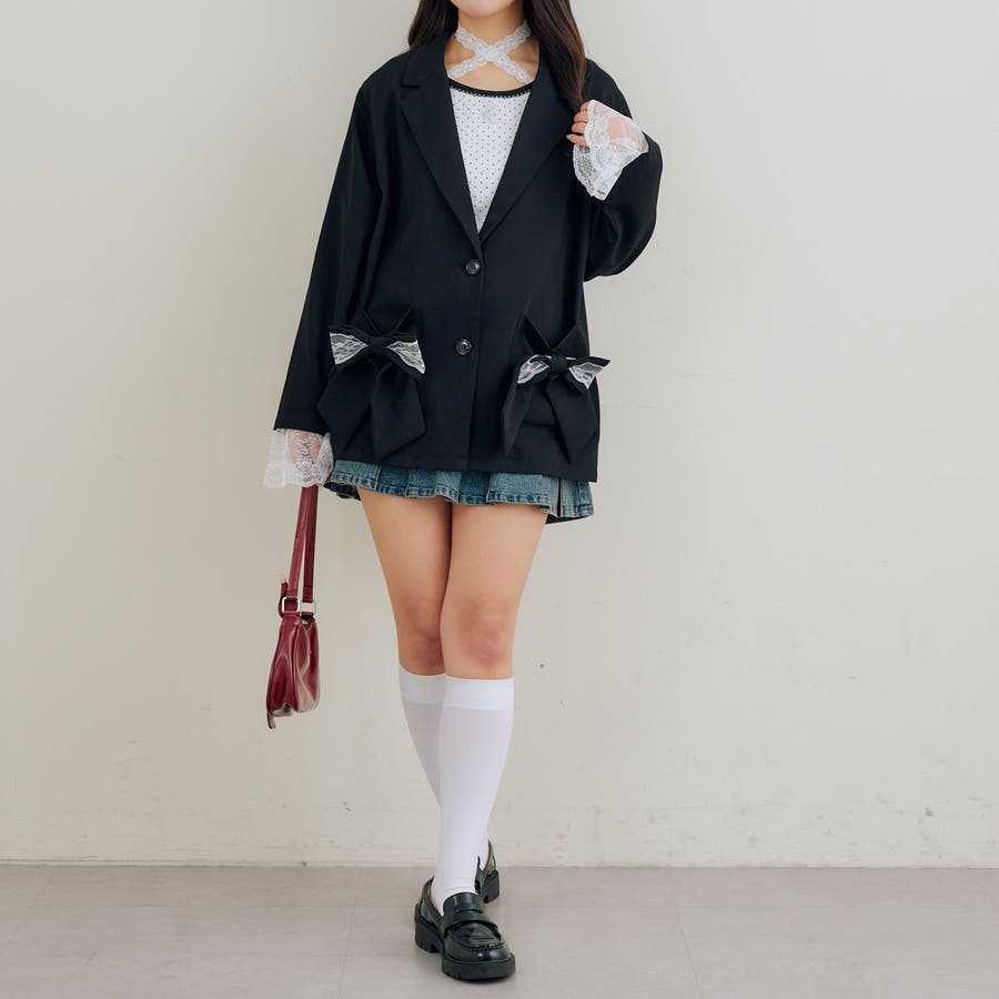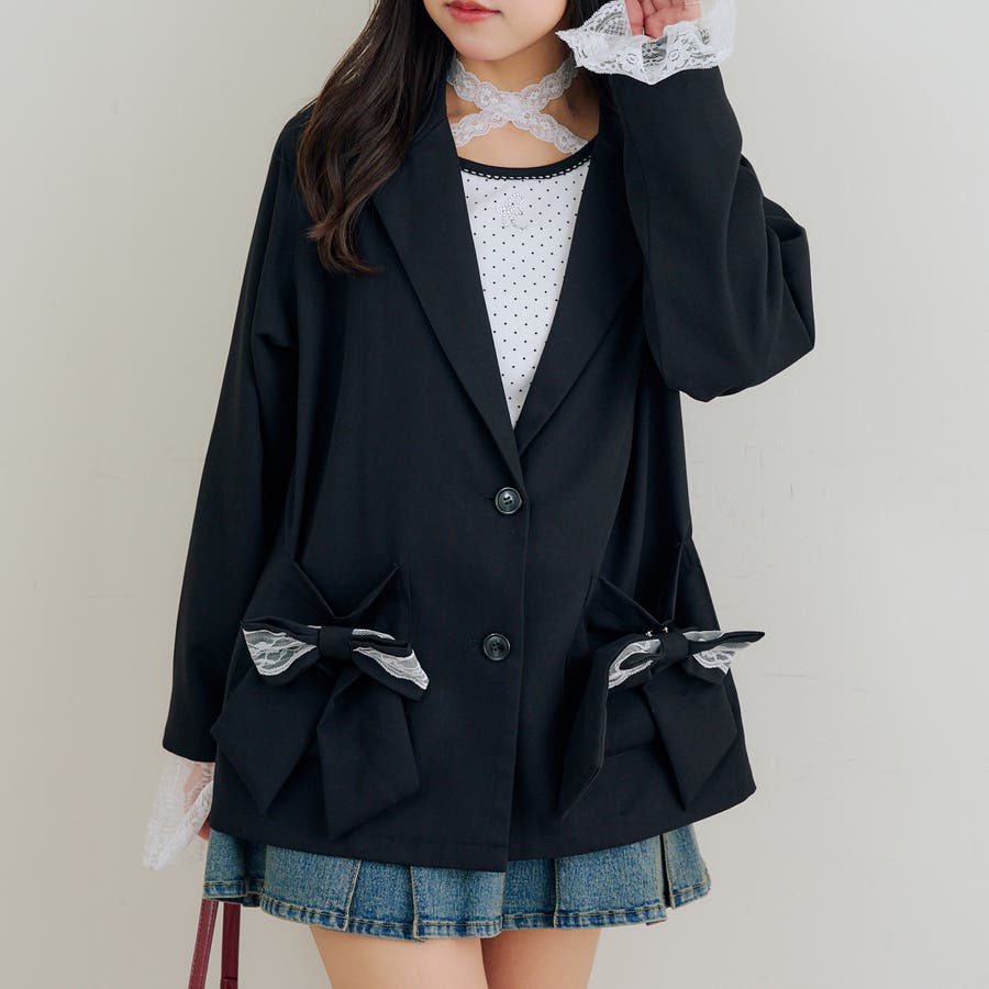 ・取り外し可能なレースとリボンで着こなしの幅広がる!テーラードジャケット