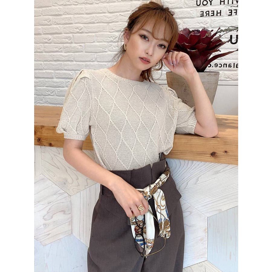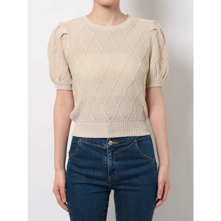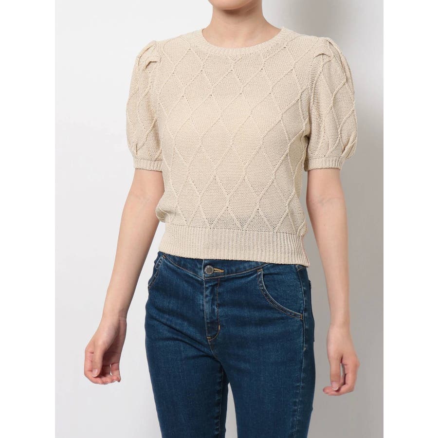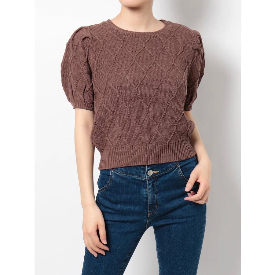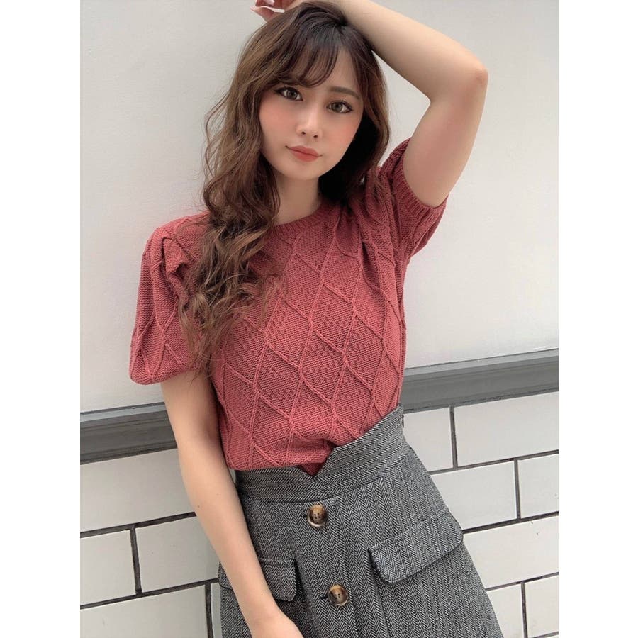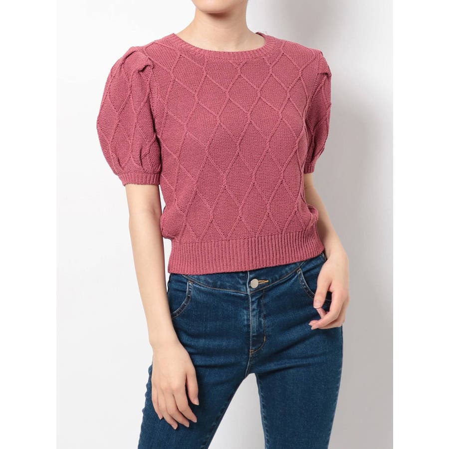 \編み方に拘りダイヤ型に見えるデザインのトップス/ブークレ糸を使用したニット。袖はパフスリーブにし全体のシルエットがコンパクトに見えるようにしました。合わせやすいベーシックカラー3色とキーカラーのピンクを1色差しカラーに◎幅広いボトムスと合わせられます◎【商品特徴】透け感:なし伸縮性:あり生地の厚さ:普通サイズ感:普通裏地:なし