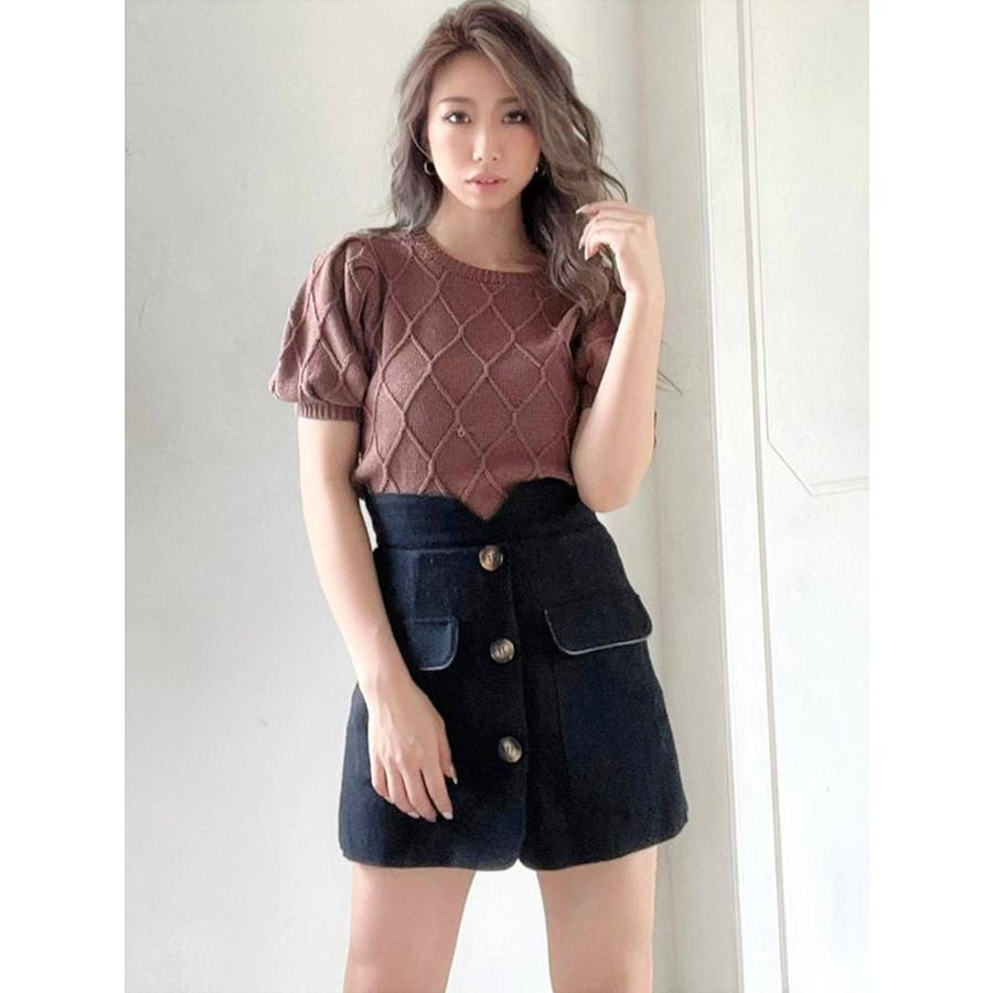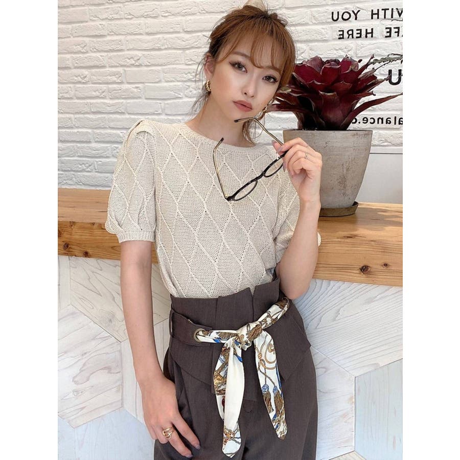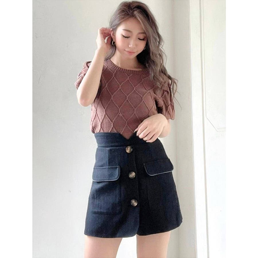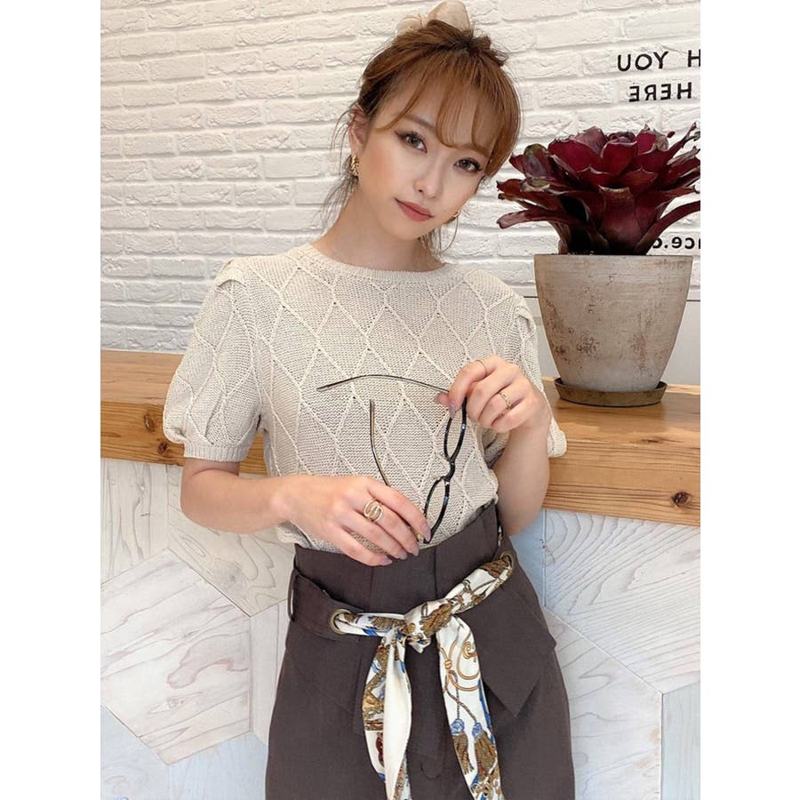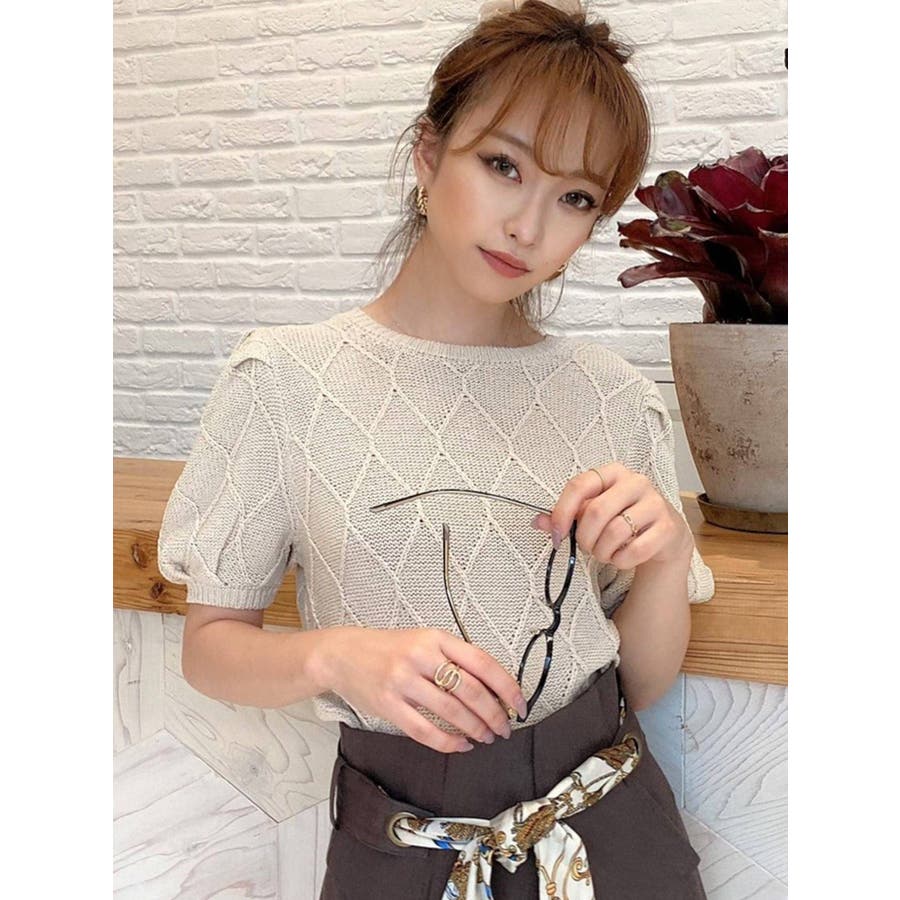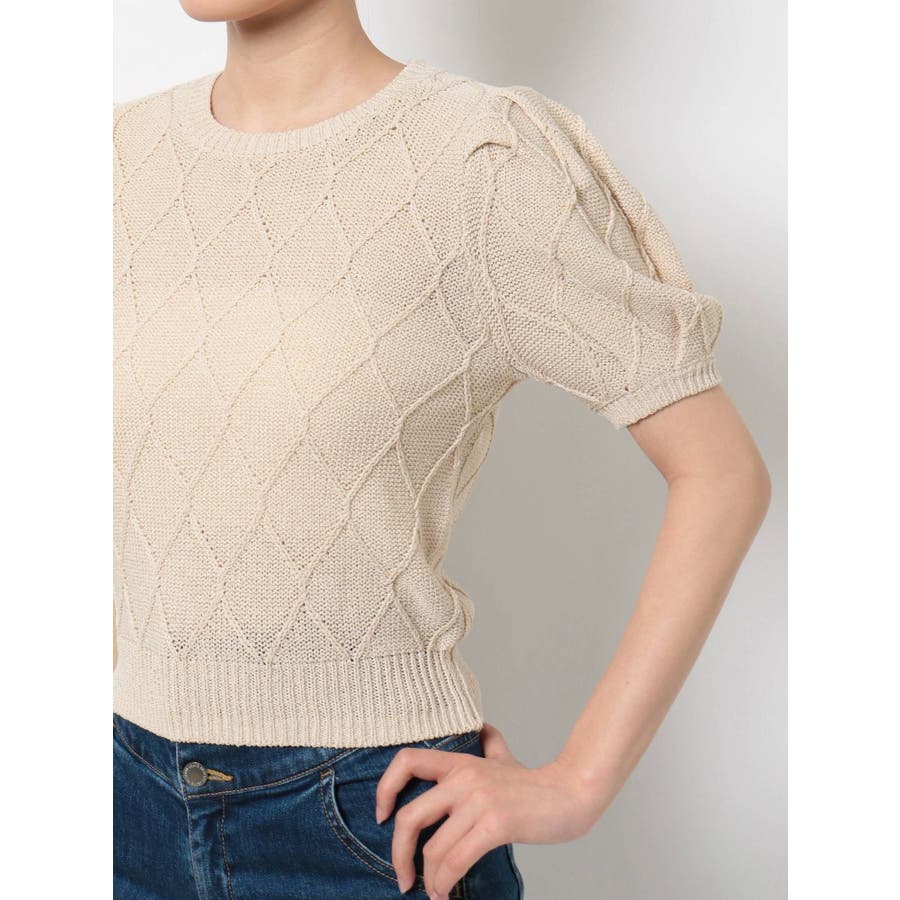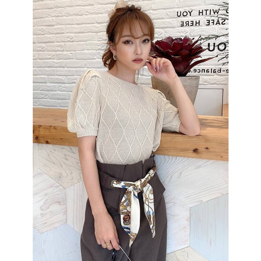 \編み方に拘りダイヤ型に見えるデザインのトップス/ブークレ糸を使用したニット。袖はパフスリーブにし全体のシルエットがコンパクトに見えるようにしました。合わせやすいベーシックカラー3色とキーカラーのピンクを1色差しカラーに◎幅広いボトムスと合わせられます◎【商品特徴】透け感:なし伸縮性:あり生地の厚さ:普通サイズ感:普通裏地:なし