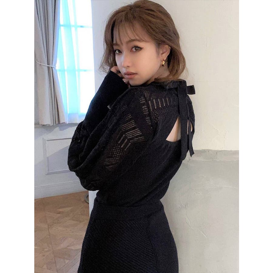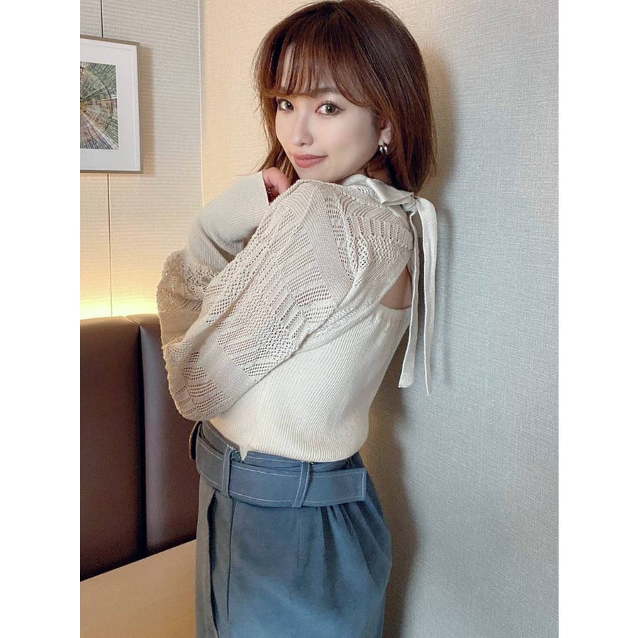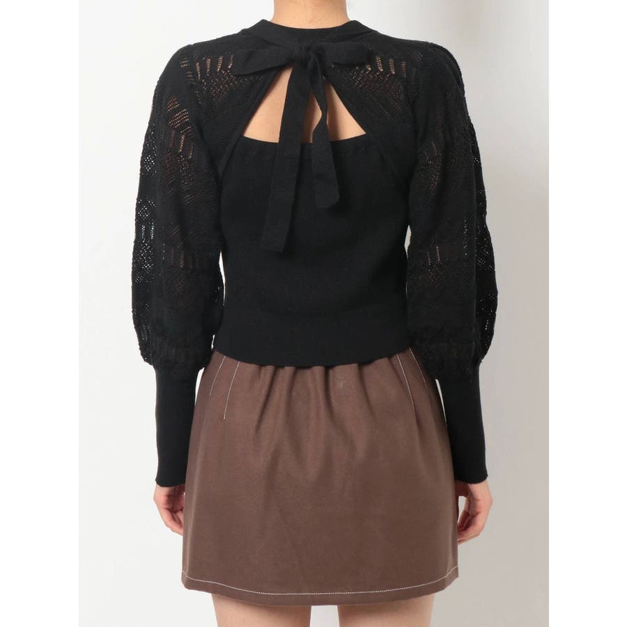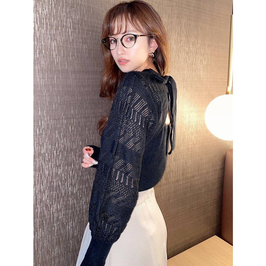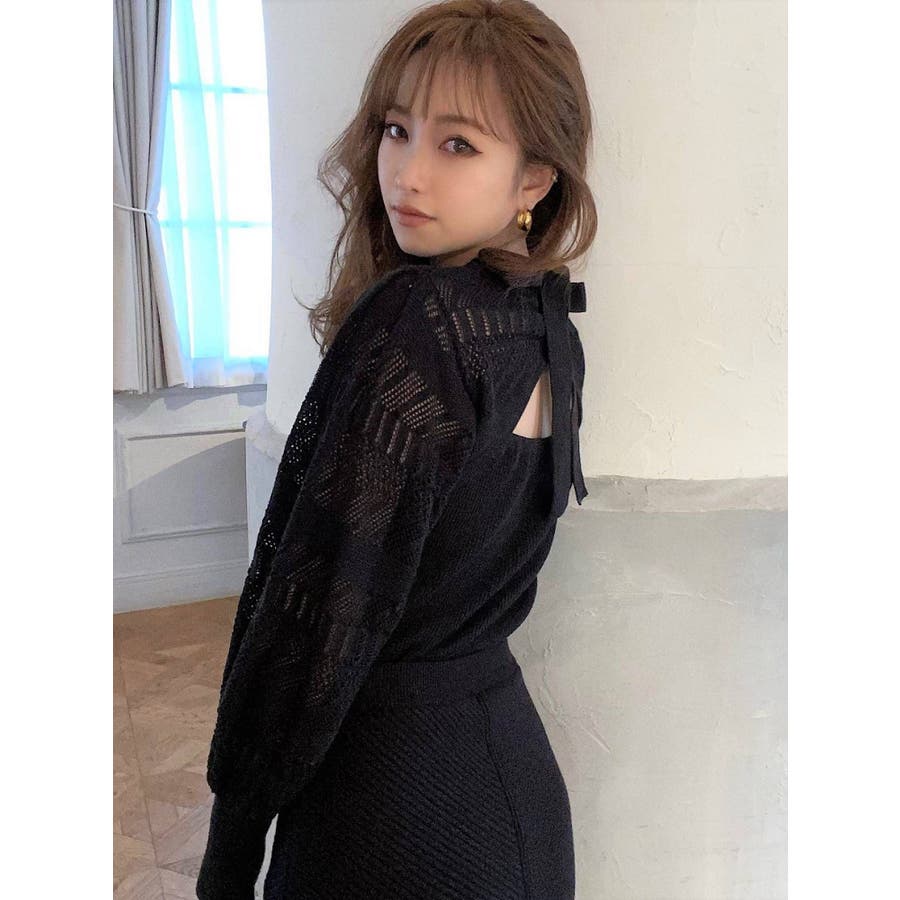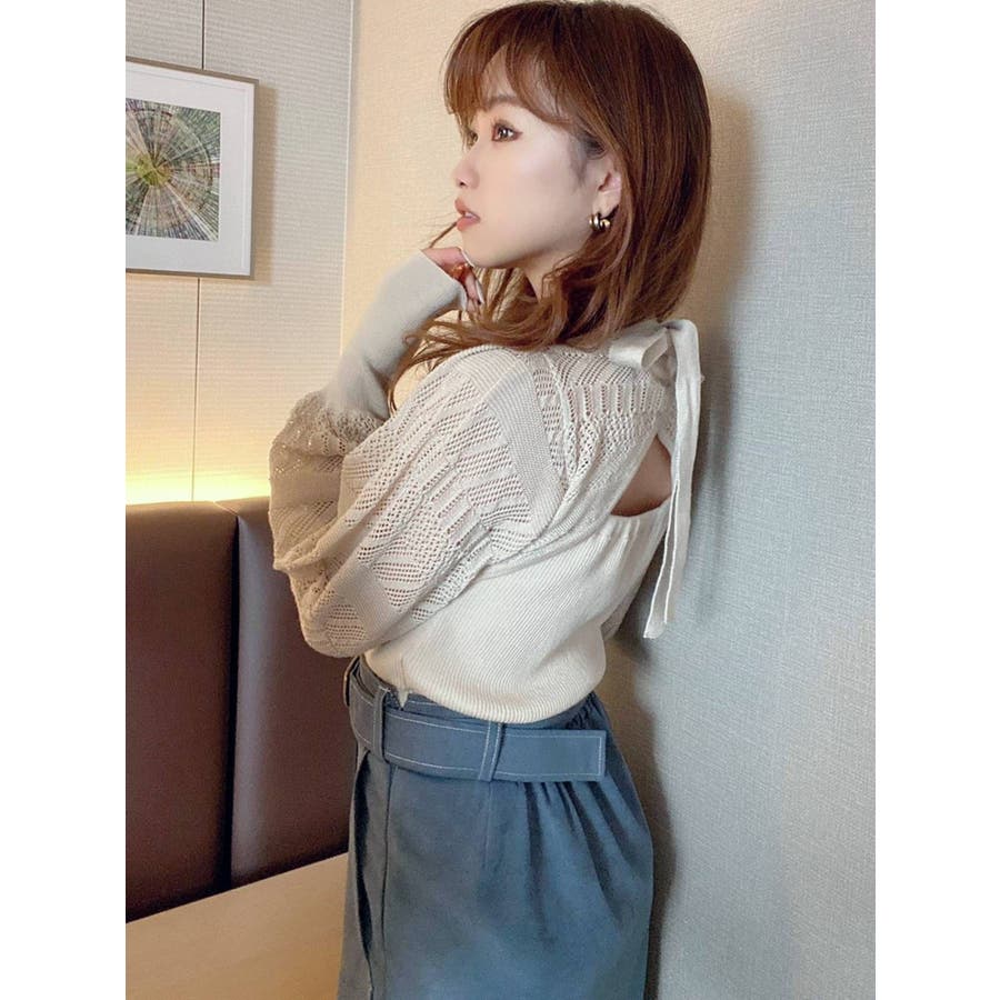 バックリボンクロシェ調ニットトップス