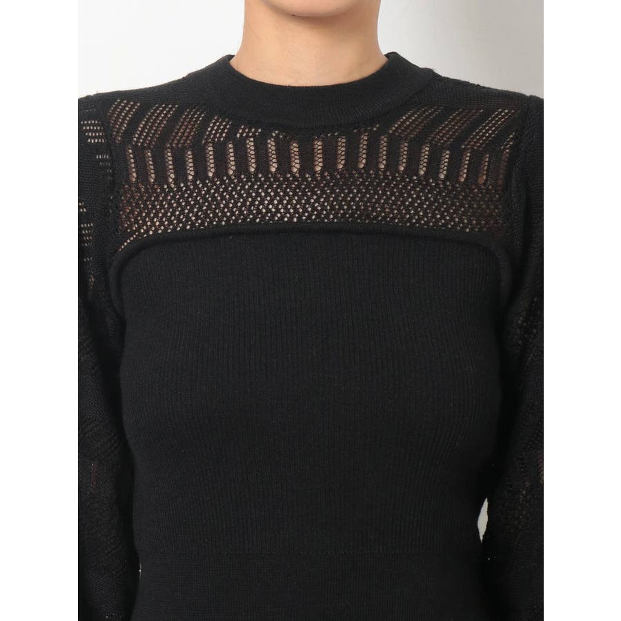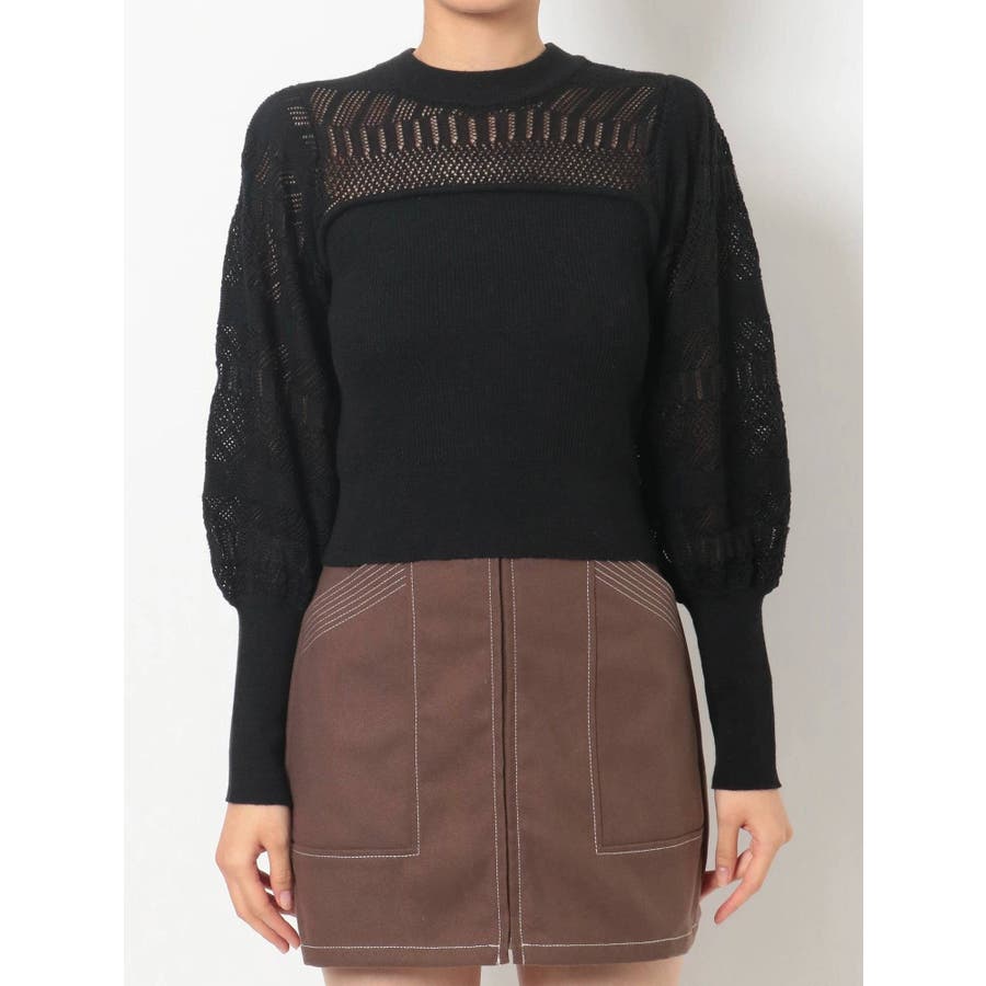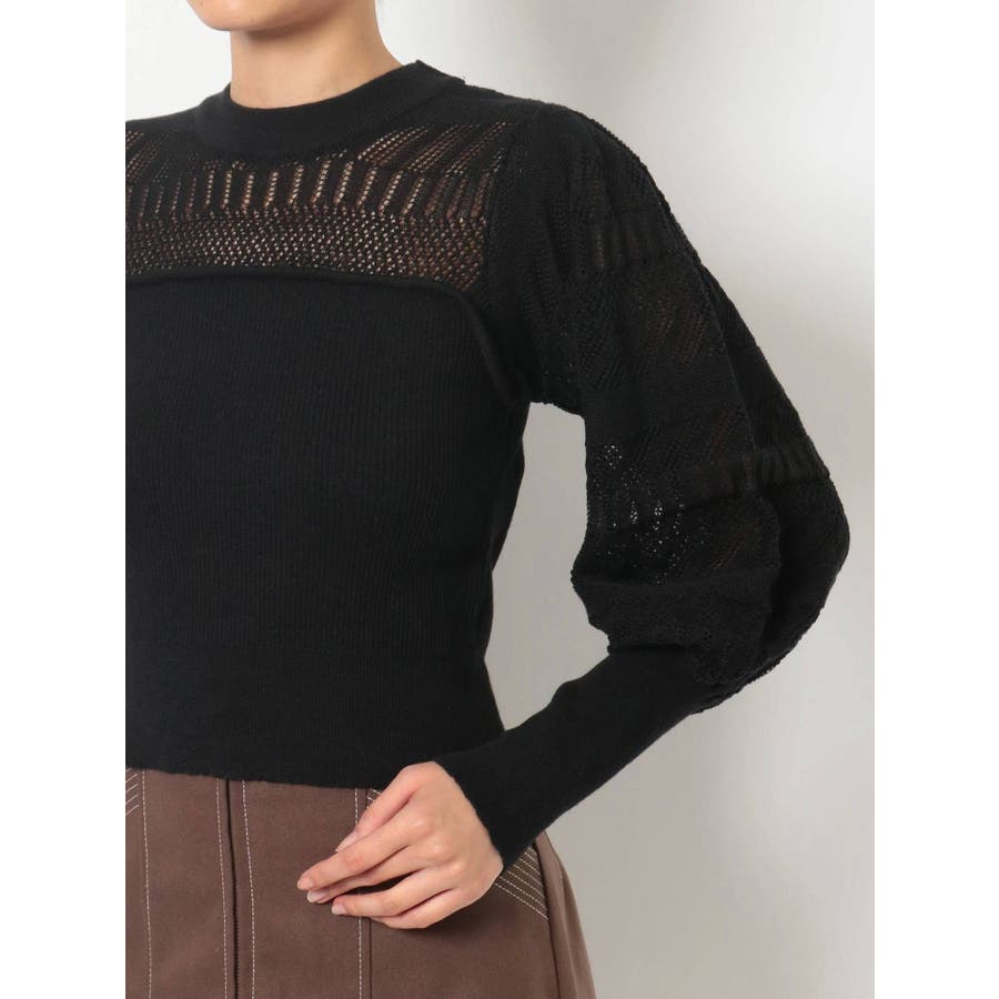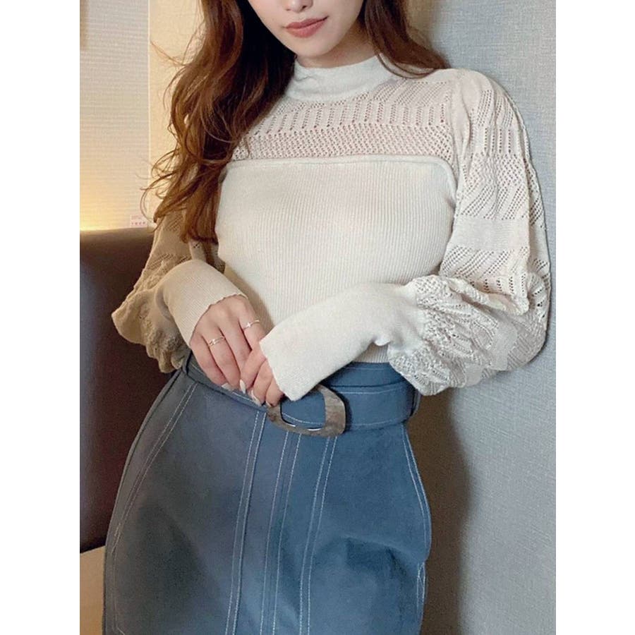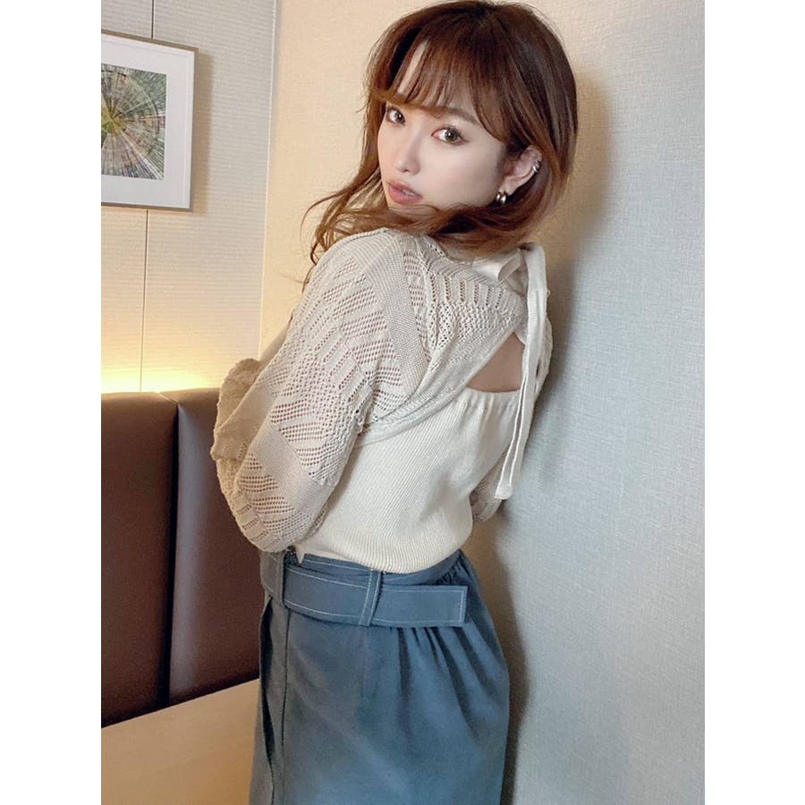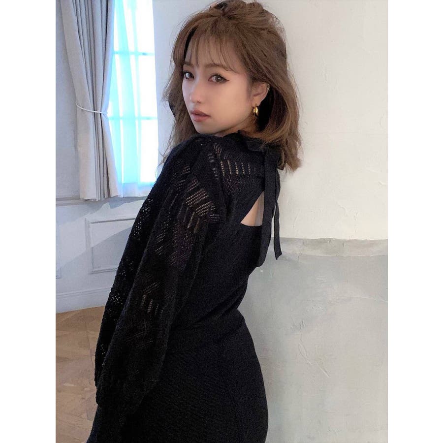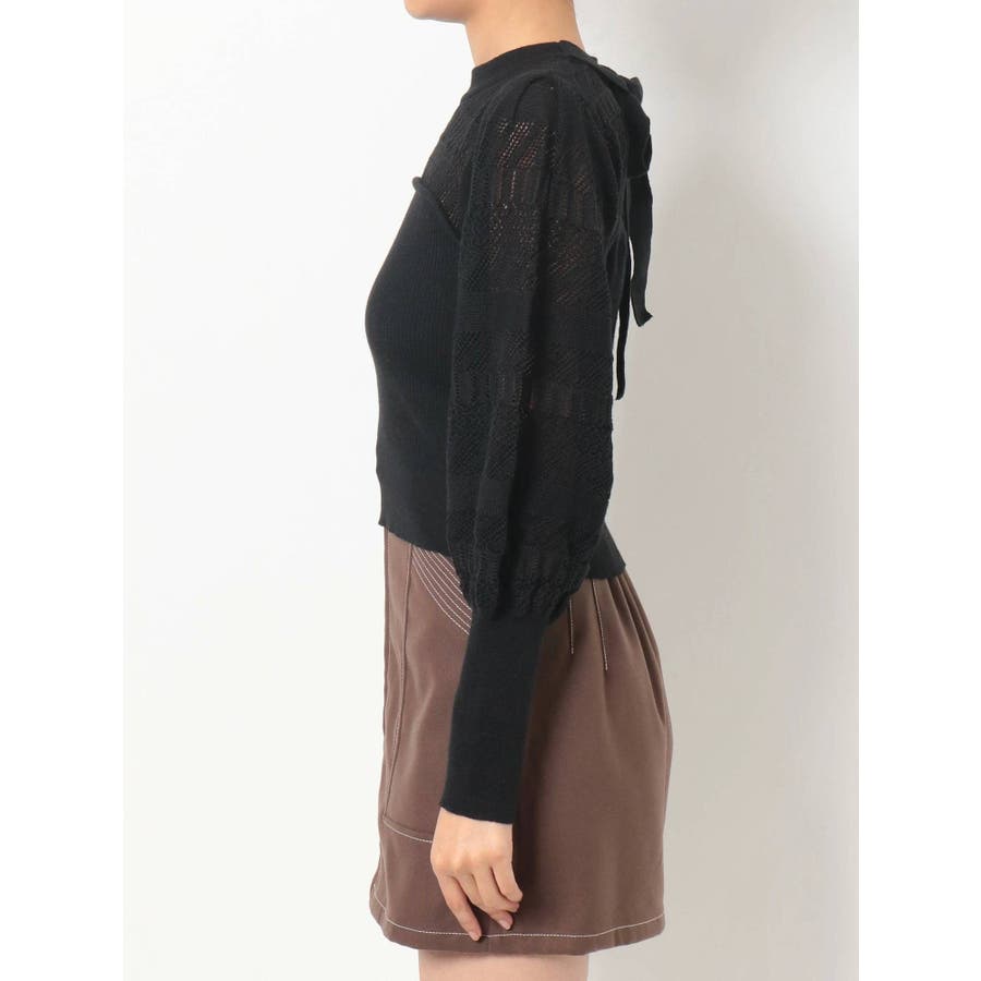 バックリボンクロシェ調ニットトップス