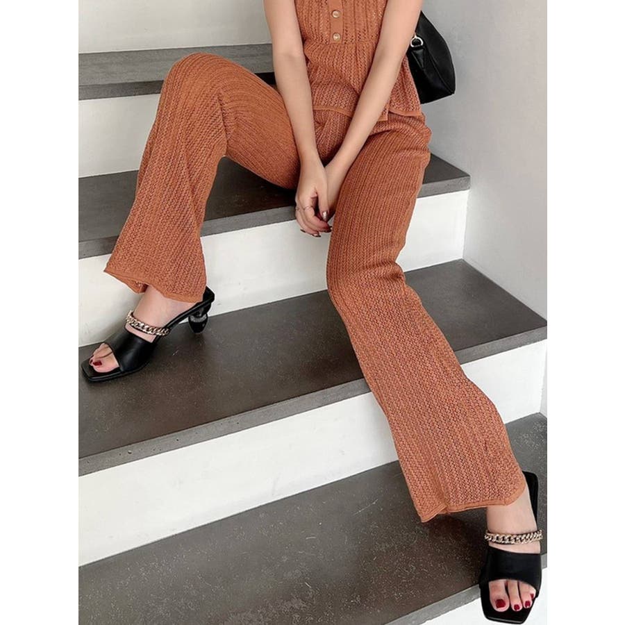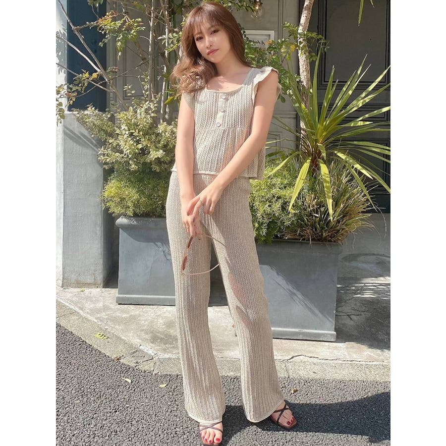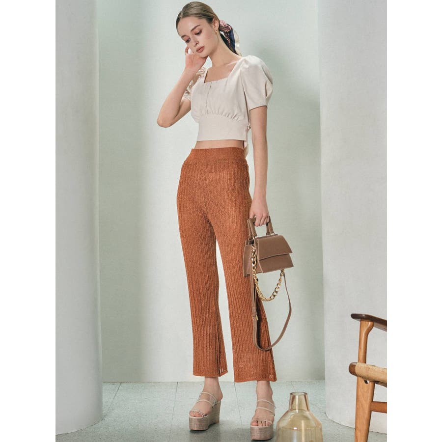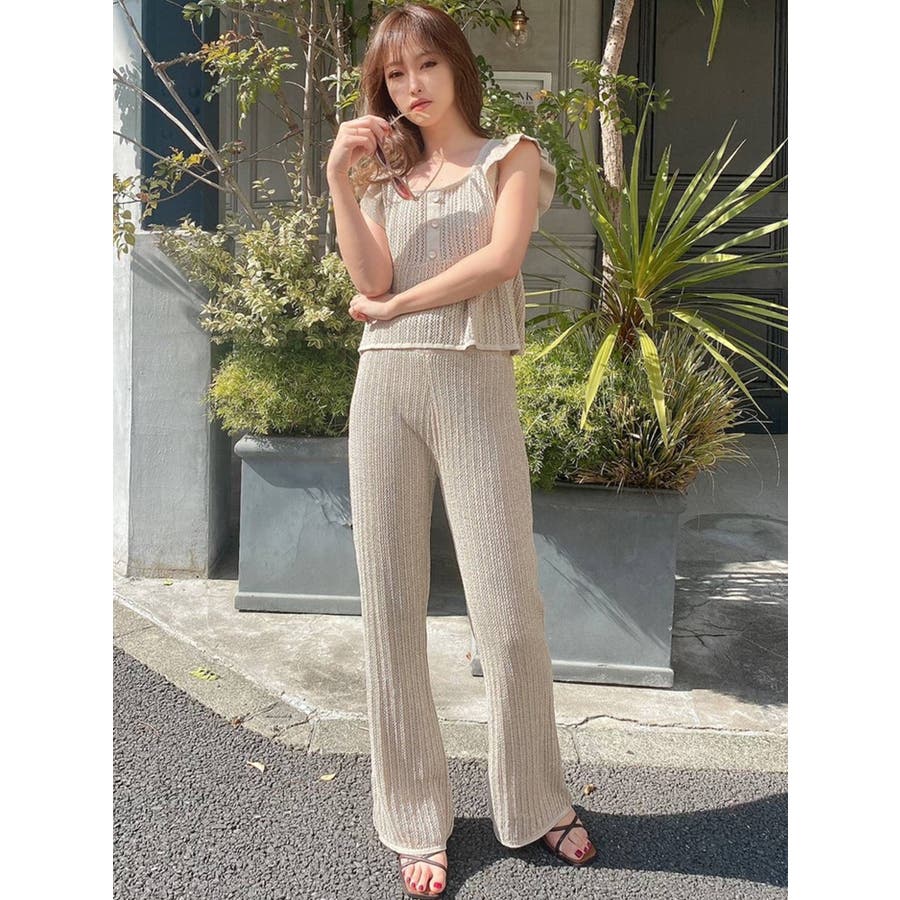 透かし編みラメニットパンツ【セットアップ着用可能】