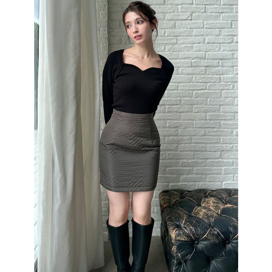WEB限定!トレンドムード溢れる薄中綿のミニスカート▽Point▽中綿を薄くすることで軽やかさをプラスでき、ニットトップスとの相性も抜群です。ハイウエストなので着ぶくれせずにトップスインも可能に◎美脚効果抜群のミニスカートです♪▽Styling▽同素材で作ったジャケットとのセットアップ着用がオススメ◎一枚でシーズンムードが高まるアイテムです。※着用画像はフラッシュの加減で実際の製品と色味等が異なる場合がございますので、生地のズームアップ画像をご確認ください。※ご利用の端末画面の設定により実際の商品と色味が異なる場合がございます。【商品特徴】透け感:なし伸縮性:なし生地の厚さ:普通サイズ感:細身裏地:ありポケット:なし