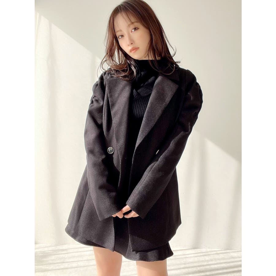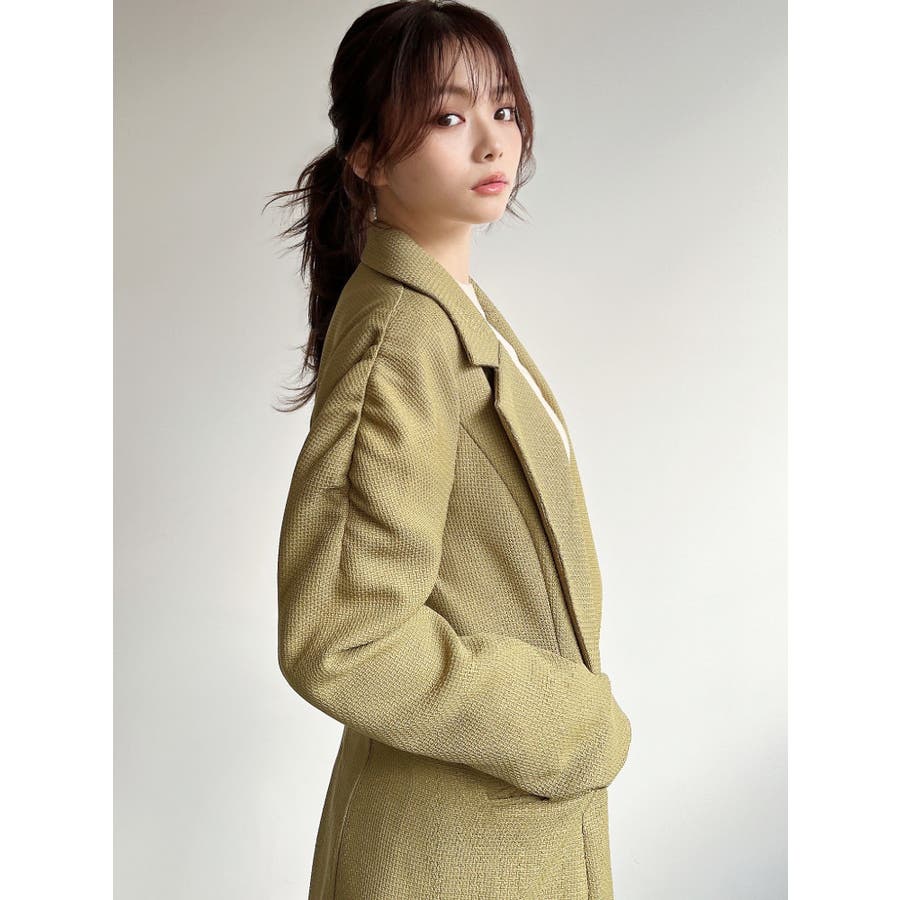ショルダーギャザーツイードミディジャケット【セットアップ着用可能】