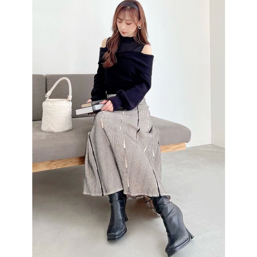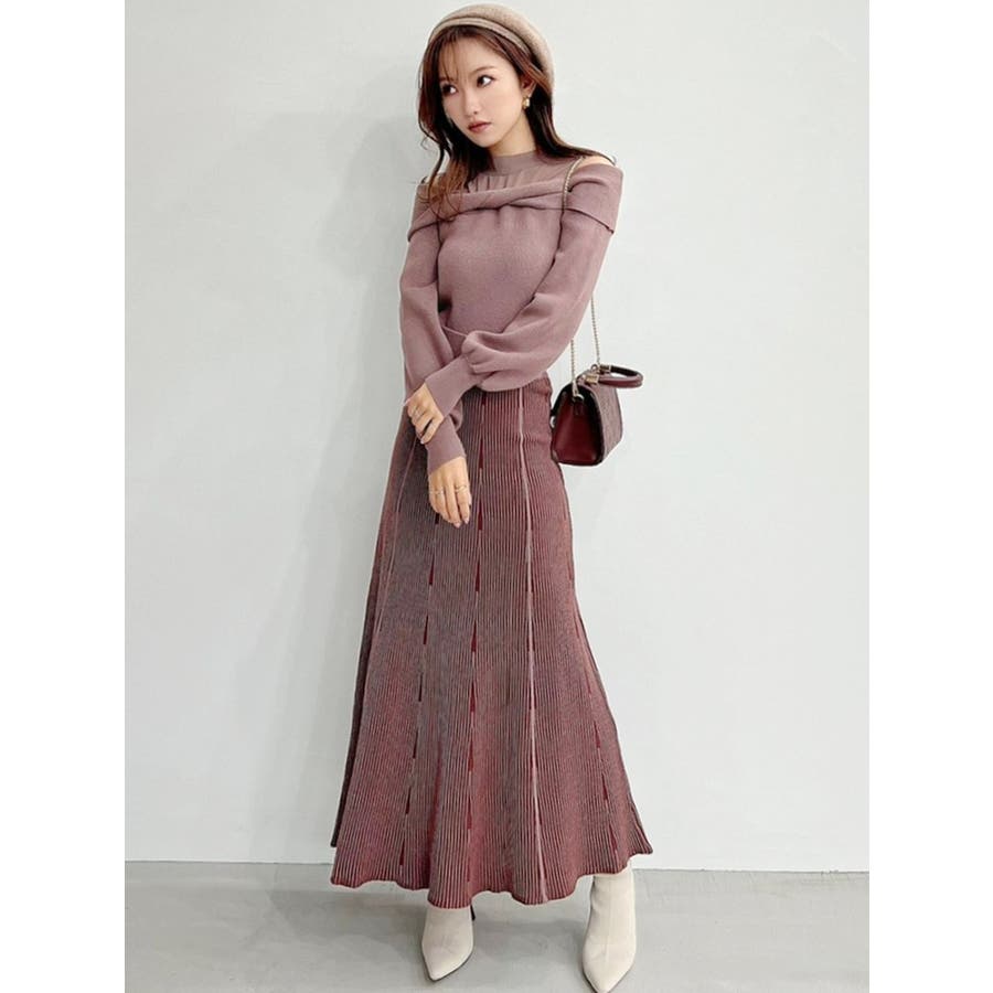 ニットファブリックフレアスカート【セットアップ着用可能】