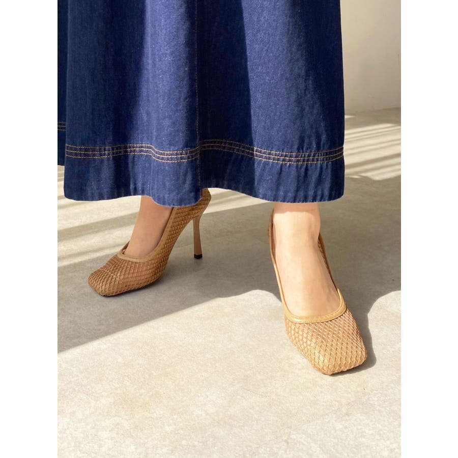 メッシュ素材を使ったピンヒールパンプス。