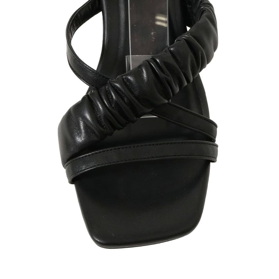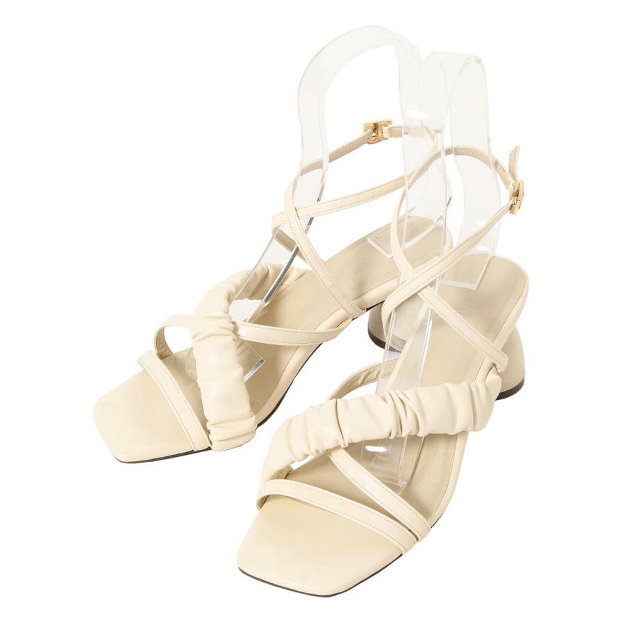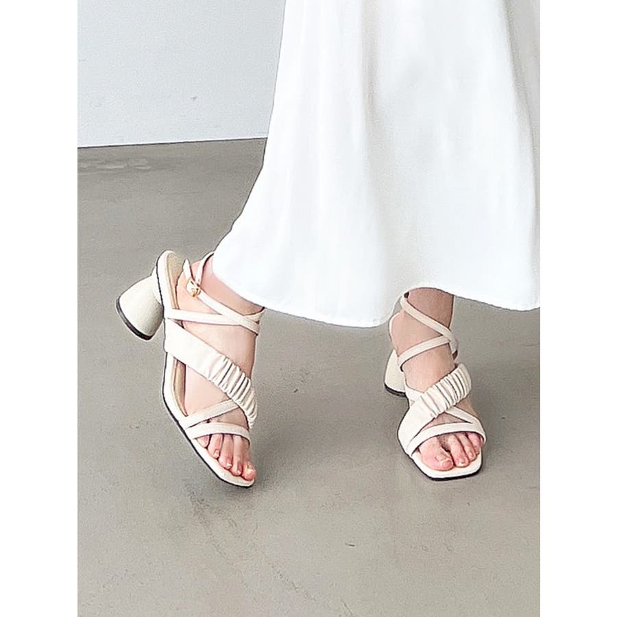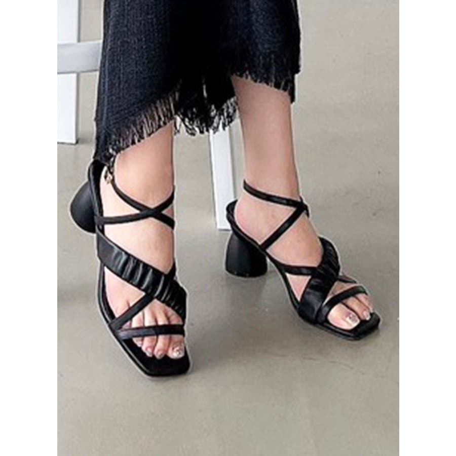 細部にこだわったサンダルが登場▽Point▽柔らかいPUを使用し、部分的にギャザーを寄せ存在感あるサンダルに仕上げました♪ランダムなライン使いがコーデのアクセントになります。コロンとしたフォルムのヒールを使用したことで後ろ姿まで可愛く、太めのヒールと足首までストラップがあることで安定感があり履きやすい1足。カラー展開はベーシックな2色とコーデのポイントになるグリーンを差し色で導入しました。足首までストラップがあることによってミニ丈のボトムスやワンピースとも相性が良くなり、万能に使える1足です◎【スタッフ着用レビュー】 スタッフA(普段のサイズ: 24.5cm/足の幅: 9.8cm/甲の高さ: 5.6cm/ふくらはぎ周り:34cm)Lサイズ着用でぴったりでした。足幅も丁度良く、ストラップがあることでホールド感があり歩きやすいです。