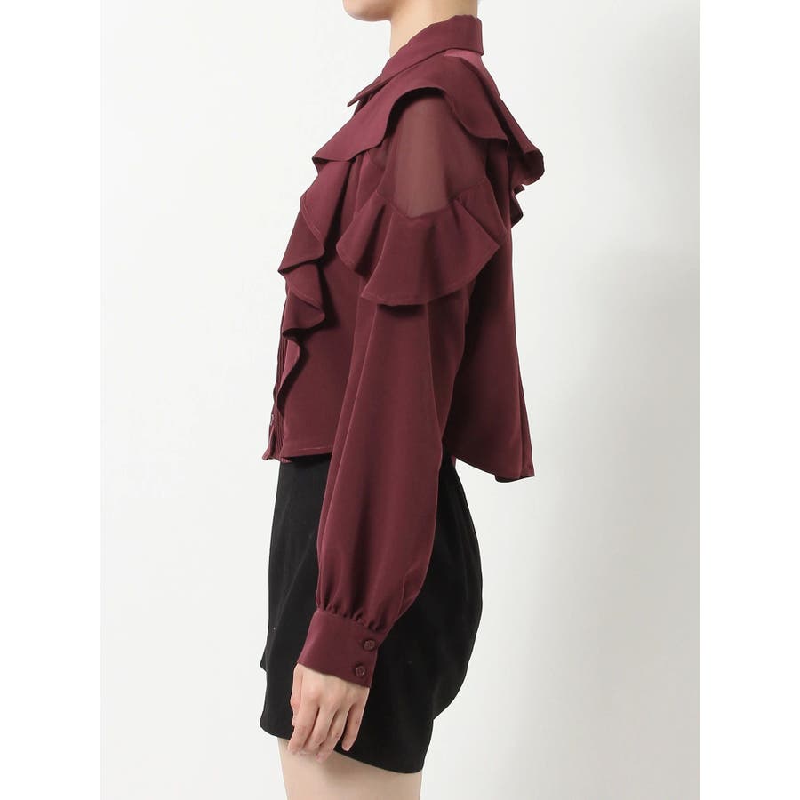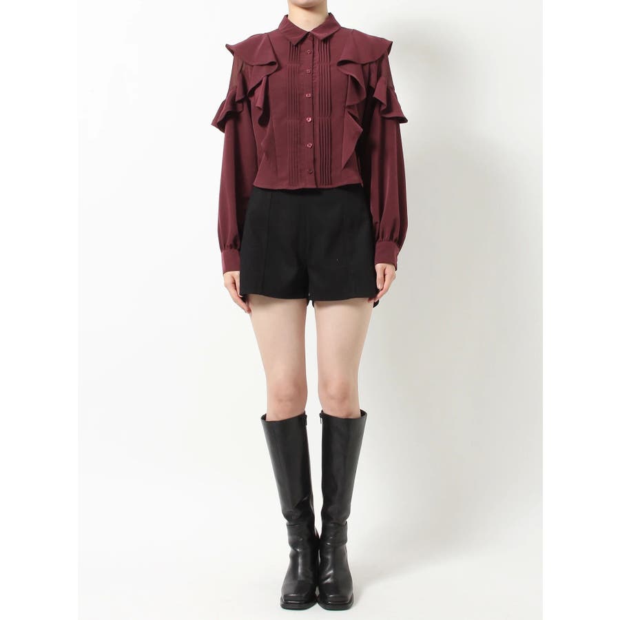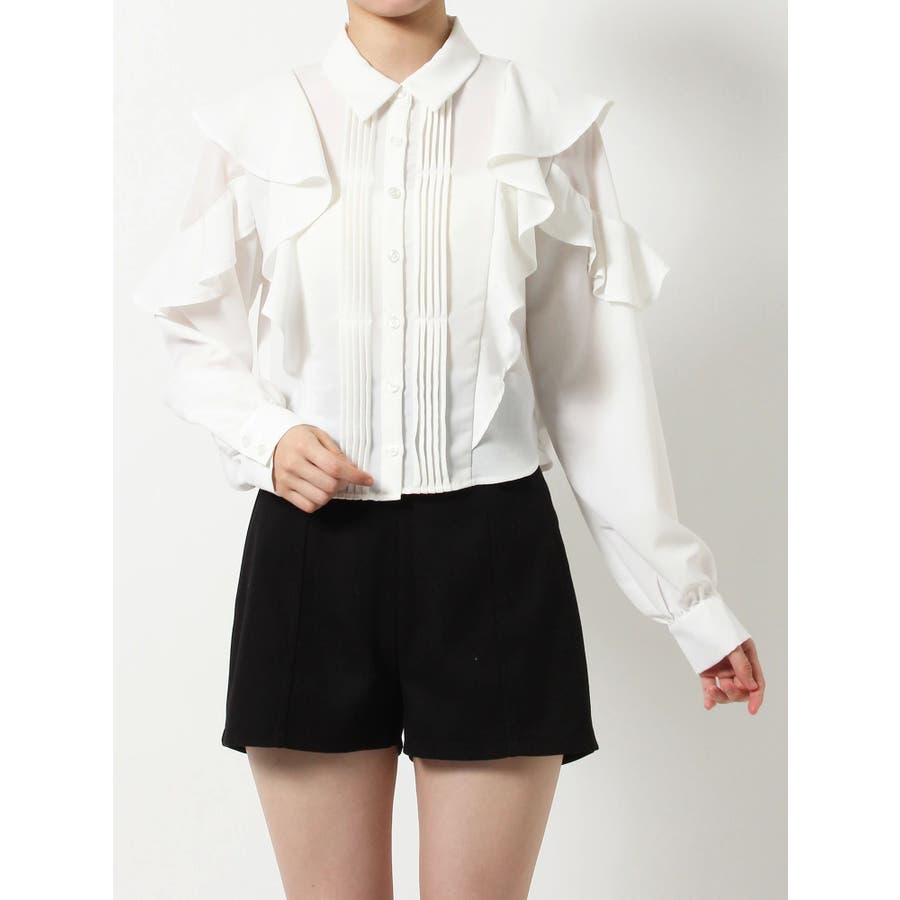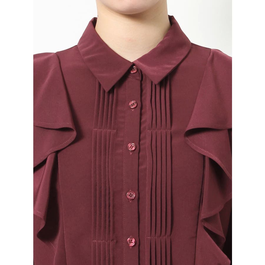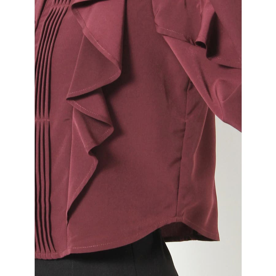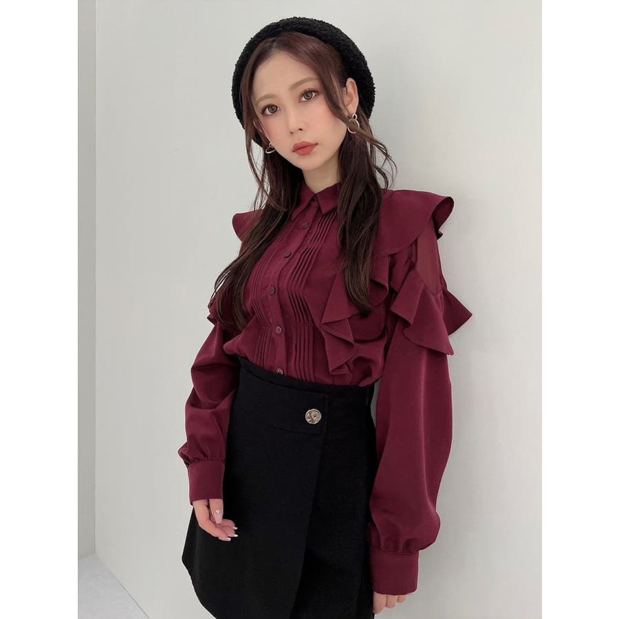 デザイン性があり華やかな印象のブラウス▽デザイン▽衿元をエレガントに彩るモードなラッフルカラーが印象的なブラウス。構築的なラッフルにきちんと感があるシャツカラーを合わせ、絶妙なバランスに仕上げました。肩部分をシアーな素材で切り替えることで抜け感をプラスした遊び心のあるアイテムです。顔周りを華やかに見せてくれる上品な1枚。▽カラー▽白・黒・ワインの3色展開。▽スタイリング▽全体をワントーンで品良くまとめているのでボトムを選ばず合わせやすいのも嬉しいポイント。※着用画像はフラッシュの加減で実際の製品と色味等が異なる場合がございますので、生地のズームアップ画像をご確認ください。※ご利用の端末画面の設定により実際の商品と色味が異なる場合がございます。【商品特徴】透け感:なし伸縮性:なし生地の厚さ:薄手サイズ感:普通裏地:なしポケット:なし