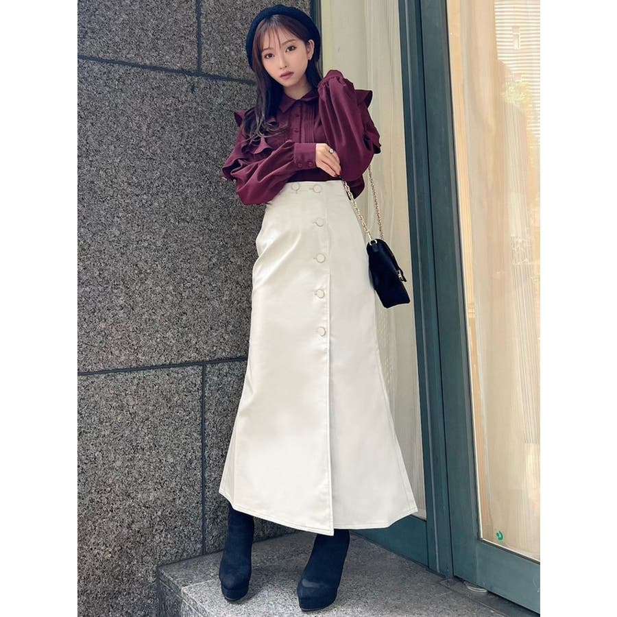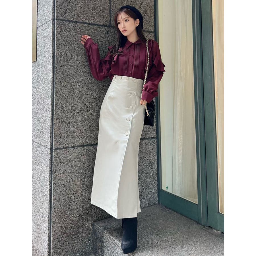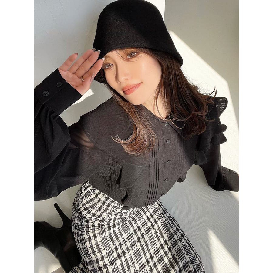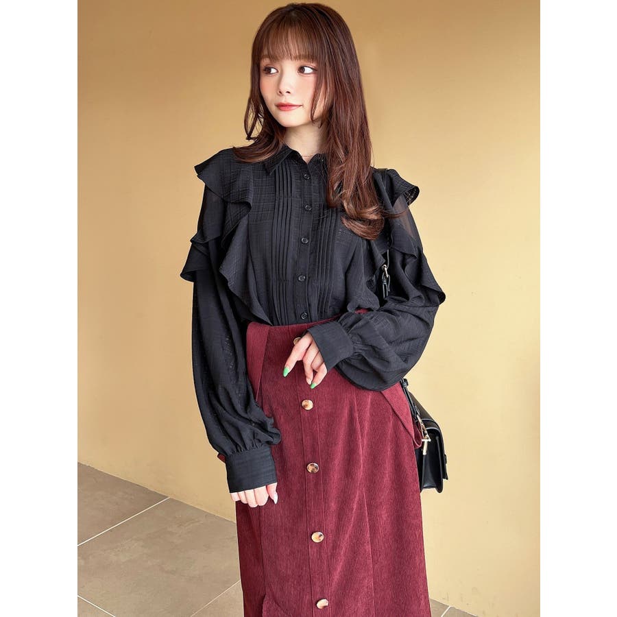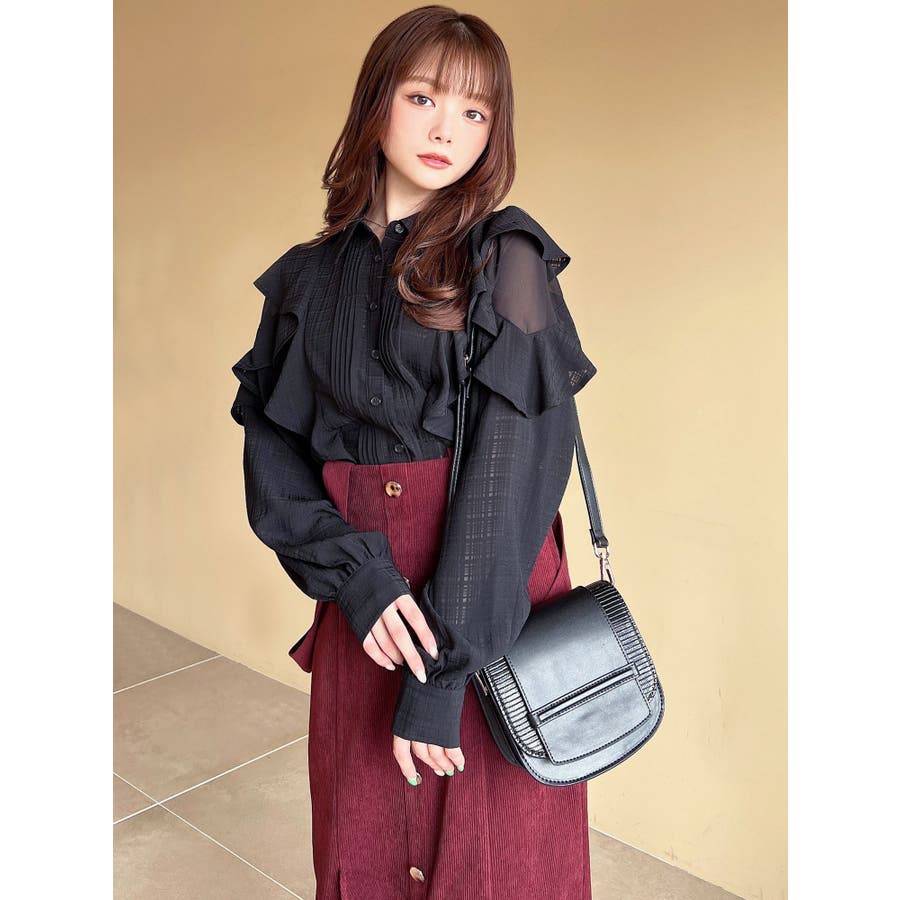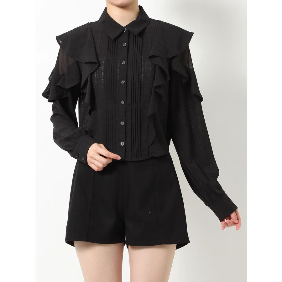 デザイン性があり華やかな印象のブラウス▽デザイン▽衿元をエレガントに彩るモードなラッフルカラーが印象的なブラウス。構築的なラッフルにきちんと感があるシャツカラーを合わせ、絶妙なバランスに仕上げました。肩部分をシアーな素材で切り替えることで抜け感をプラスした遊び心のあるアイテムです。顔周りを華やかに見せてくれる上品な1枚。▽カラー▽白・黒・ワインの3色展開。▽スタイリング▽全体をワントーンで品良くまとめているのでボトムを選ばず合わせやすいのも嬉しいポイント。※着用画像はフラッシュの加減で実際の製品と色味等が異なる場合がございますので、生地のズームアップ画像をご確認ください。※ご利用の端末画面の設定により実際の商品と色味が異なる場合がございます。【商品特徴】透け感:なし伸縮性:なし生地の厚さ:薄手サイズ感:普通裏地:なしポケット:なし