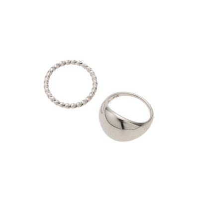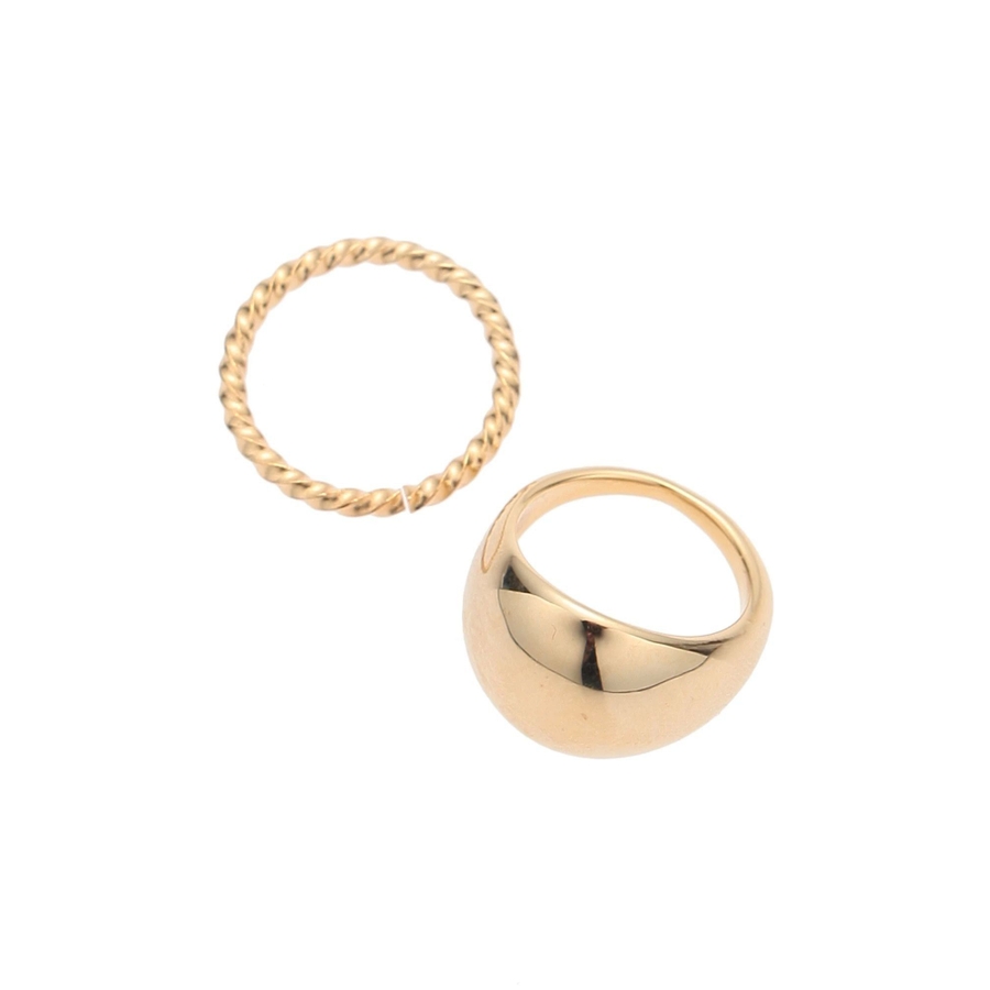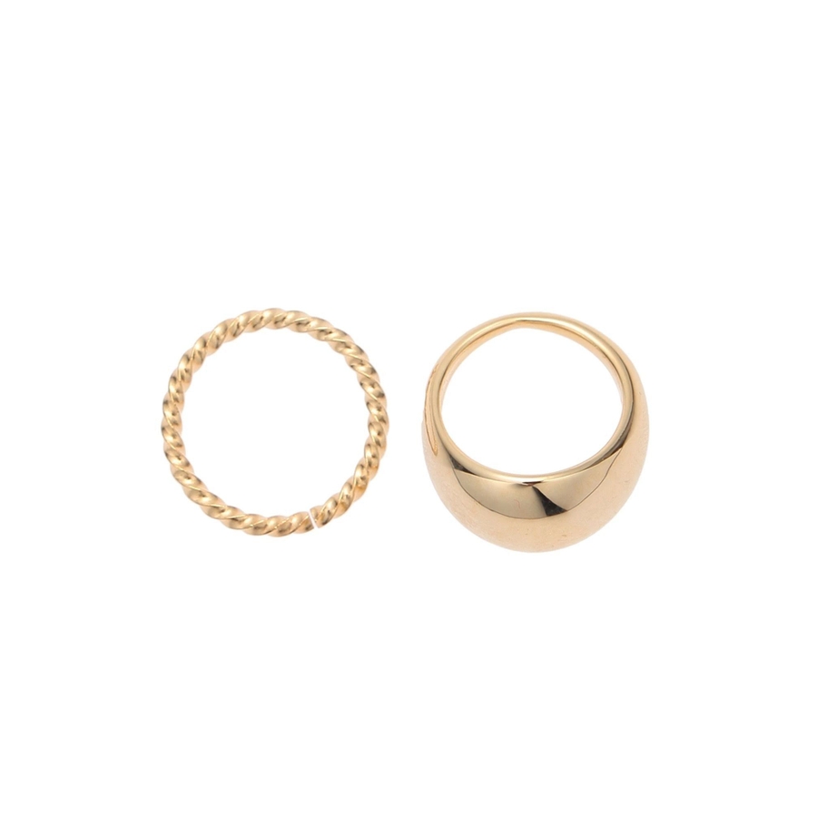 華奢なリングとぽってりしたデザインのリングがセットになったアイテム。どちらも手先を華奢に、女性らしく見せてくれるデザインです。