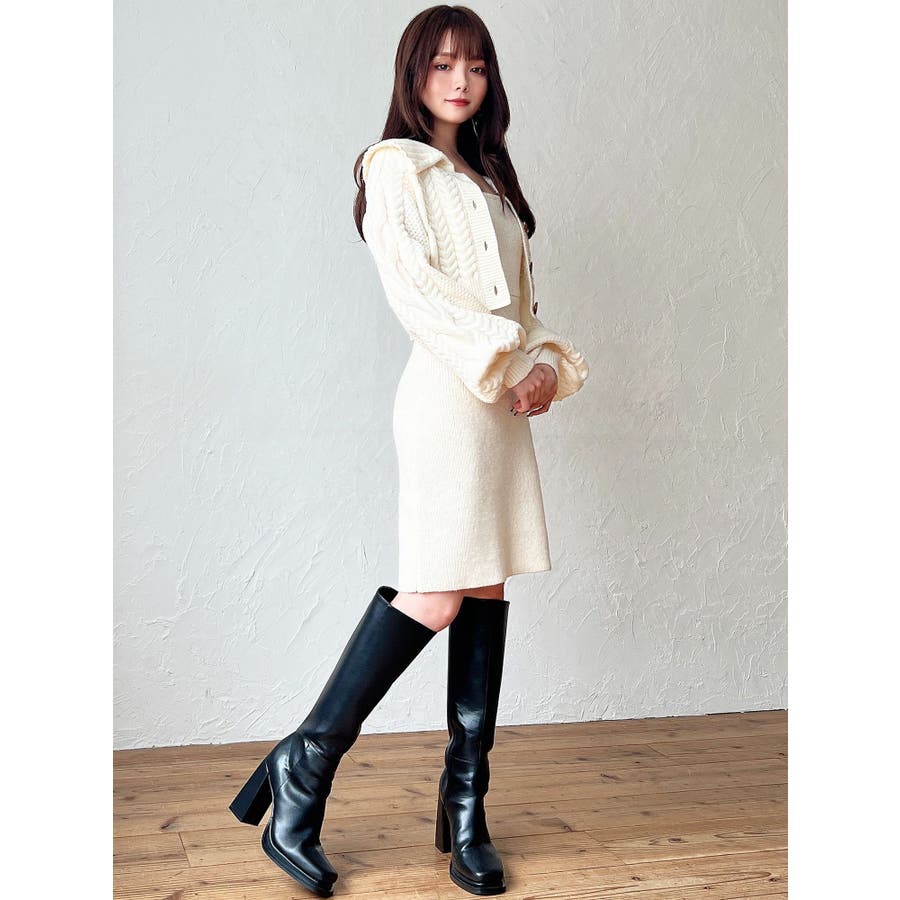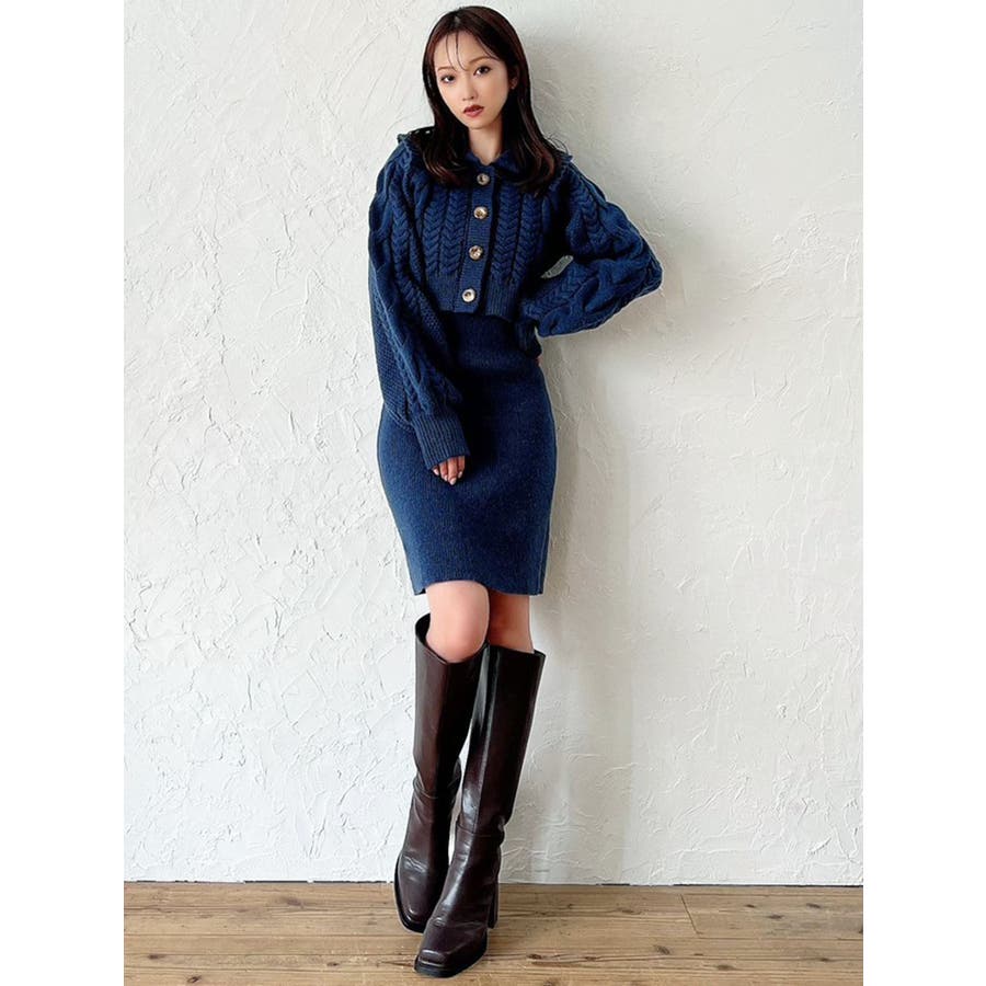 カーディガンはボタンを開けても閉めても可愛いのでお好みで!ショートブーツと合わせました!