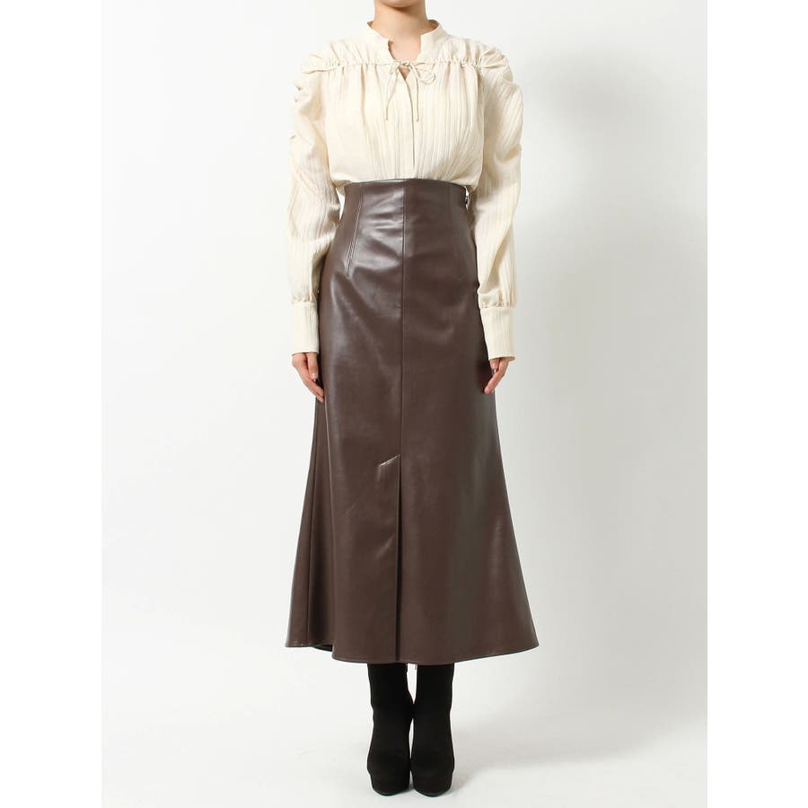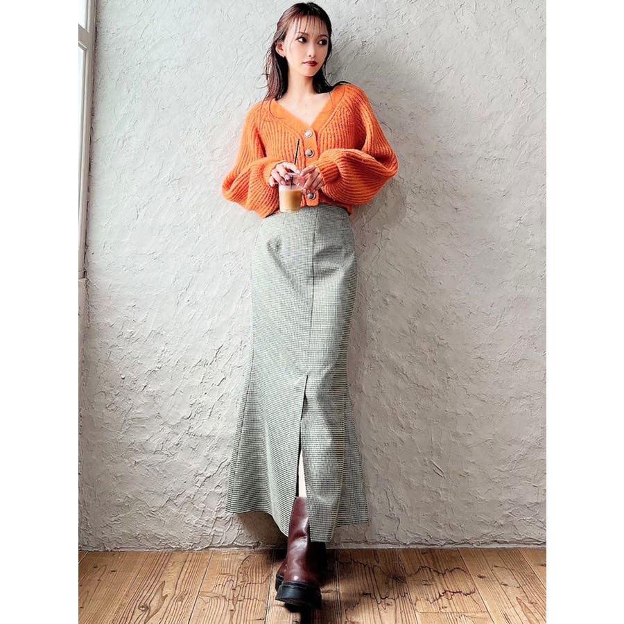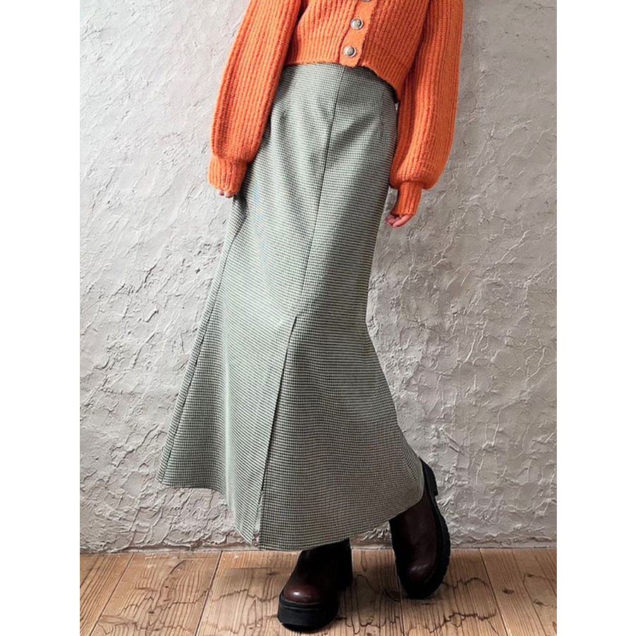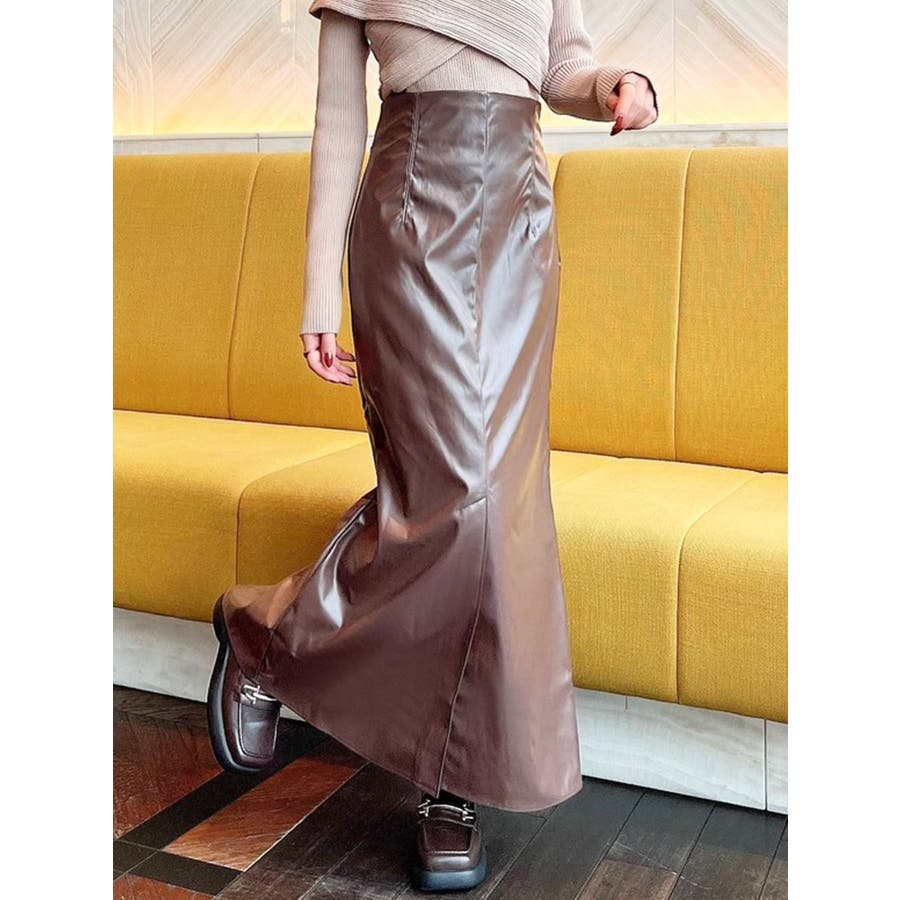 シーズンムード高まるマーメイドスカート▽デザイン▽マーメイドスカートですがナチュラルなマーメイドシルエットにし落ち着いた大人な印象の1枚に仕上げました。ウエストにはステッチをいれコルセットデザインに♪センタースリットを入れ足さばきもよく、縦のラインを強調。フェイクレザーとチェック柄の素地違いでご用意。どちらもコーデにプラスするだけでシーズンムード高まるアイテムです。▽カラー▽フェイクレザーは黒とブラウン、チェック柄は白とグリーンでご用意。▽スタイリング▽ウエストラインはしっかり締まり、メリハリあるシルエットになるのでニットからブラウスまでインスタイルでスッキリと着ていただけます。オーバーサイズニットをアウトで着てぬけ感のあるコーデもオススメ。ブーツでもパンプスでも合わせやすい丈感です。※着用画像はフラッシュの加減で実際の製品と色味等が異なる場合がございますので、生地のズームアップ画像をご確認ください。※ご利用の端末画面の設定により実際の商品と色味が異なる場合がございます。【商品特徴】透け感:なし伸縮性:なし生地の厚さ:普通サイズ感:普通裏地:ありポケット:なし