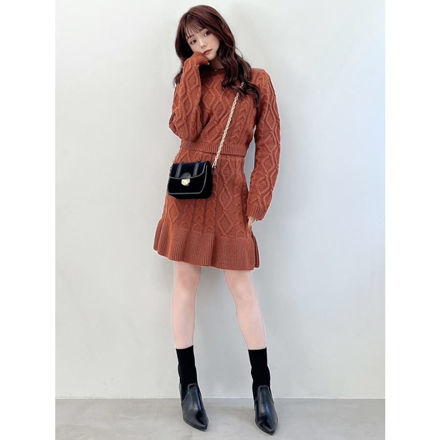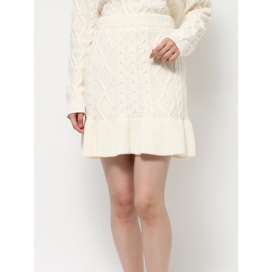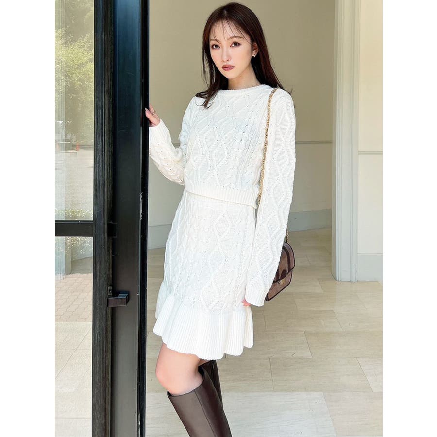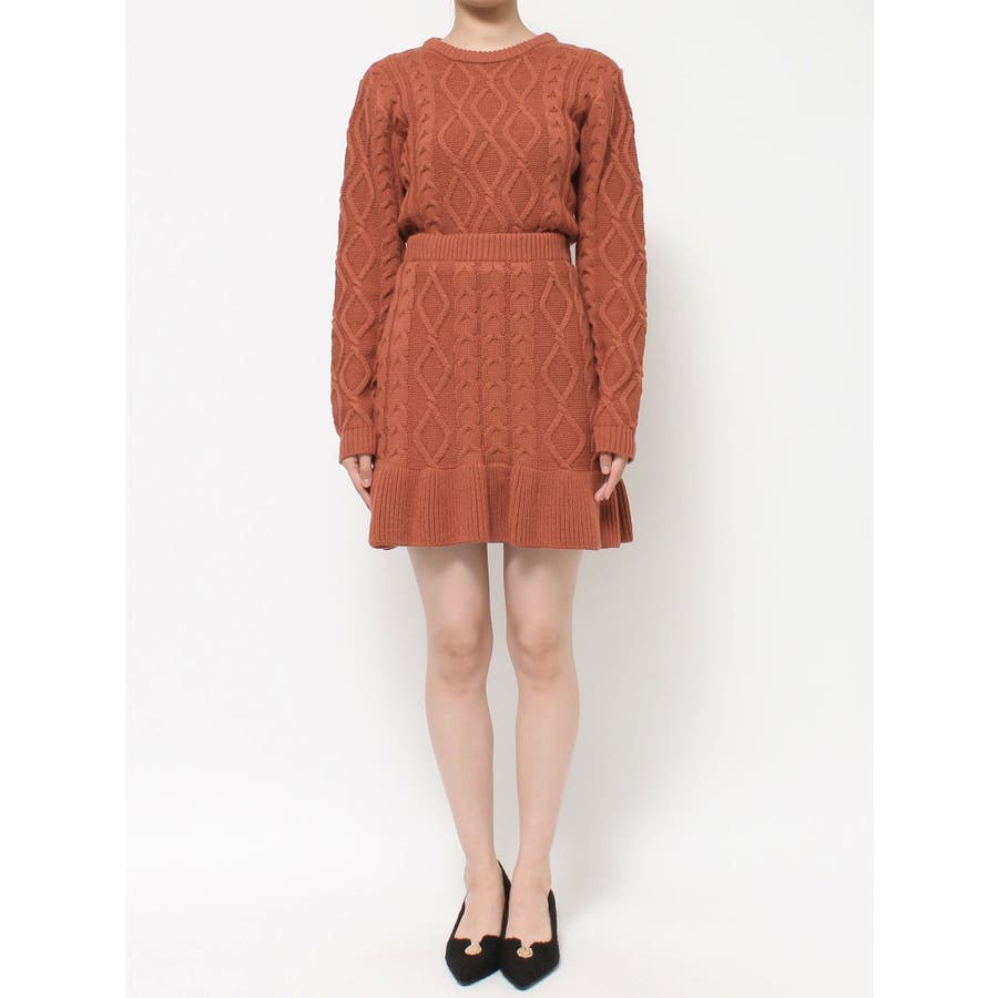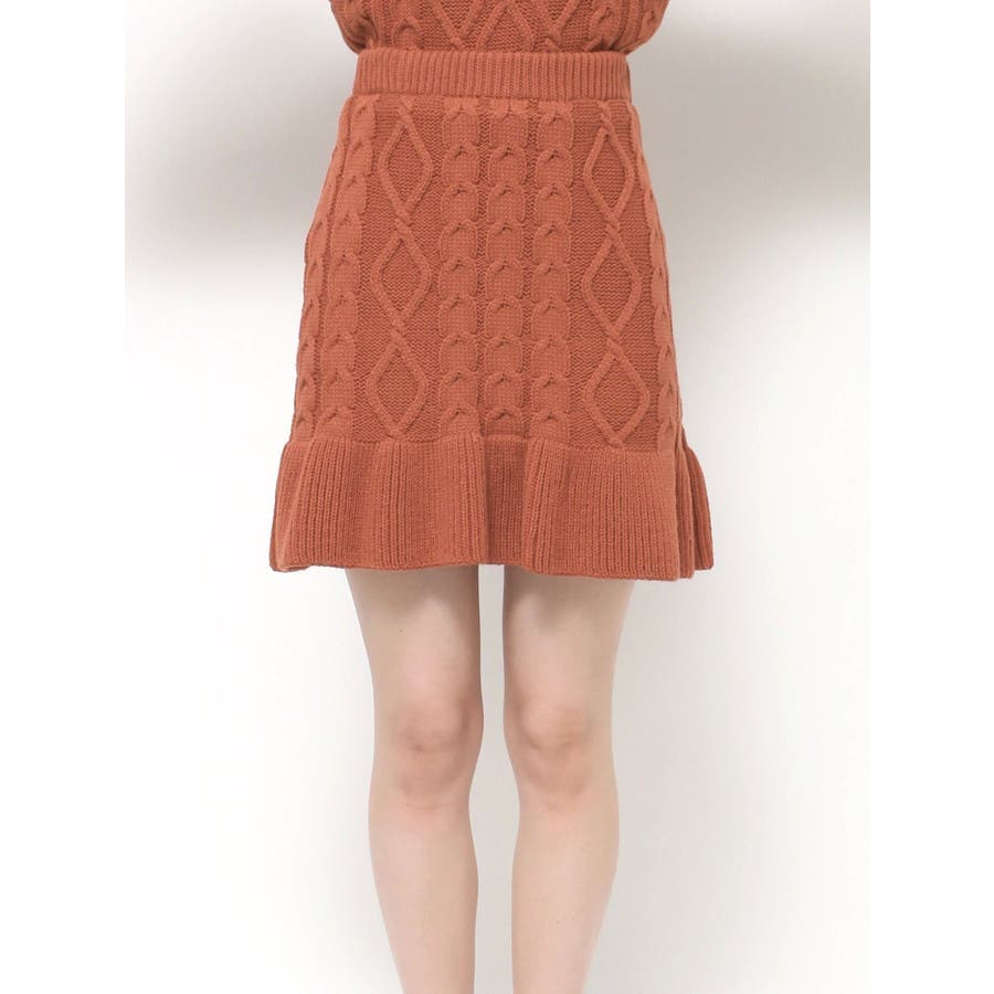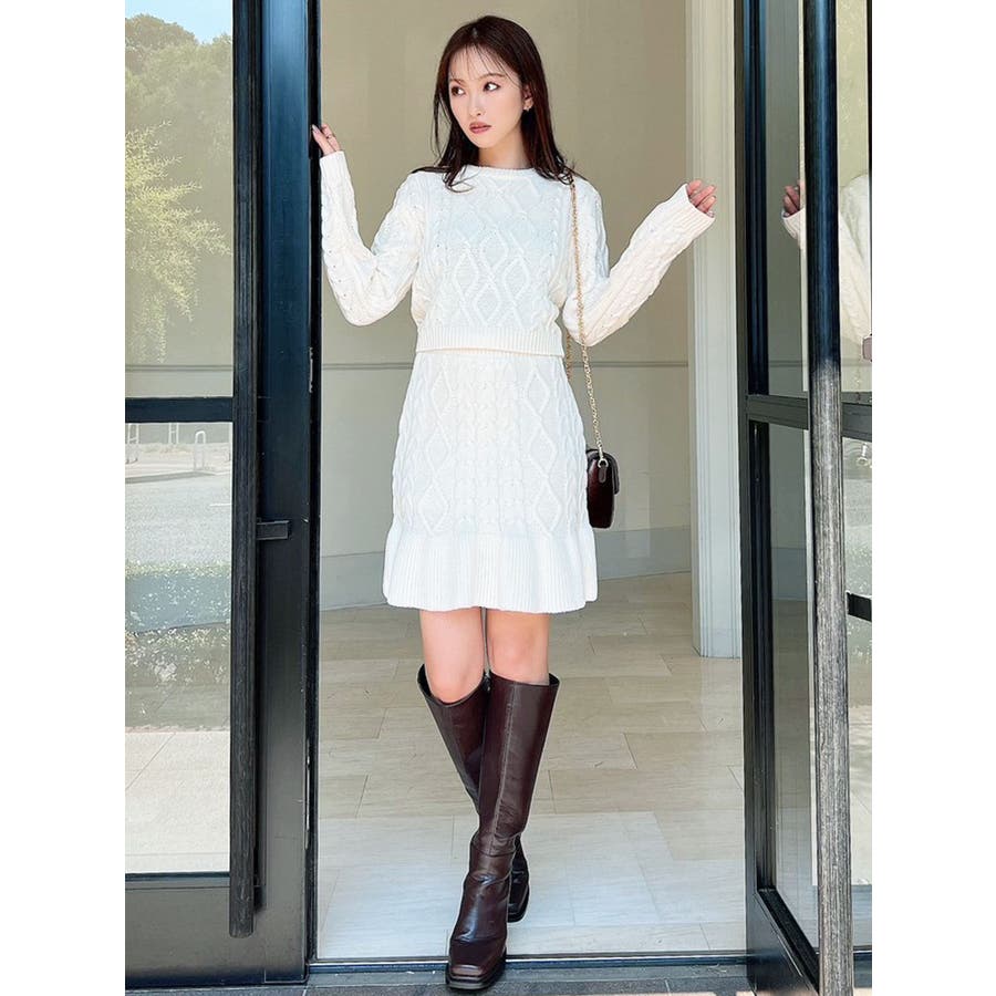 ケーブル編みがポイントのニットミニスカート▽デザイン▽ケーブルデザイン×マーメイドシルエットで女性らしさ満点のニットスカート。柔らかな肌触りで、ウエストゴムなので着心地楽ちん。膝辺りまで裏地付きで安心して着用していただけます。裾はリブに切り替え編地を変えたのもワンポイントに。▽カラー▽白・黒・オレンジの3色展開。▽スタイリング▽同色のニットと合わせればセットアップとしても着用可能◎シンプルなニット合わせでも季節感のあるスタイリングになります。ミニ丈なのでロングブーツ合わせがオススメ◎【セットアップアイテムはコチラ】152352673001:ケーブルショートニットトップス