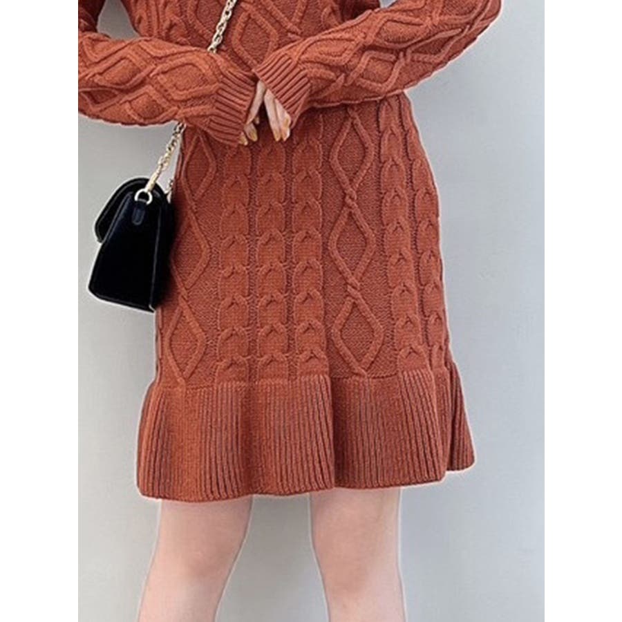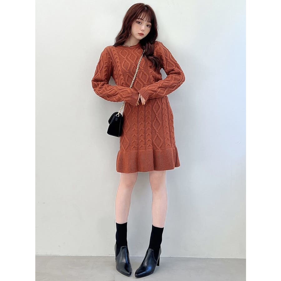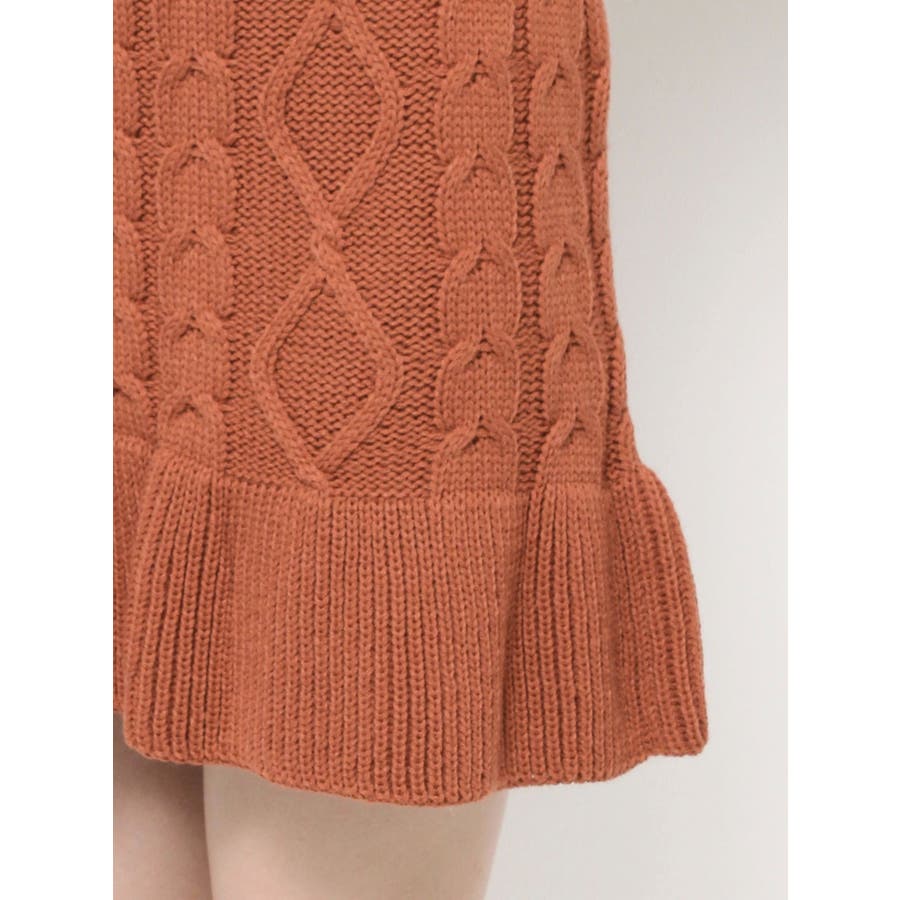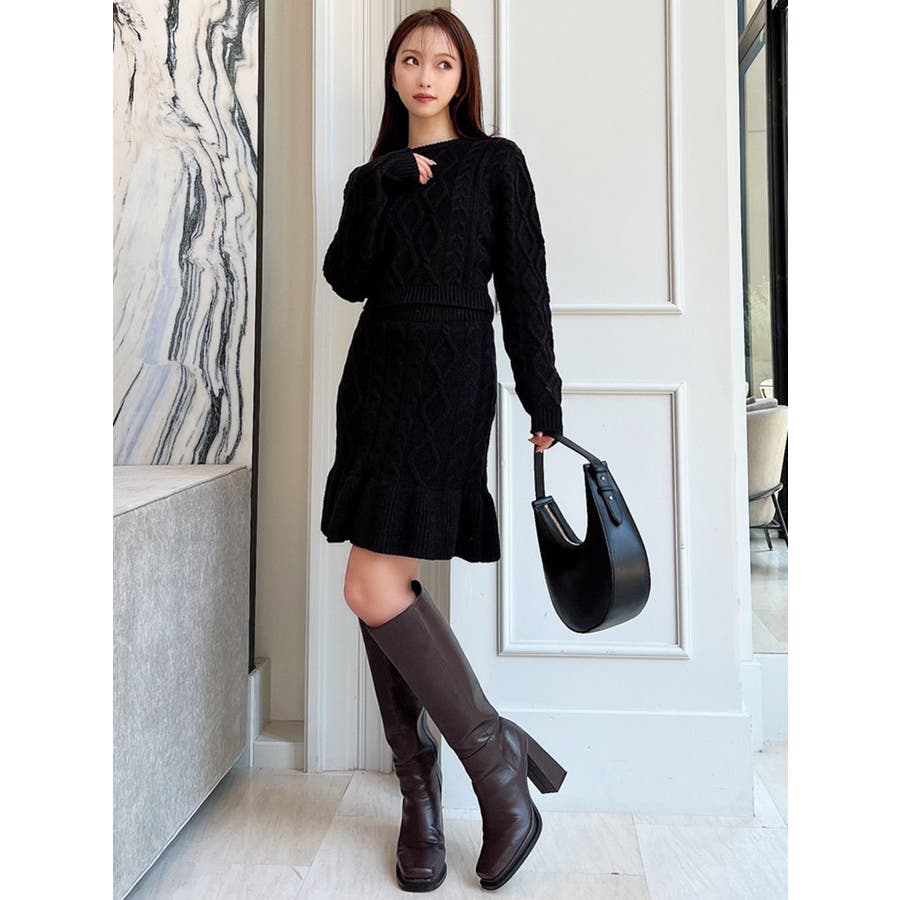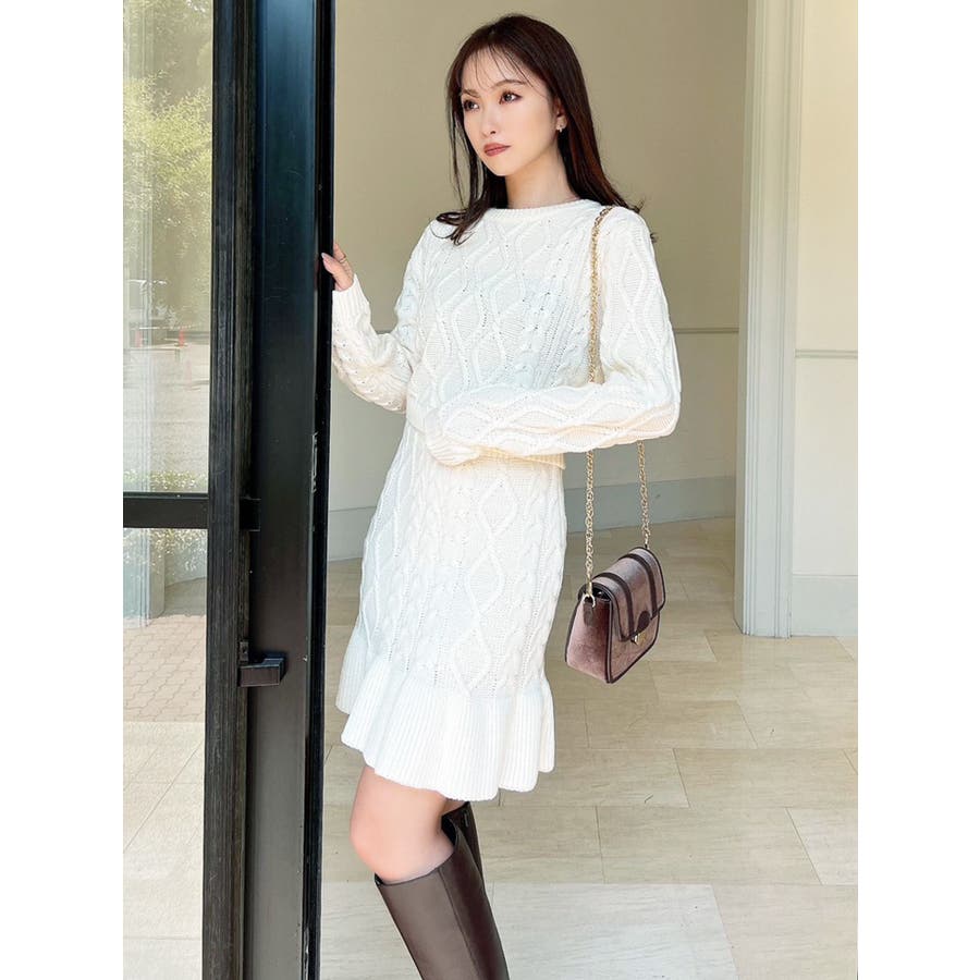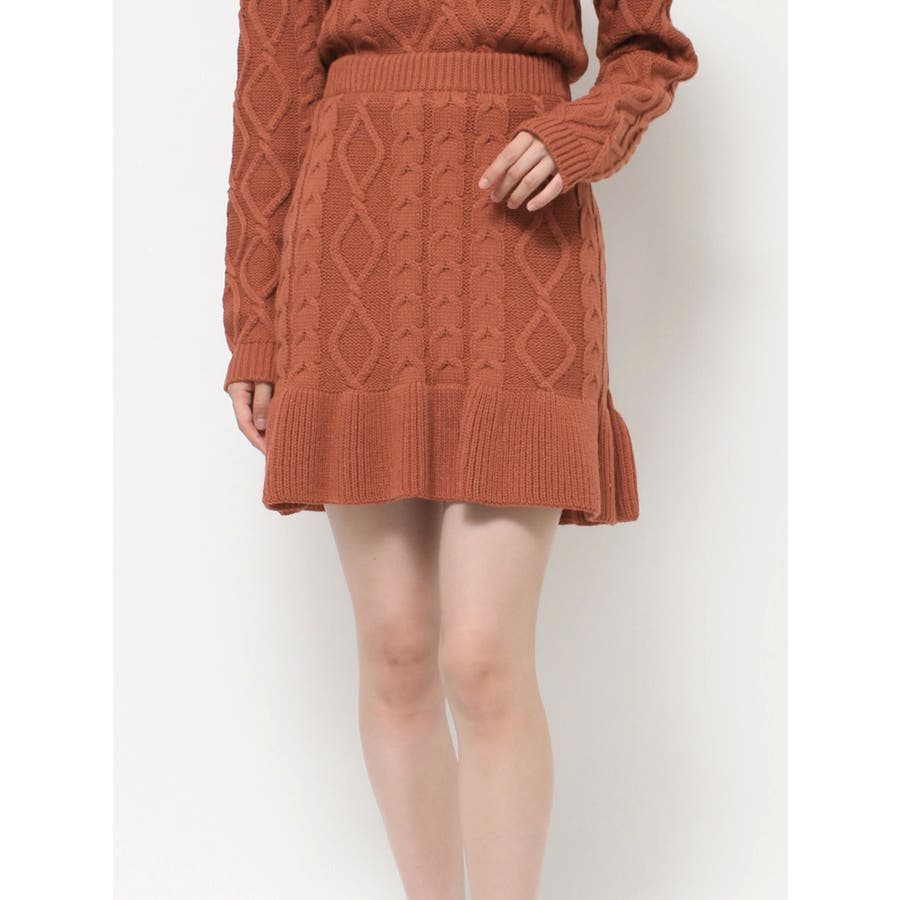 ケーブル編みがポイントのニットミニスカート▽デザイン▽ケーブルデザイン×マーメイドシルエットで女性らしさ満点のニットスカート。柔らかな肌触りで、ウエストゴムなので着心地楽ちん。膝辺りまで裏地付きで安心して着用していただけます。裾はリブに切り替え編地を変えたのもワンポイントに。▽カラー▽白・黒・オレンジの3色展開。▽スタイリング▽同色のニットと合わせればセットアップとしても着用可能◎シンプルなニット合わせでも季節感のあるスタイリングになります。ミニ丈なのでロングブーツ合わせがオススメ◎【セットアップアイテムはコチラ】152352673001:ケーブルショートニットトップス