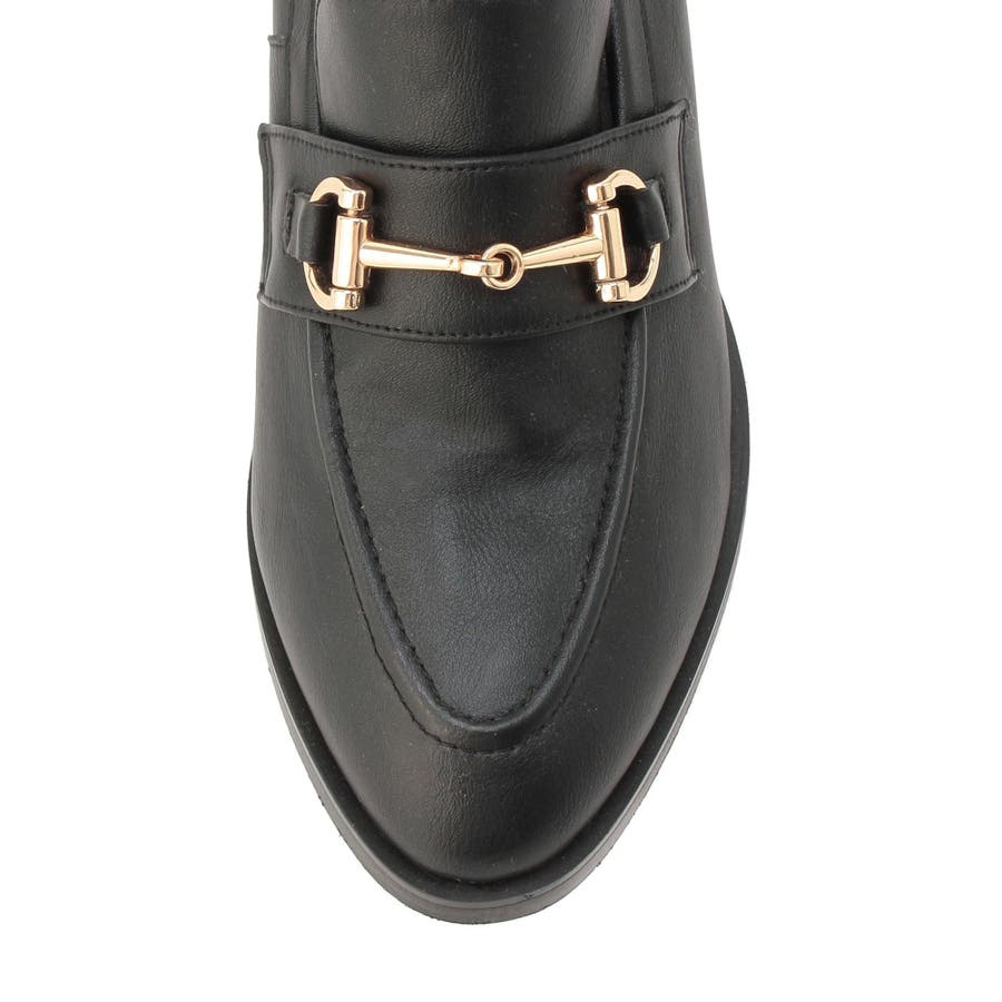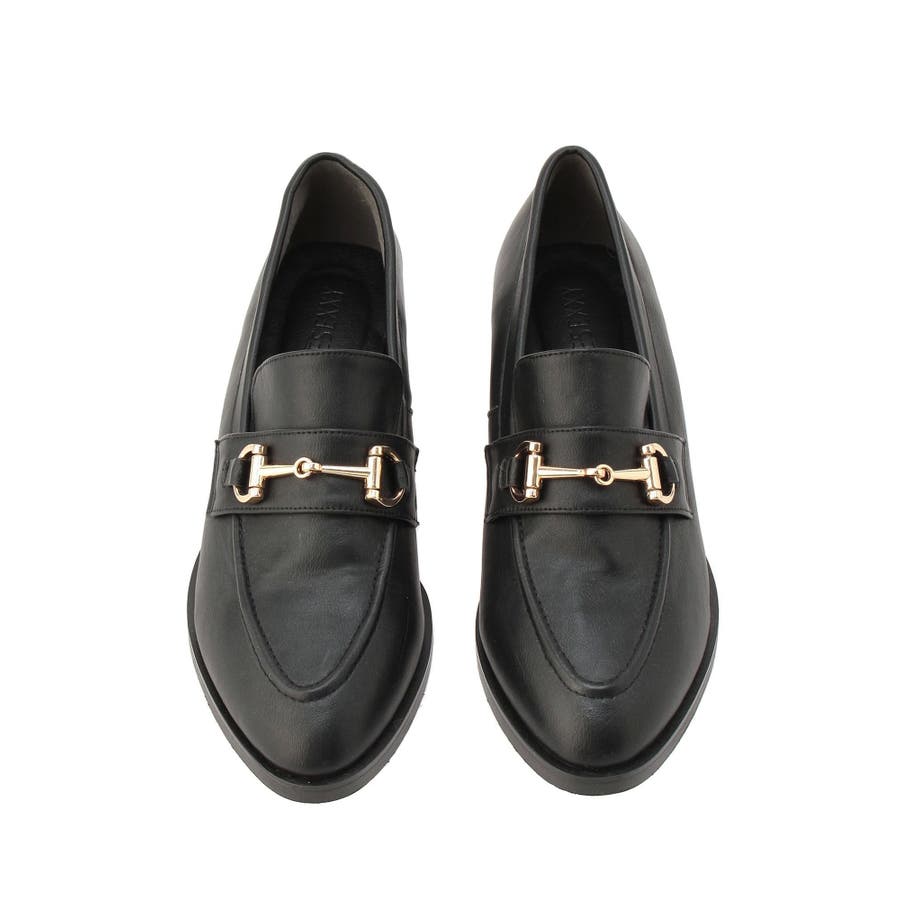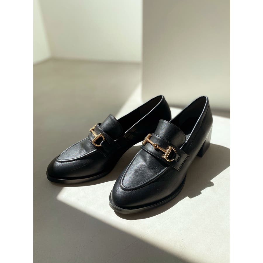 トレンド感のあるローファーが登場。▽デザイン▽少し大きめなスクエアヒールが特徴的なローファー♪アッパーデザインはベーシックに、ポイントでゴールドのビットを付けました。靴下合わせがトレンドっぽくオススメです。▽カラー▽黒・ブラウンの2色展開。【スタッフ着用レビュー】 スタッフB(普段のサイズ: 24.5cm/足の幅: 9.8cm/甲の高さ: 5.6cm/ふくらはぎ周り:34cm)Mサイズ着用で丁度よかったです。クッション性があり歩きやすく、ベーシックなデザインなので普段使いしやすいです。