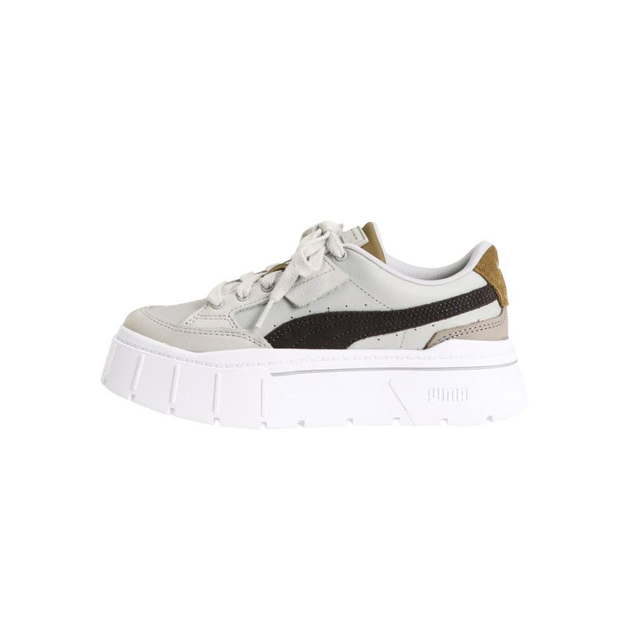 台形型に広がったボリューム感満点の厚底ソールが、最大の魅力のメイズスタックがアップデートされて誕生。なめらかなレザーとニュアンスカラーが美しい一足です。Leather Working Groupに認定された、環境に配慮した革の製造方法で作られたレザーを使用しています。グリップ力とクッション性が高く疲れにくい厚底ソールは、スタイルアップ効果と安定した履き心地で、歩きやすいシューズです。見た目のインパクトと履き心地を両方兼ね備えたアイテムです。