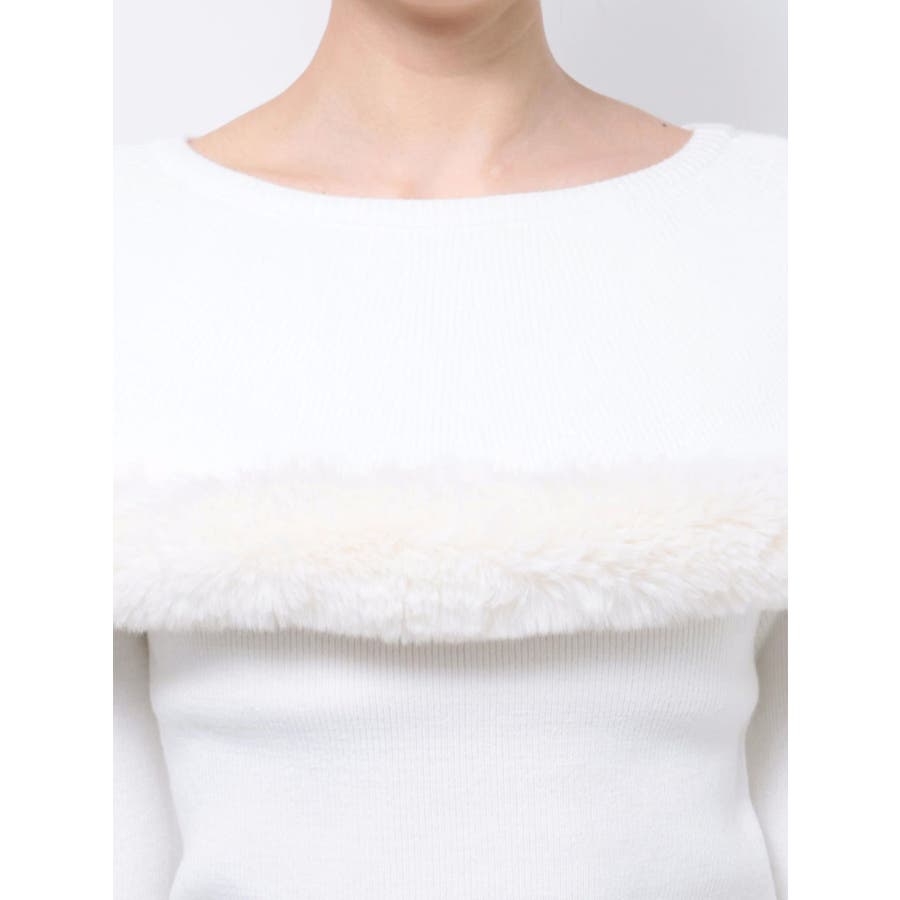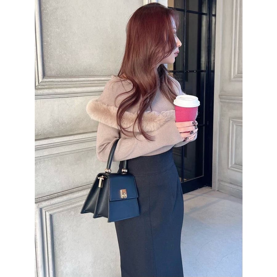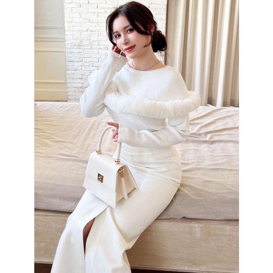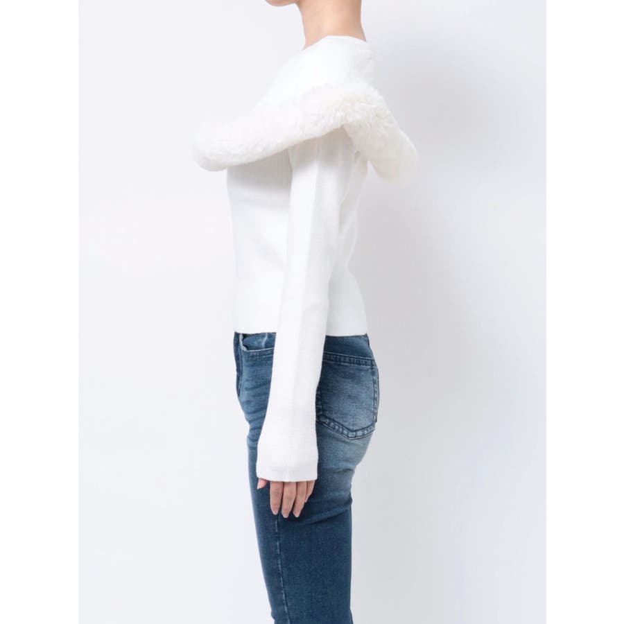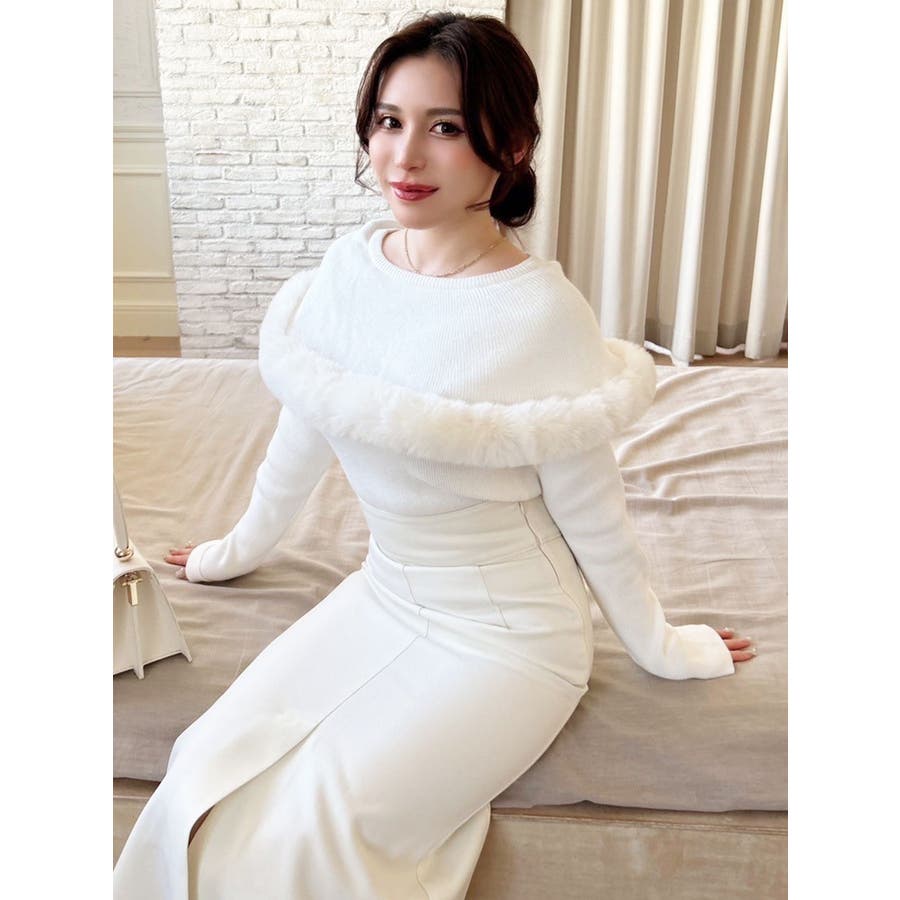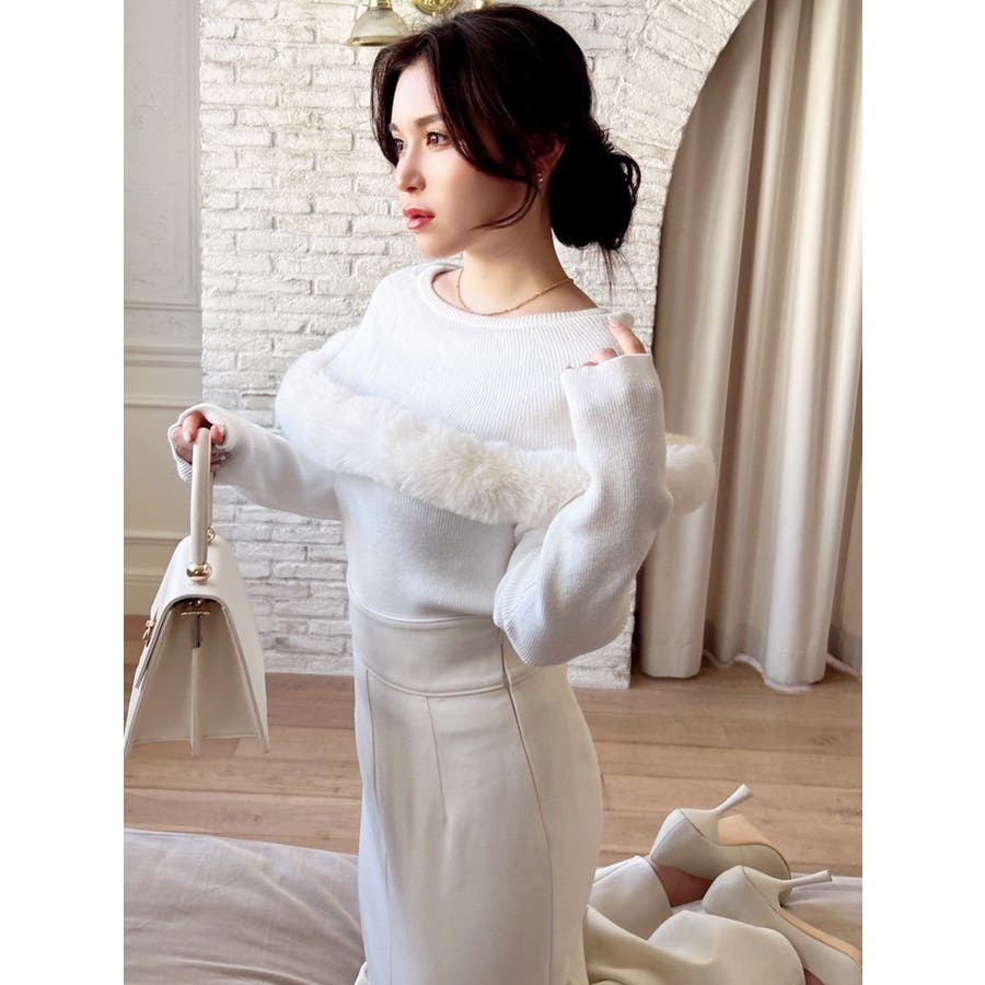 冬にピッタリのニットトップスが登場♪▽デザイン▽1枚でケープが付いたようなデザインで華やかな印象を与えてくれるニットトップス。フェイクファーが愛らしく、コーデのポイントに◎首元を開けたことで重たくならず、女性らしさをプラスしてくれる抜け感に。ボディと袖はタイトなサイズ感にしたことでボリュームが出すぎず、メリハリのあるシルエットに仕上がります。▽カラー▽白・黒・ベージュの3色展開。▽スタイリング▽ボトムはスカート合わせでとことん女性らしくまとめたスタイルがオススメ!冬の特別なシーンにぴったりなデザインでコートを脱いでもお洒落なスタイルが叶います。※着用画像はフラッシュの加減で実際の製品と色味等が異なる場合がございますので、生地のズームアップ画像をご確認ください。※ご利用の端末画面の設定により実際の商品と色味が異なる場合がございます。【商品特徴】透け感:なし伸縮性:あり生地の厚さ:普通サイズ感:普通裏地:なしポケット:なし