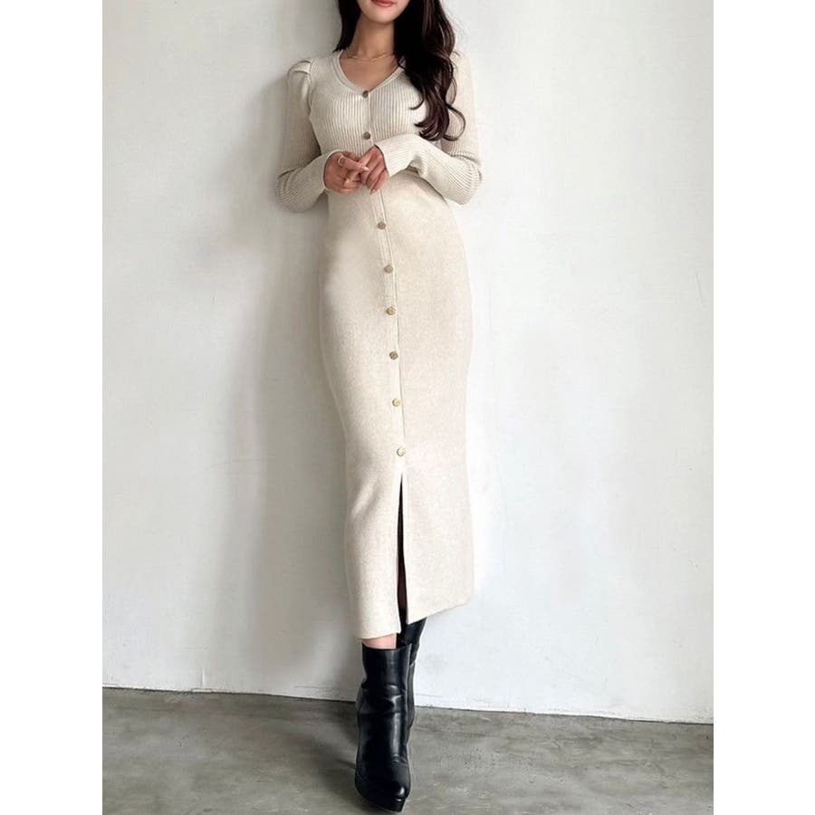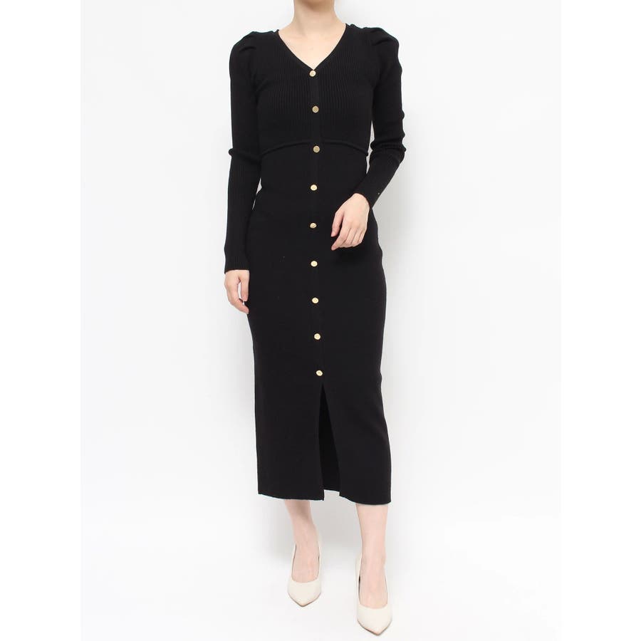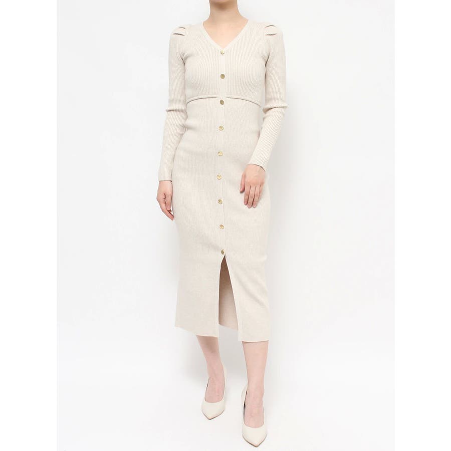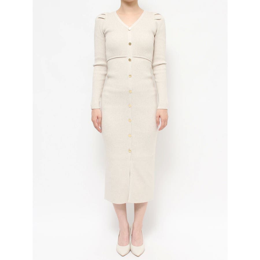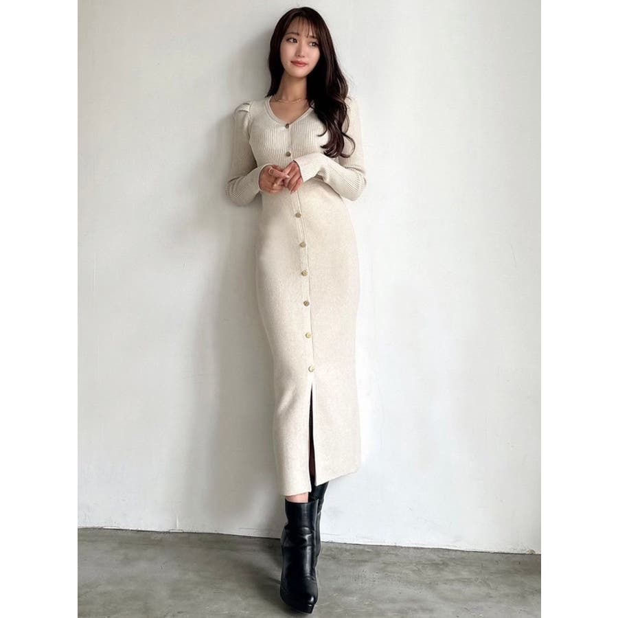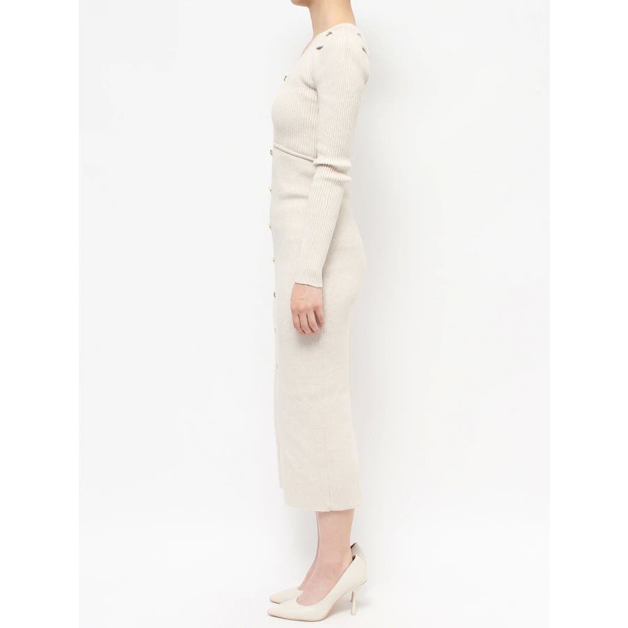 ゴールトボタンタイトニットワンピース