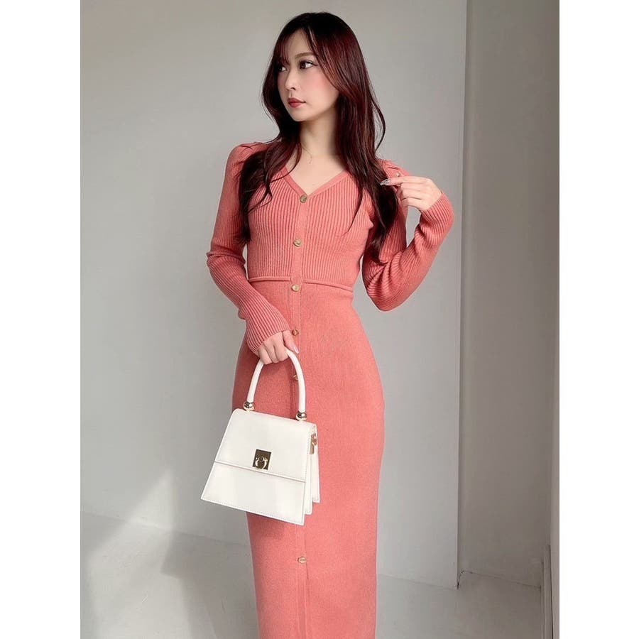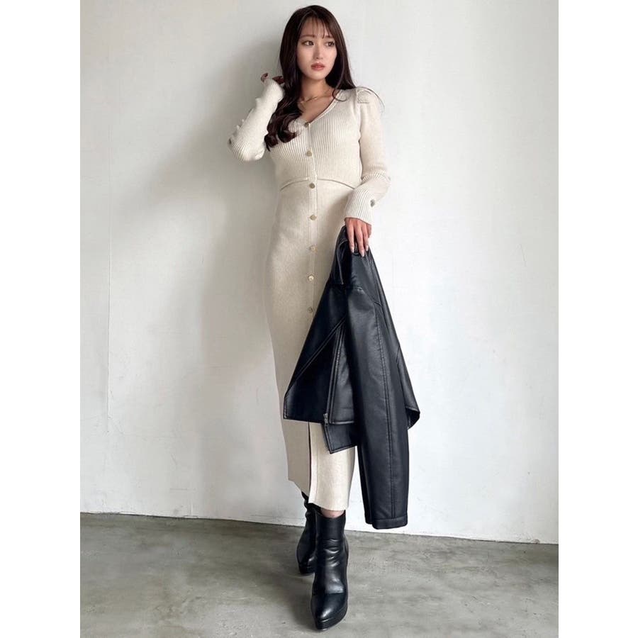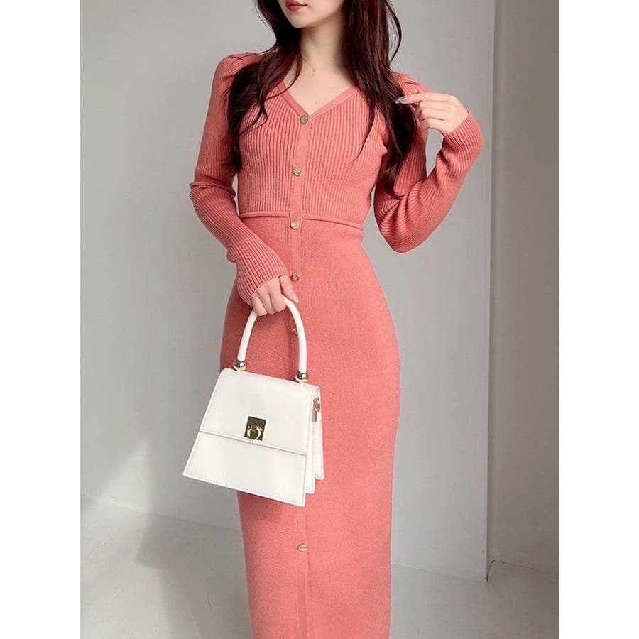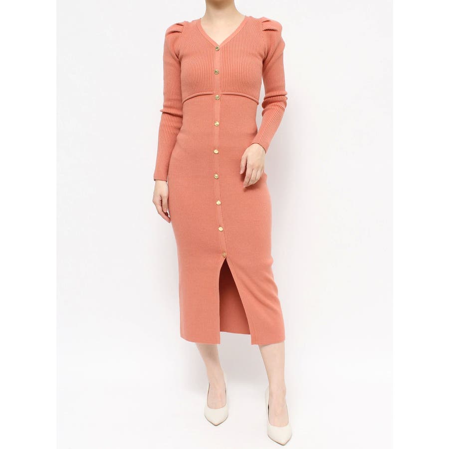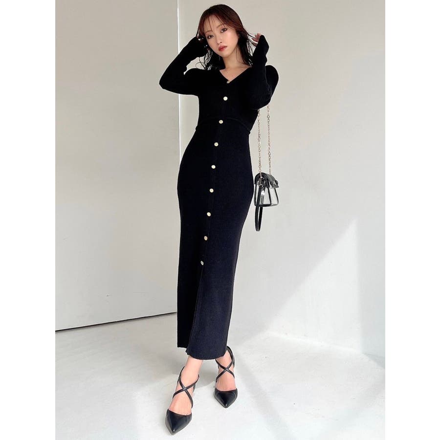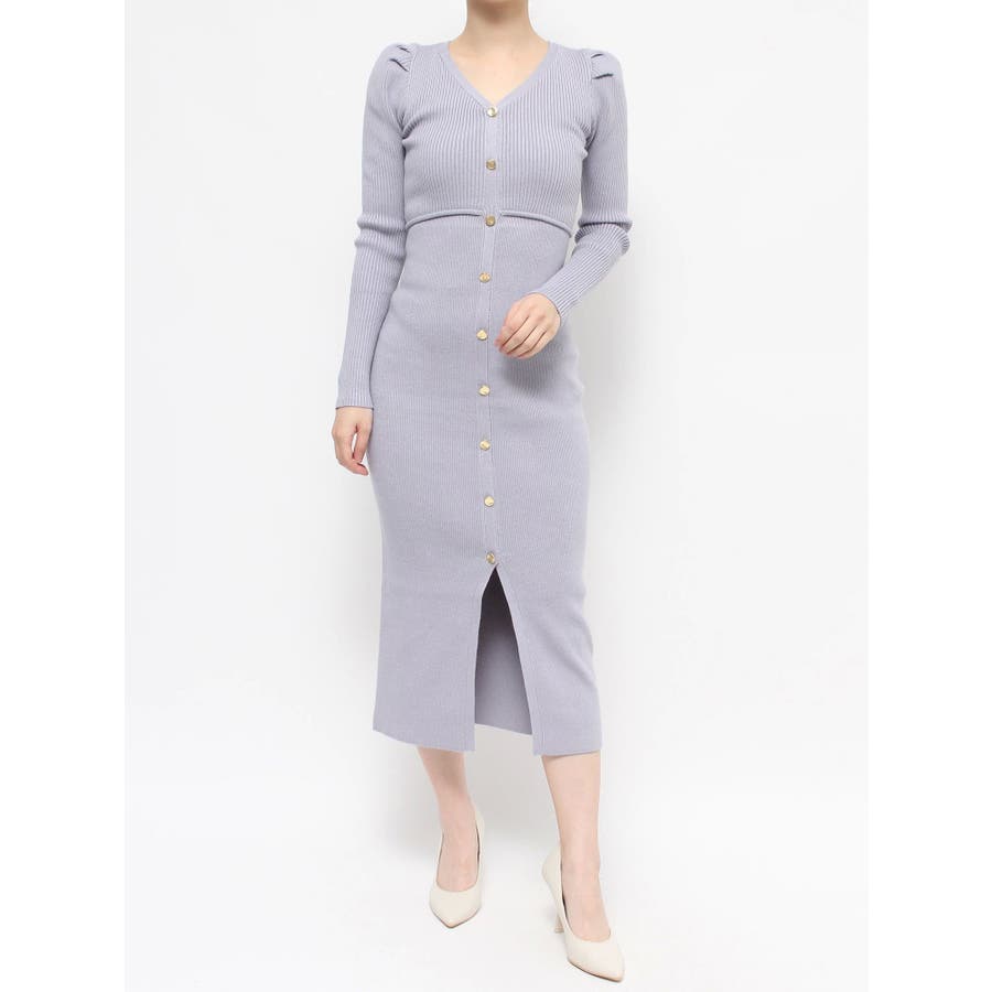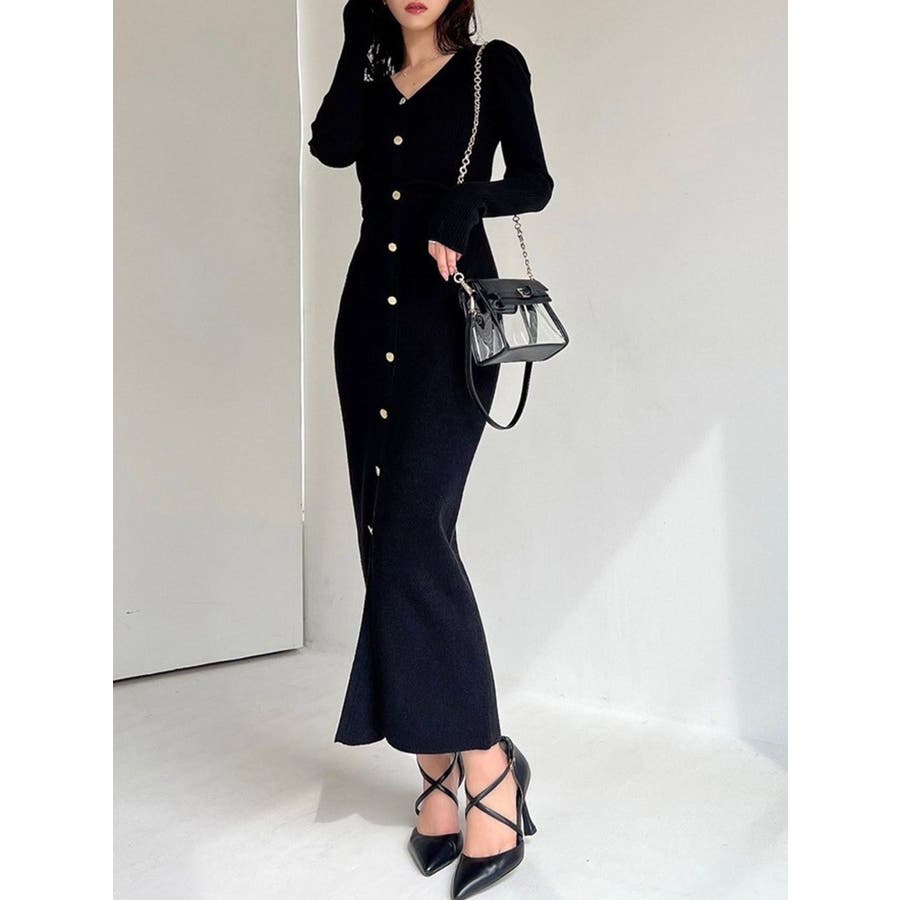 ゴールトボタンタイトニットワンピース