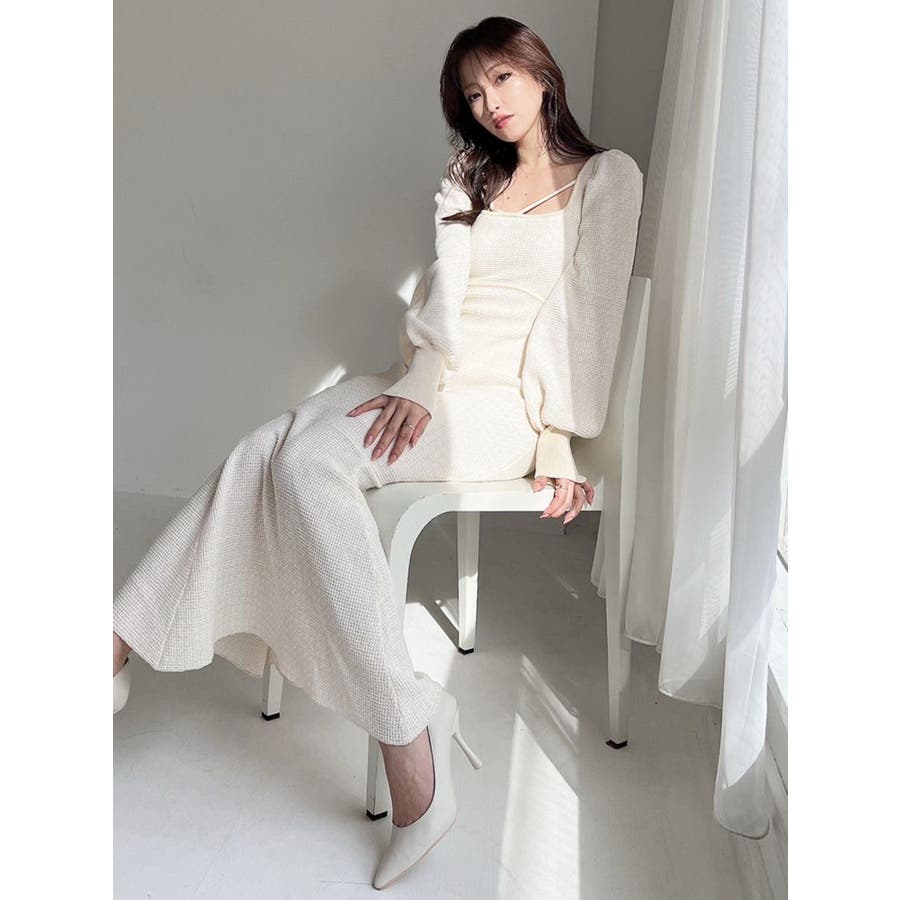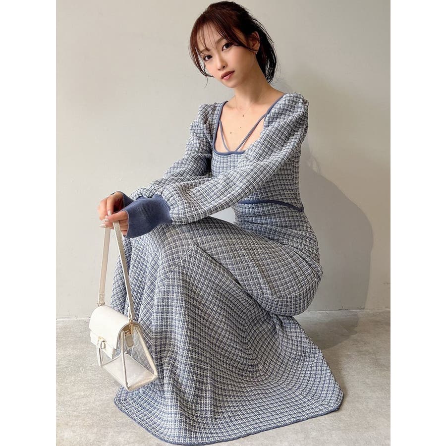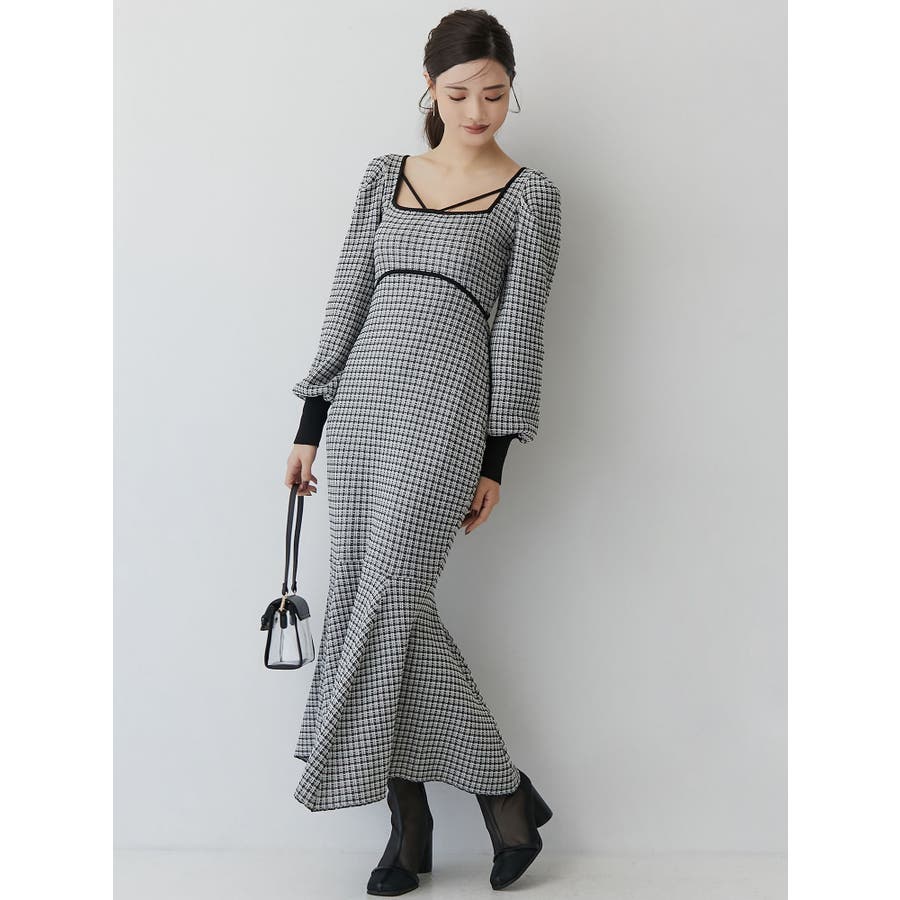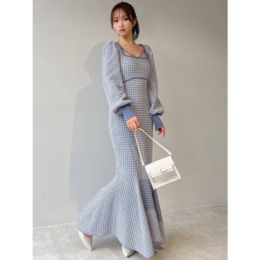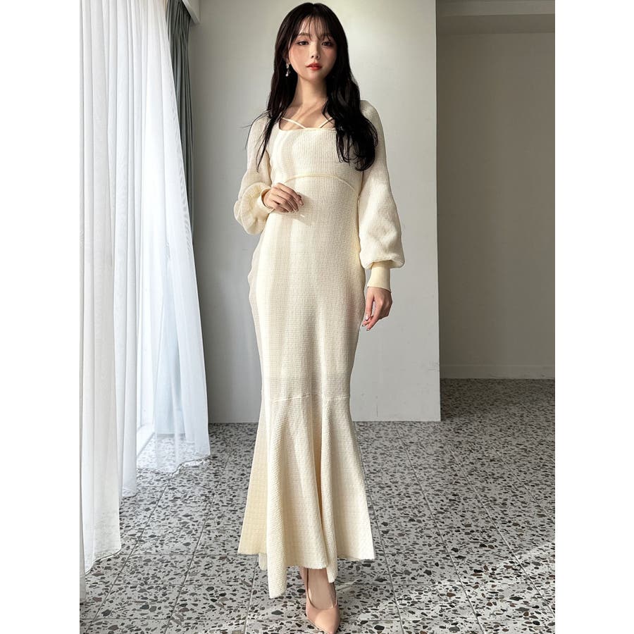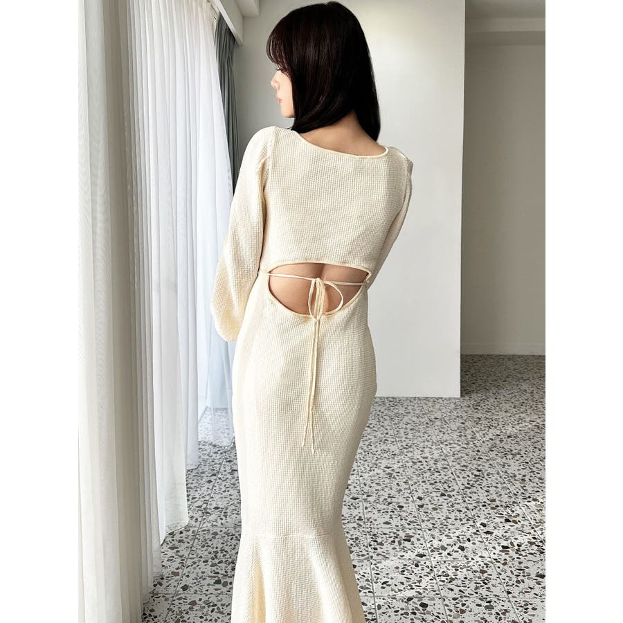 イチオシのツイードマーメイドワンピース▽デザイン▽ジャガード編みでツイード調のニットワンピースを作りました♪涼しげなシャリっとした糸を使用し、春らしい素材感でツイードニットをお楽しみ頂ける1着。数カラーの糸を組み合わせて立体感ある配色を作り、部分的に濃色にしたことで全体が締まる印象にしました。人気のバックオープンデザインにし、バックリボンでウエスト調節が可能◎バスト下に切り替えのラインを入れたことでスタイルアップ効果も。デコルテはスクエアネックで華奢見えするデザインに。裏地付きなので1枚で安心して着用していただけます。▽カラー▽白・黒・青の3色展開。▽スタイリング▽1枚でキレイめスタイリングが完成◎身頃はボディにフィットするサイズ感なのでトレンチコートやジャケット合わせも◎※着用画像はフラッシュの加減で実際の製品と色味等が異なる場合がございますので、生地のズームアップ画像をご確認ください。※ご利用の端末画面の設定により実際の商品と色味が異なる場合がございます。【商品特徴】透け感:なし伸縮性:ややあり生地の厚さ:普通サイズ感:普通裏地:ありポケット:なしファスナー:なし