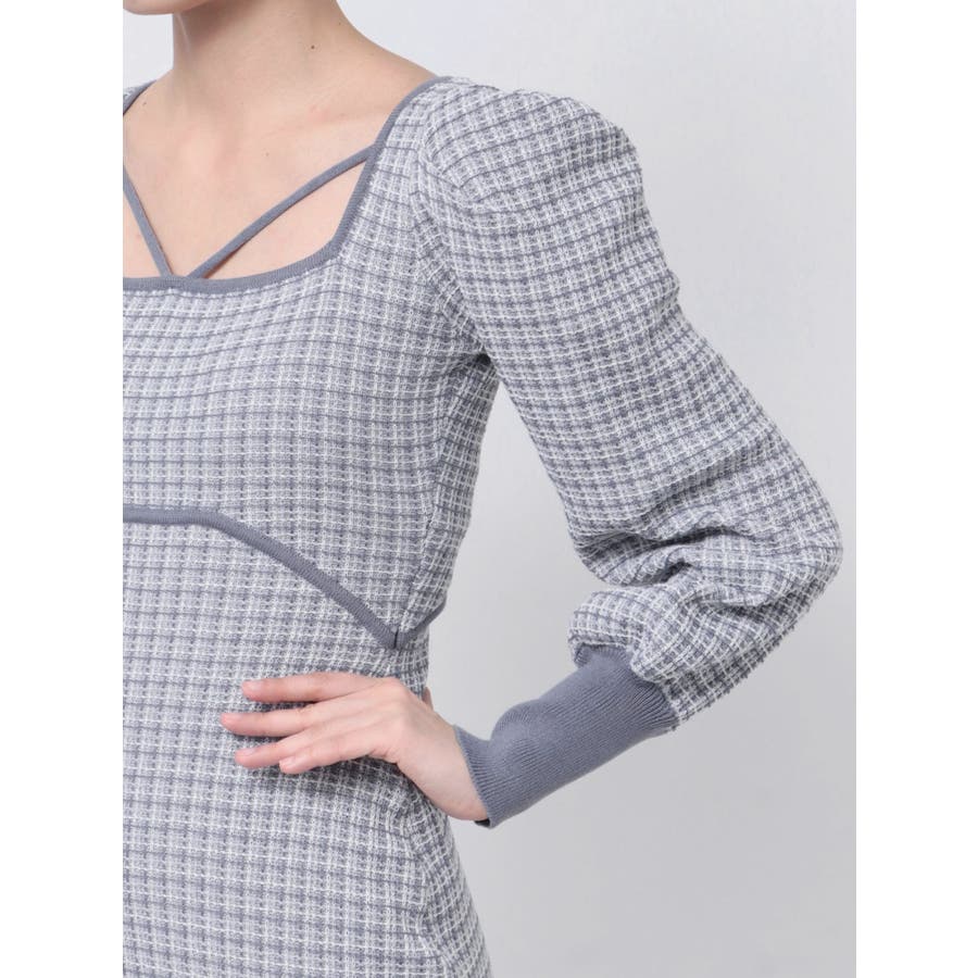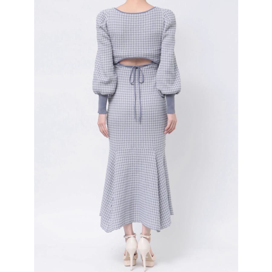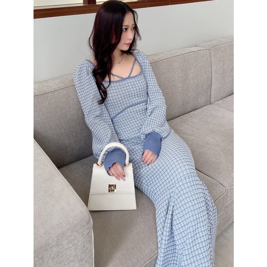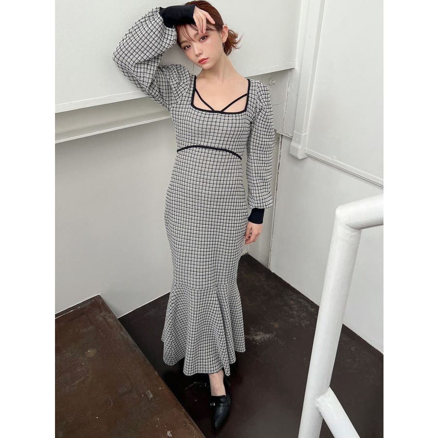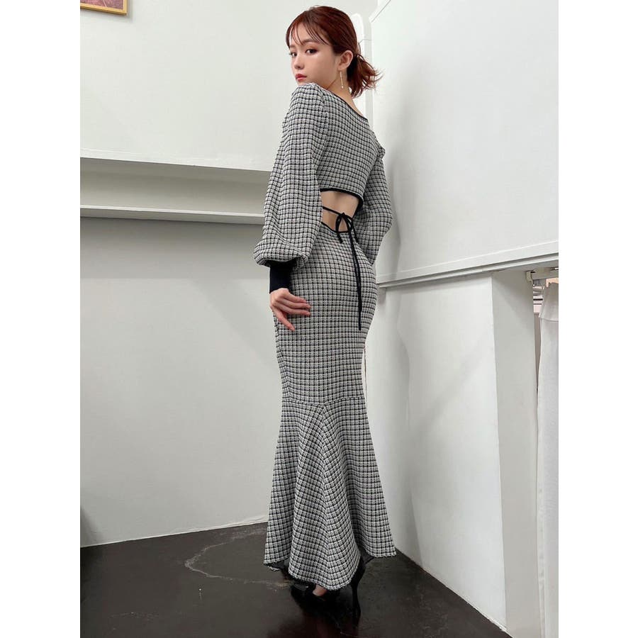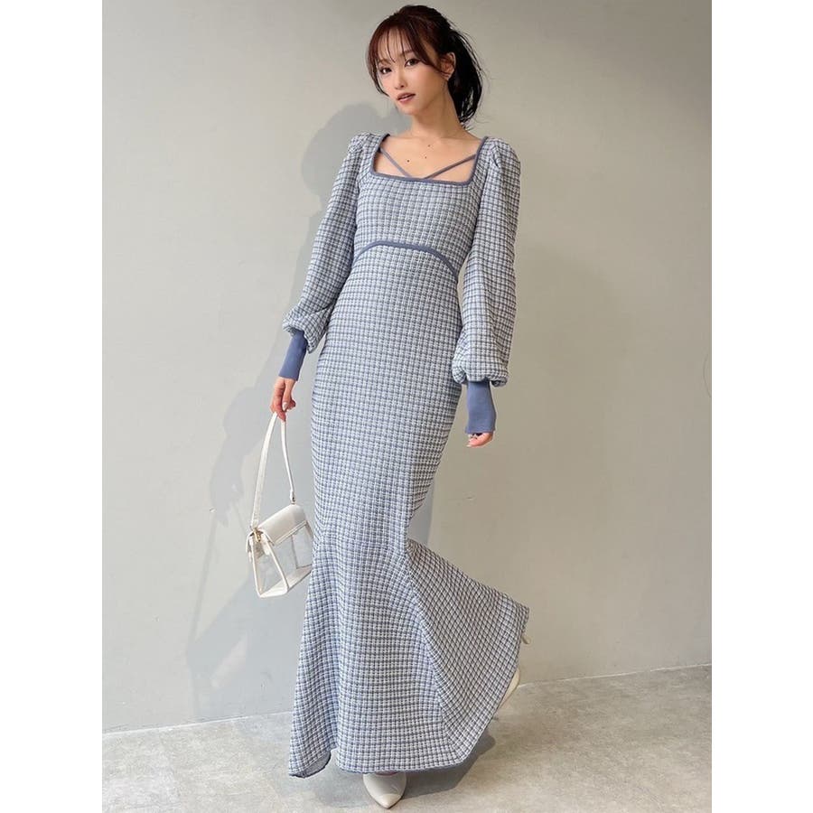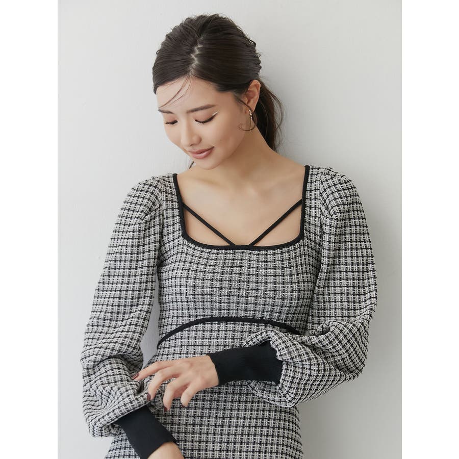 イチオシのツイードマーメイドワンピース▽デザイン▽ジャガード編みでツイード調のニットワンピースを作りました♪涼しげなシャリっとした糸を使用し、春らしい素材感でツイードニットをお楽しみ頂ける1着。数カラーの糸を組み合わせて立体感ある配色を作り、部分的に濃色にしたことで全体が締まる印象にしました。人気のバックオープンデザインにし、バックリボンでウエスト調節が可能◎バスト下に切り替えのラインを入れたことでスタイルアップ効果も。デコルテはスクエアネックで華奢見えするデザインに。裏地付きなので1枚で安心して着用していただけます。▽カラー▽白・黒・青の3色展開。▽スタイリング▽1枚でキレイめスタイリングが完成◎身頃はボディにフィットするサイズ感なのでトレンチコートやジャケット合わせも◎※着用画像はフラッシュの加減で実際の製品と色味等が異なる場合がございますので、生地のズームアップ画像をご確認ください。※ご利用の端末画面の設定により実際の商品と色味が異なる場合がございます。【商品特徴】透け感:なし伸縮性:ややあり生地の厚さ:普通サイズ感:普通裏地:ありポケット:なしファスナー:なし