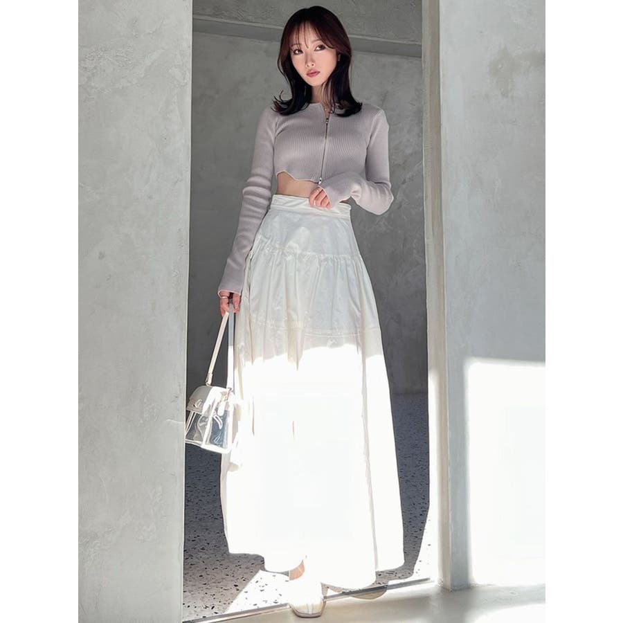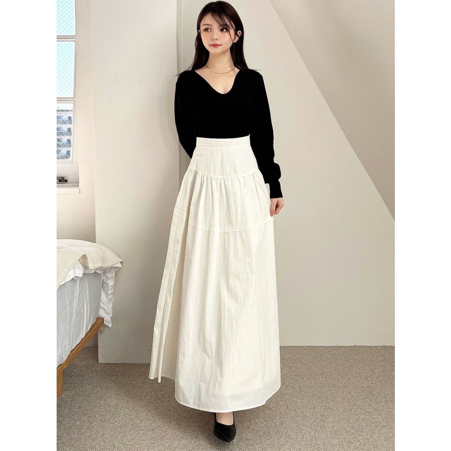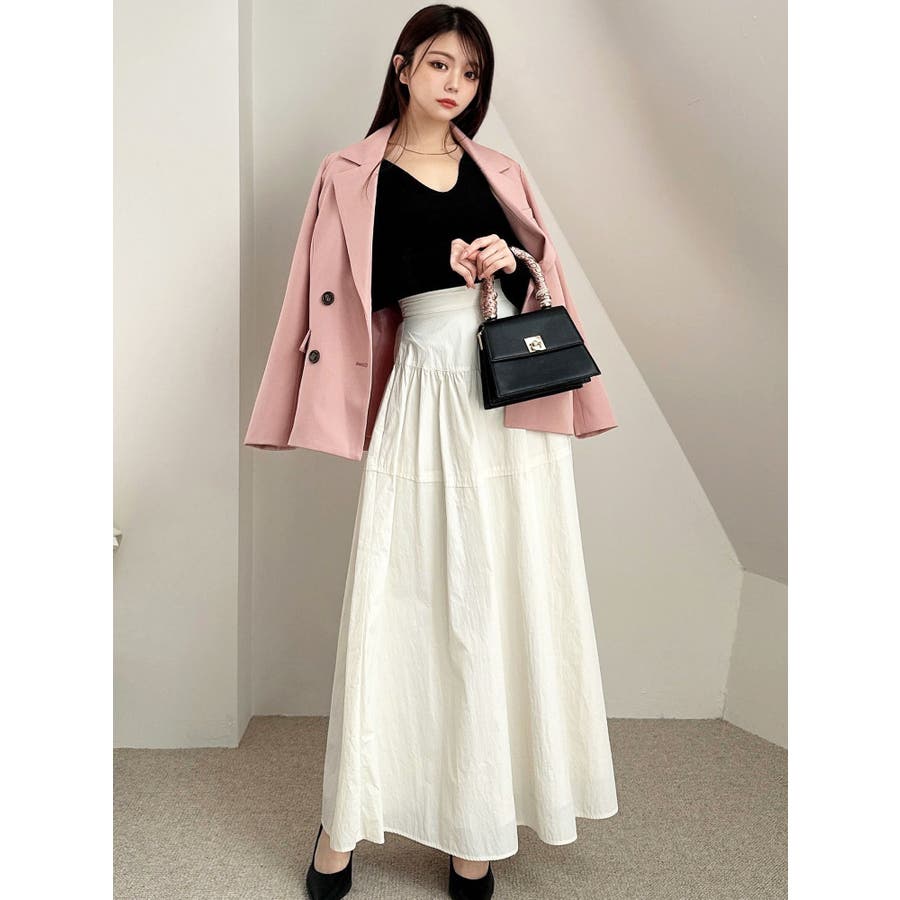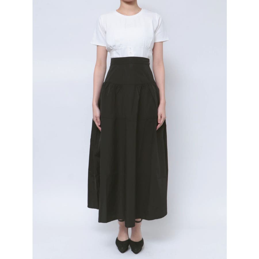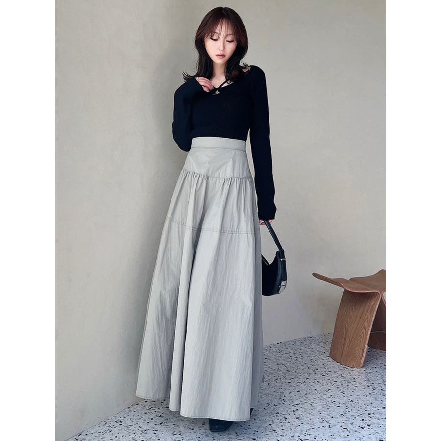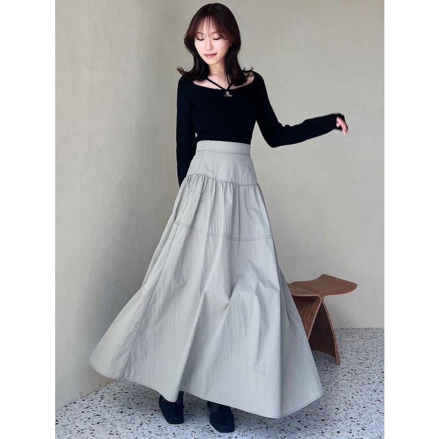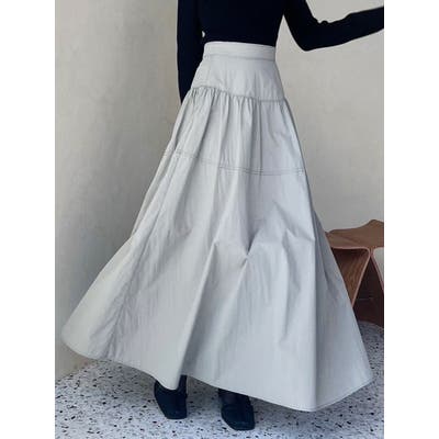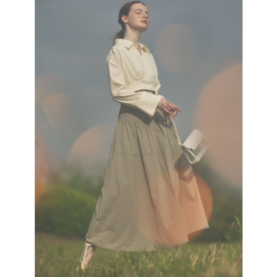 ナイロン生地を使用したロングスカート▽デザイン▽カジュアルライクな素材なのでギャザーを寄せたりタック使いをし、女性らしいシルエットとデザインに。ハリ感のある生地ですがボリューム感は抑え、コーデに取り入れやすいアイテムに仕上げました。ハイウエスト仕様なのでメリハリのあるシルエットに。軽い素材感でトレンド感のある大人なスタイリングに仕上がります◎▽カラー▽白・黒・カーキの3色展開。▽スタイリング▽クロップド丈のトップス合わせが今季らしくオススメ!Tシャツなどカジュアルなトップス合わせでもキレイめなニット合わせもマッチ。春~夏までロングシーズン活躍します。※着用画像はフラッシュの加減で実際の製品と色味等が異なる場合がございますので、生地のズームアップ画像をご確認ください。※ご利用の端末画面の設定により実際の商品と色味が異なる場合がございます。【商品特徴】透け感:なし伸縮性:なし生地の厚さ:普通サイズ感:ゆったり裏地:ありポケット:なし