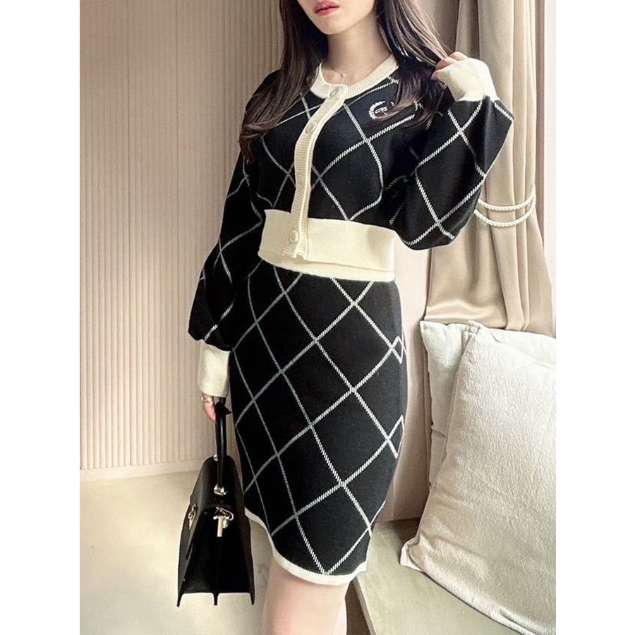 同柄のカーディガンと合わせればセットアップとして着用可能!