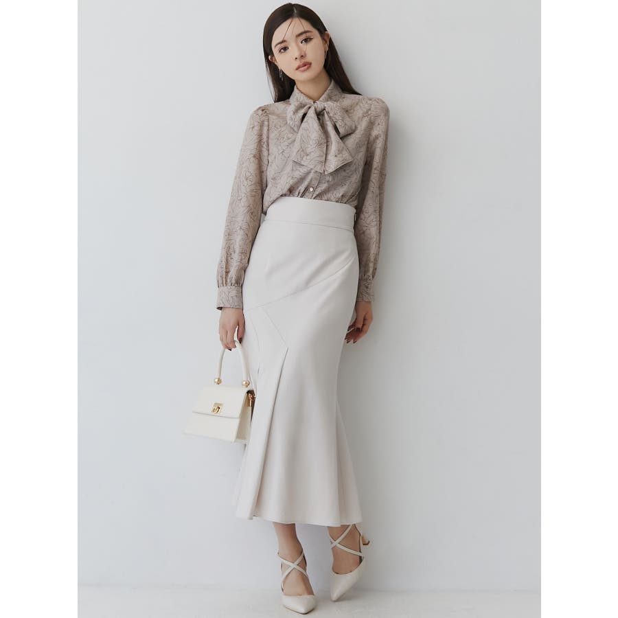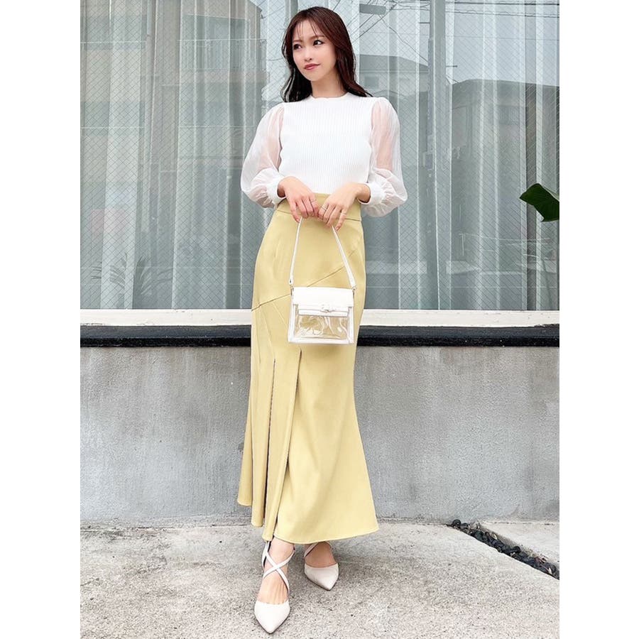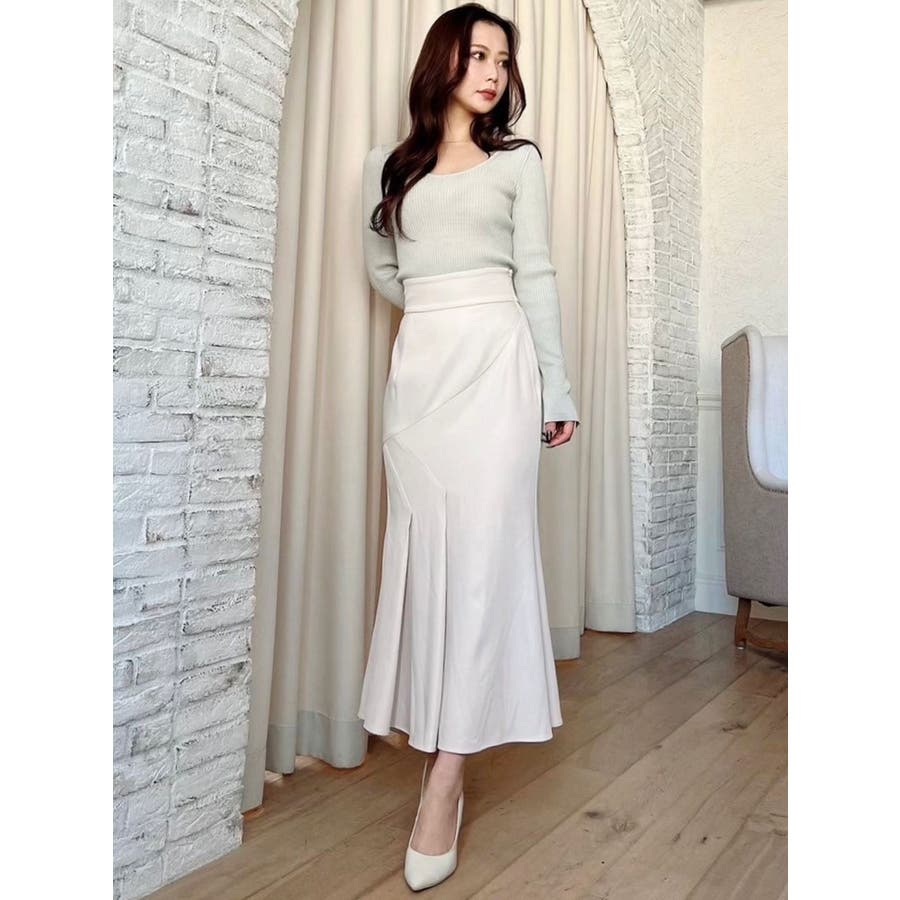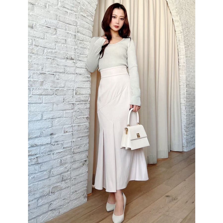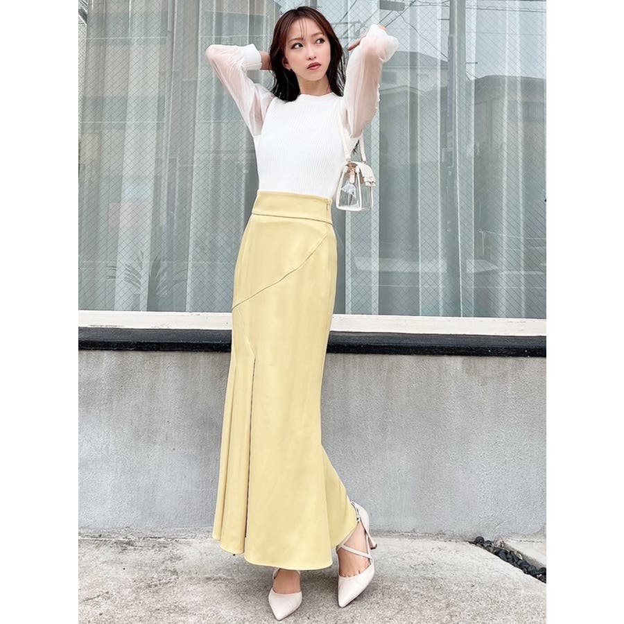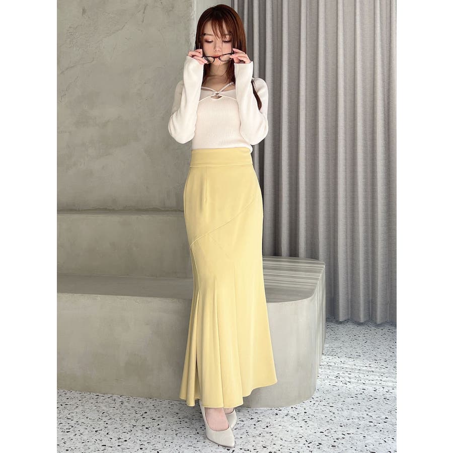 アシンメトリーに入ったタックがポイントのマーメイドスカート▽デザイン▽他にはないメリハリを効かせたデザインで、こなれ感を出した大人な雰囲気のある一枚です。裾に向かって緩やかに広がるマーメイドシルエットにしたことで身体のラインを拾いすぎず着やすい1枚に仕上げました。ハイウエストなのでウエストラインはしっかりと引き締め、美しいシルエットのスタイリングになります◎▽カラー▽白・黒・黄色の3色展開。▽スタイリング▽タイトなニットをインしたスタイリングはもちろん、オーバーサイズのトップスをアウトで着てもすっきりまとまります。1枚持っていればシーズンレスに着用できる万能スカートです♪※着用画像はフラッシュの加減で実際の製品と色味等が異なる場合がございますので、生地のズームアップ画像をご確認ください。※ご利用の端末画面の設定により実際の商品と色味が異なる場合がございます。【商品特徴】透け感:なし伸縮性:なし生地の厚さ:普通サイズ感:普通 裏地:ありポケット:なし