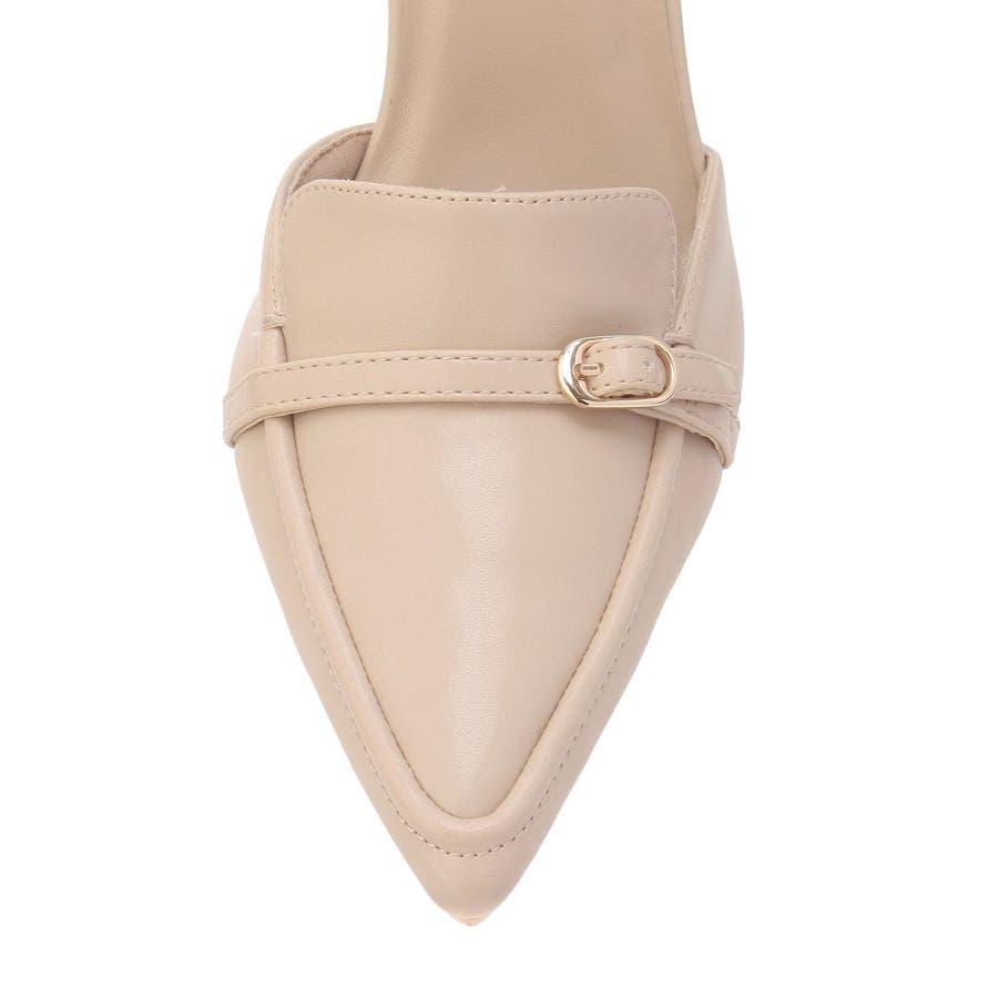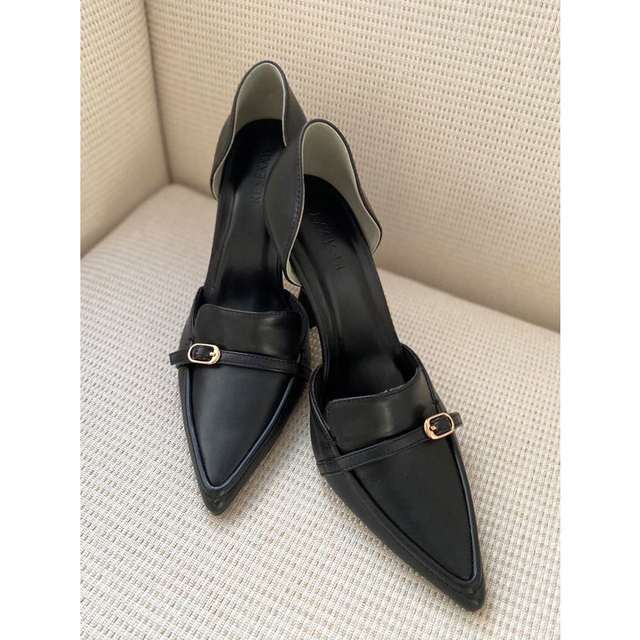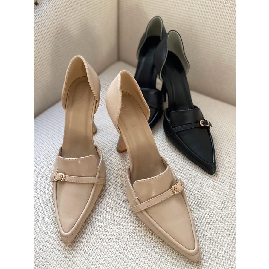 アッパーには華奢な細いベルトデザインを落とし込み、上品さのあるパンプスに仕上げました。