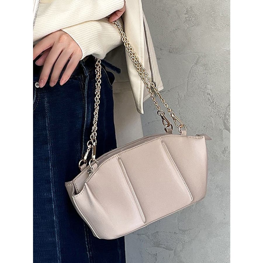 ピンタックデザインがポイントのハンドバッグ▽デザイン▽横長のシルエットで口も大きく開くのでデザイン性がありながらも大容量なのが嬉しいポイント。チェーンハンドルもついているので高級感があり、ショルダーバッグとしてもハンドバッグとしても使える2WAY仕様。▽カラー▽合わせやすいベーシックな黒とベージュでご用意しました♪