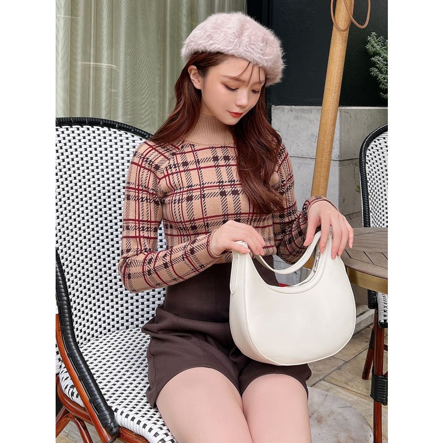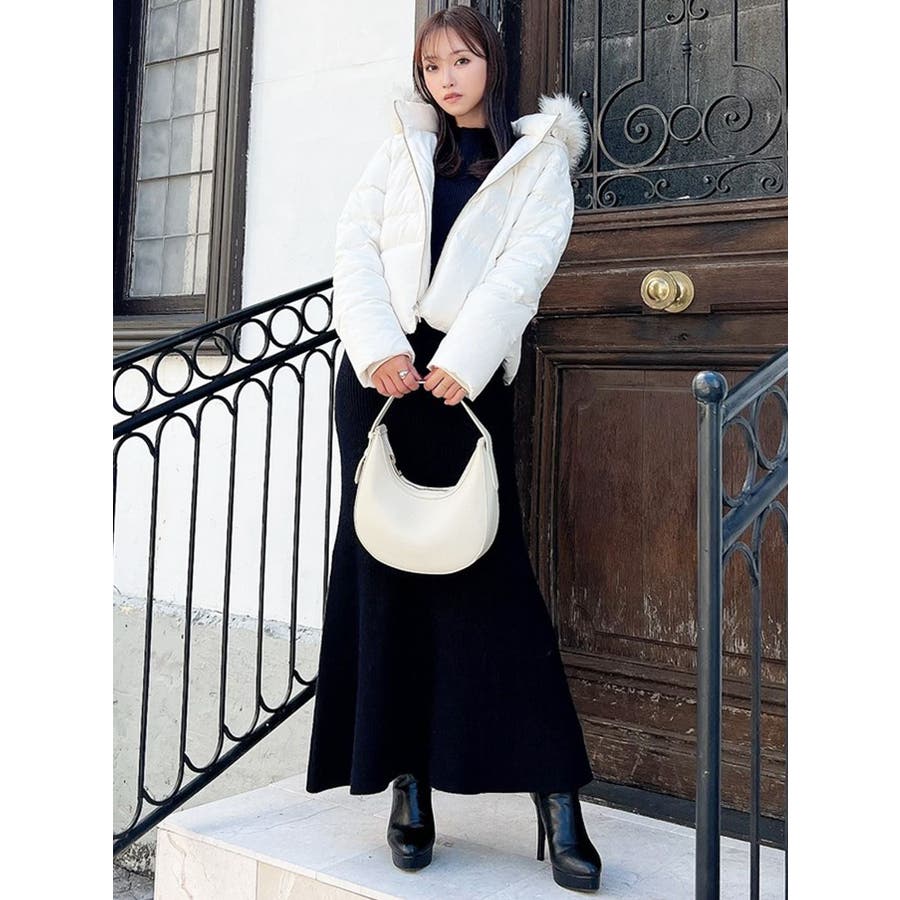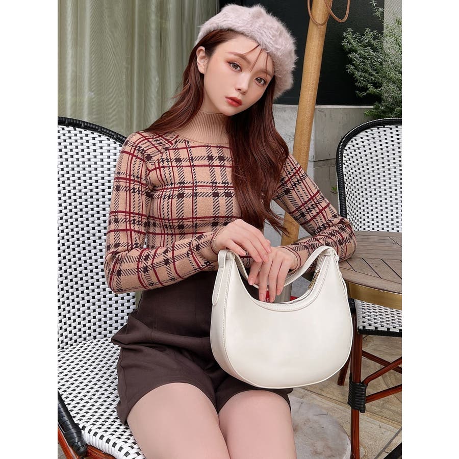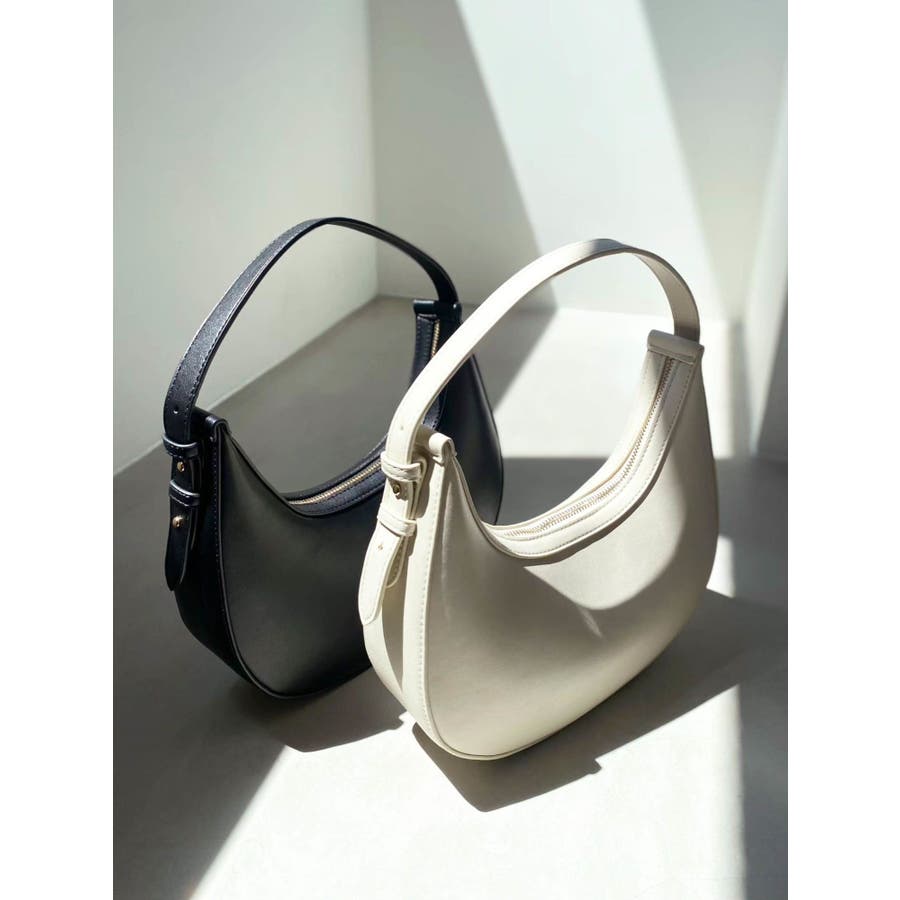 コンパクトサイズのハーフムーンバッグ▽デザイン▽固めのしっかりした素材を使用し綺麗な形が出るようにしました。ハンドル部分にはゴールドのギボシを付け調節可能なところが嬉しいポイント♪様々なスタイリングに合わせやすく、シーズンレスに使えるマストアイテムです!▽カラー▽白・黒の2色展開。