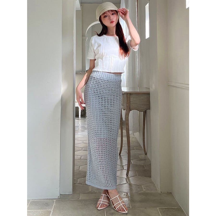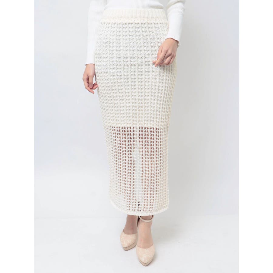 トレンドムードが漂うメッシュのペンシルスカート▽デザイン▽すっきりとした見た目に仕上がるタイトシルエットに表面感のあるメッシュ編みにすることでメリハリのあるデザインに仕上げました。膝下は程よい肌見せができ、抜け感のあるこなれたスタイリングに。ニット素材なのでストレスフリーに着用できるのもポイント◎バックスリット入りで足さばきも良くストレスフリーに着用していただけます。▽カラー▽白・黒・青の3色展開。▽スタイリング▽キレイめな印象のタイトスカートなのであえてシンプルなスウェットやTシャツ合わせがトレンド感がありオススメ◎サンダルやパンプスはもちろん、スニーカーでカジュアルダウンしてもバランスの取れたスタイリングになります。※着用画像はフラッシュの加減で実際の製品と色味等が異なる場合がございますので、生地のズームアップ画像をご確認ください。※ご利用の端末画面の設定により実際の商品と色味が異なる場合がございます。【商品特徴】透け感:あり伸縮性:あり生地の厚さ:普通サイズ感:細身裏地:ありポケット:なし
