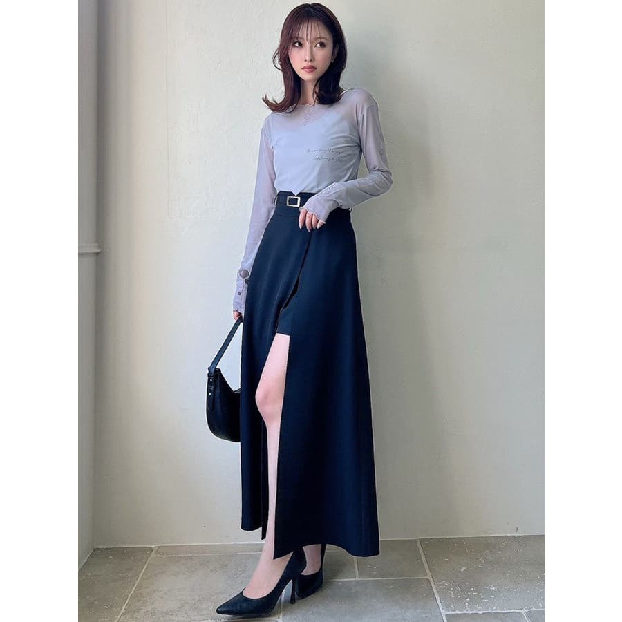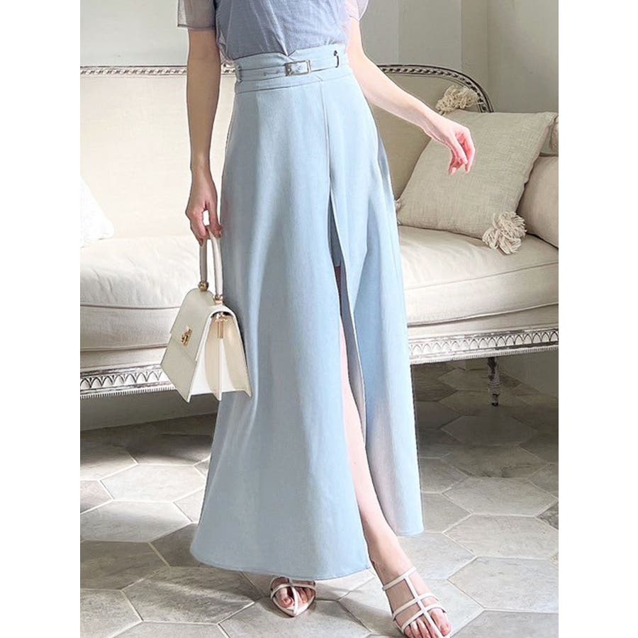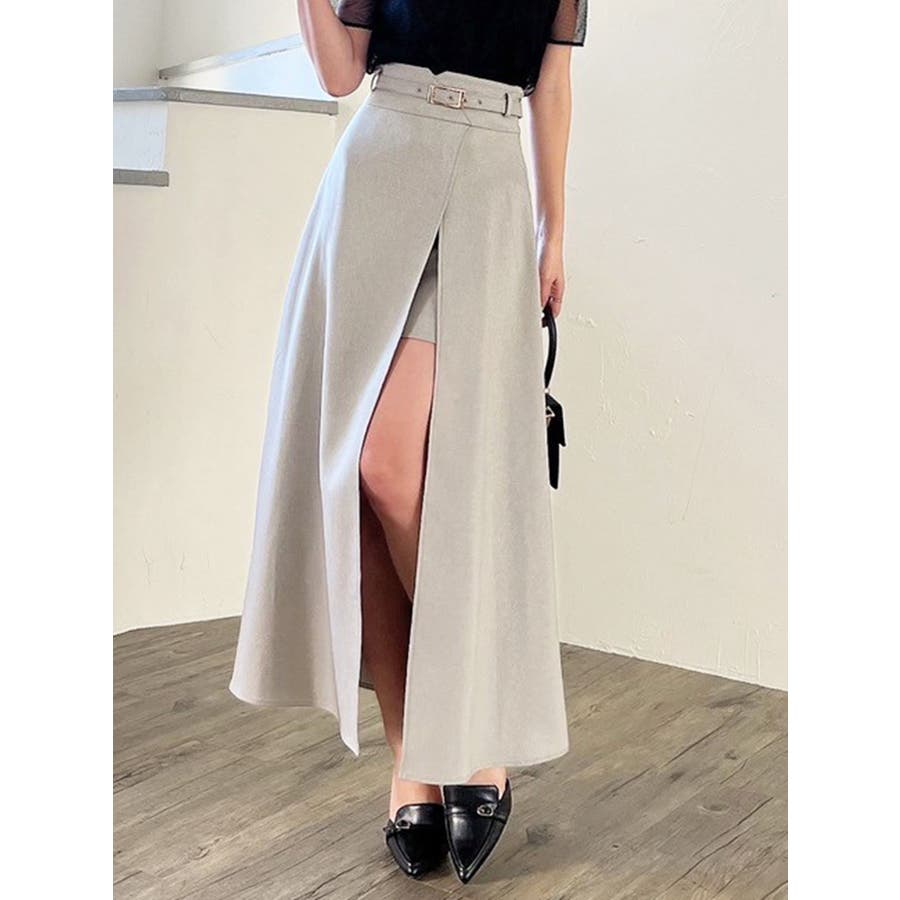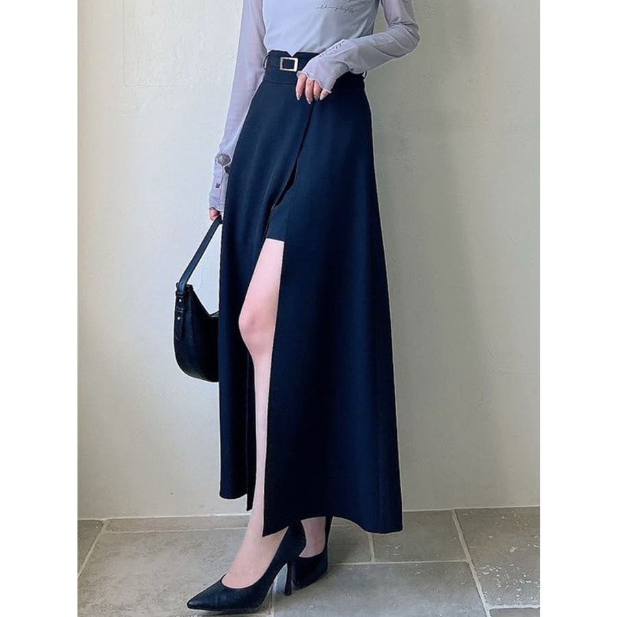 定番人気のレイヤードスカート▽デザイン▽揺れ感にこだわったフレアシルエットと深スリットで歩くたびに足が見え、抜け感と美脚効果を高めてくれるロングスカート。今回はバックルを華奢にしたことで上品な印象に。インナーはショートパンツになっているので安心感あるのが嬉しいポイント♪ハイウエストなので1枚でフィットフレアのシルエットを演出。▽カラー▽黒・青・ベージュの3色展開。▽スタイリング▽ニットからTシャツまでロングシーズン様々なトップスと合わせられる1枚。ヒールでキレイ目に合わせても、スニーカーでカジュアルダウンしても◎※着用画像はフラッシュの加減で実際の製品と色味等が異なる場合がございますので、生地のズームアップ画像をご確認ください。※ご利用の端末画面の設定により実際の商品と色味が異なる場合がございます。【商品特徴】透け感:なし伸縮性:なし生地の厚さ:普通サイズ感:普通裏地:ありポケット:なし