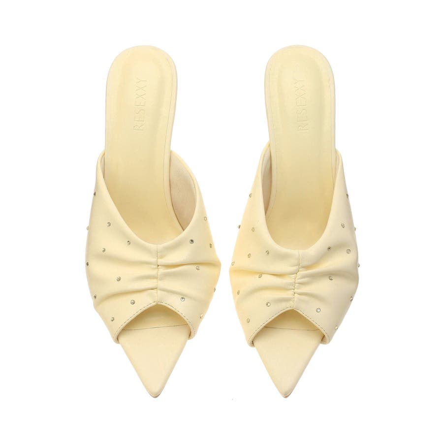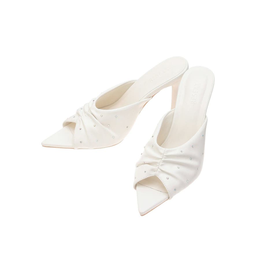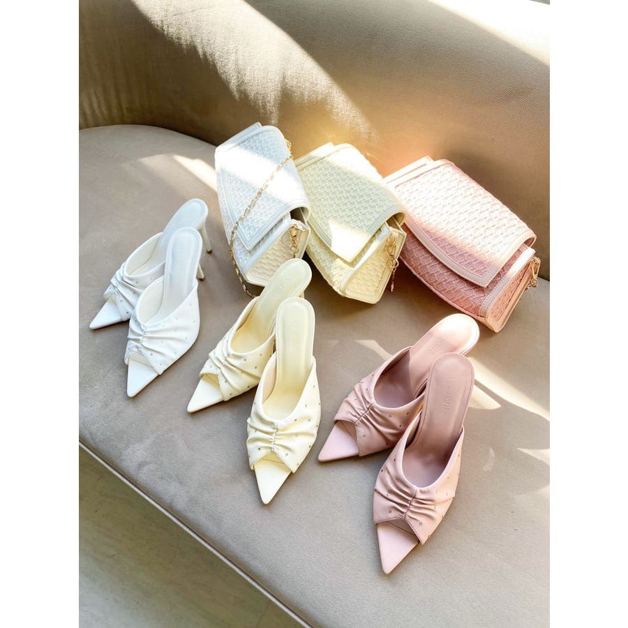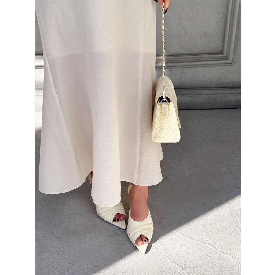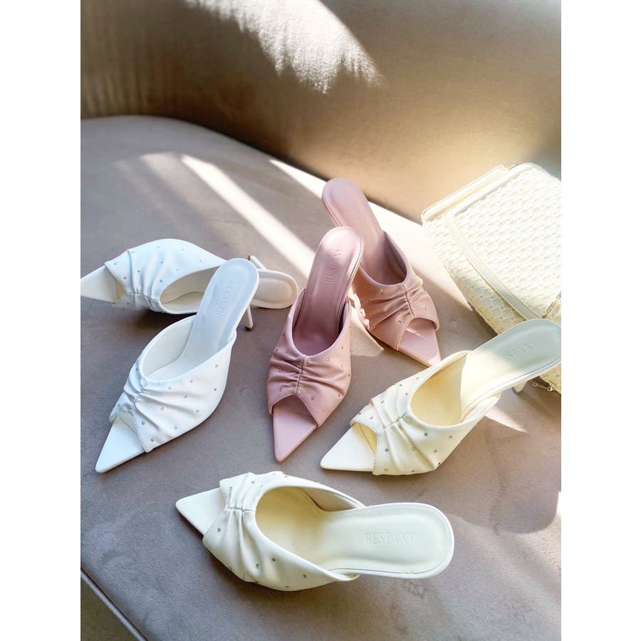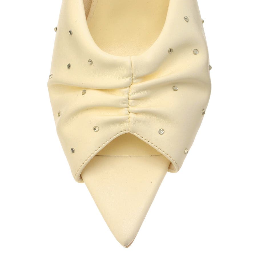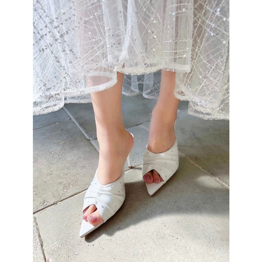 美しいシルエットと、アッパーのストーンがポイントのサンダル▽デザイン▽今季イチオシのサンダル!アッパーはギャザーデザインにし、小ぶりのストーンを散りばめました◎美しいシルエットで足元を華奢に、華やかに見せてくれます。▽カラー▽白・黄色・ピンクの3色展開。【スタッフ着用レビュー】 スタッフB(普段のサイズ: 24.5cm/足の幅: 9.8cm/甲の高さ: 5.6cm/ふくらはぎ周り:34cm)Lサイズで丁度良かったです。足幅もぴったりで、アッパー部分が柔らかい素材感なので足への負担が軽く履きやすいです。