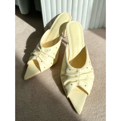 めちゃくちゃかわいいです。ヒールの高さも絶妙な高さ。甘すぎずクールすぎず本当にいい高さ。履くだけで女性らしさが洗練される感じ。底のつま先部分は尖っているので美脚効果抜群。ホワイトとイエローとも迷ったけれどかわいらしい淡いピンクでお気に入りです。