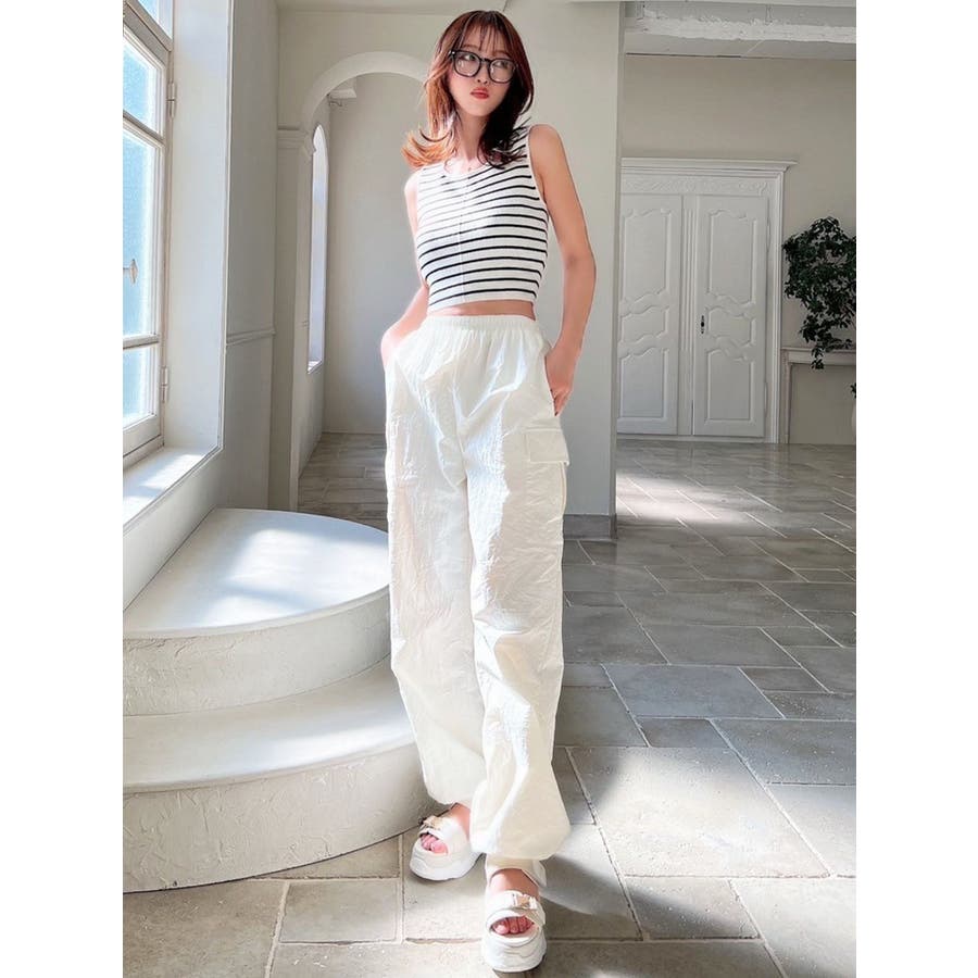 シンプルなデザインで1つ持っておくと重宝するタンクトップ▽デザイン▽トレンド感のあるクロップド丈で、1枚でスタイルアップを叶えます。コンパクトなサイジングと、程よいフィット感で女性らしさも兼ね備えました◎センターに切り替えをいれたことでシンプル過ぎないワンポイントに。シンプルなデザインで1枚は持っていたい、今年の夏のマストアイテム!▽カラー▽ベーシックな白・黒と、シーズンムード高まるボーダーの3色展開。お色違いでのGETもオススメです◎▽スタイリング▽着回し抜群のアイテム。ハイウエストボトムと合わせていただくとスタイルアップしたスタイルに◎1枚で着用するのはもちろん、キャミワンピースのインナーやジャケットのインナーとしても活躍します。※着用画像はフラッシュの加減で実際の製品と色味等が異なる場合がございますので、生地のズームアップ画像をご確認ください。※ご利用の端末画面の設定により実際の商品と色味が異なる場合がございます。【商品特徴】透け感:なし伸縮性:あり生地の厚さ:普通サイズ感:細身裏地:なしポケット:なし