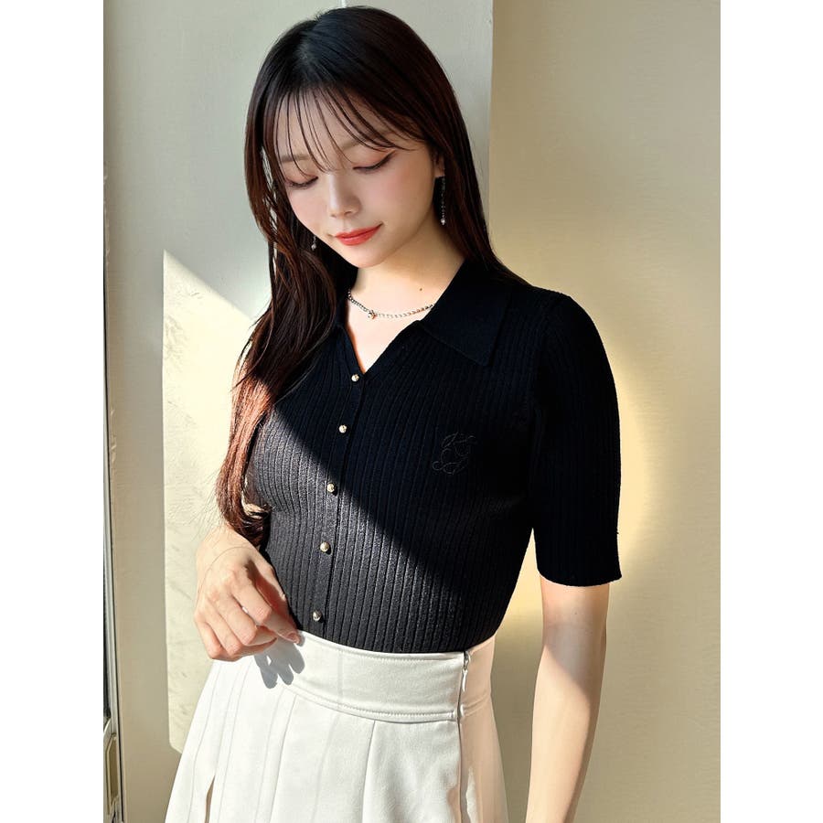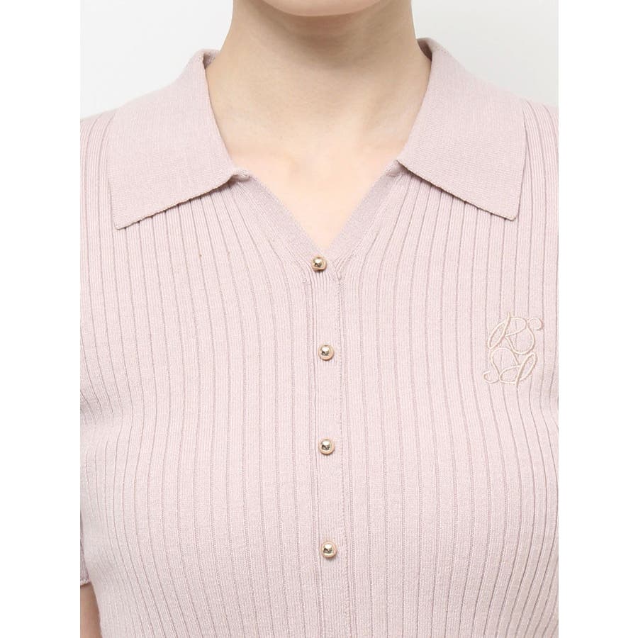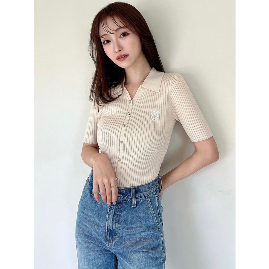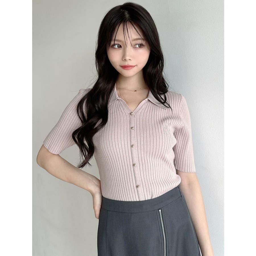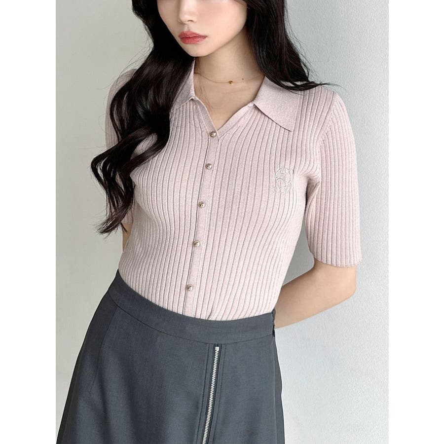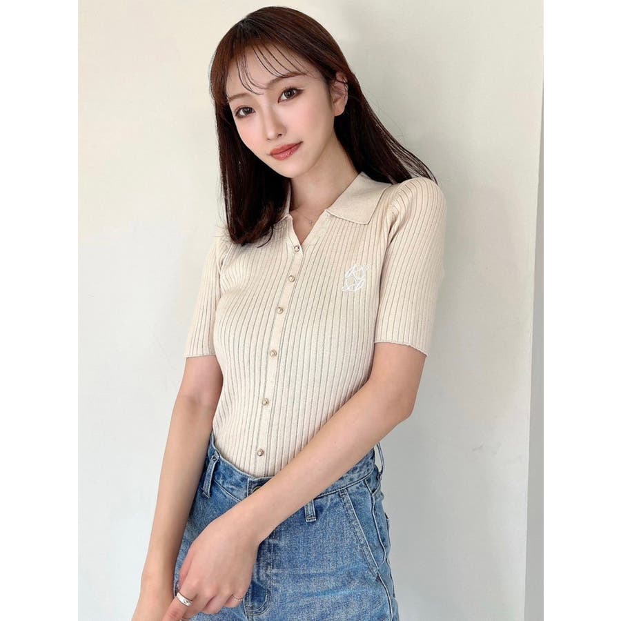 さりげないオリジナルロゴ刺繍がポイントのニットポロシャツ◎▽デザイン▽トレンド感のあるポロニットが登場。首元はすっきりと開け、リブニット素材でボディラインにフィットしタイトなシルエットを演出。オリジナルロゴを刺繍で加えたことでデザイン性をプラス。ゴールドボタンにしたことでカジュアルすぎずキレイめな着こなしに。▽カラー▽白・黒・青・ピンクの豊富な4色展開。▽スタイリング▽スカートからパンツまでどんなボトムスにも万能にマッチし着回し抜群!1枚でトレンド感のあるコーデに仕上がります◎※着用画像はフラッシュの加減で実際の製品と色味等が異なる場合がございますので、生地のズームアップ画像をご確認ください。※ご利用の端末画面の設定により実際の商品と色味が異なる場合がございます。【商品特徴】透け感:なし伸縮性:あり生地の厚さ:普通サイズ感:普通裏地:なしポケット:なし
