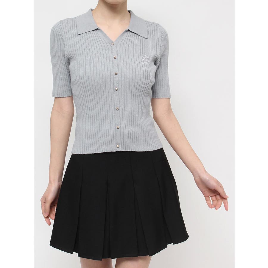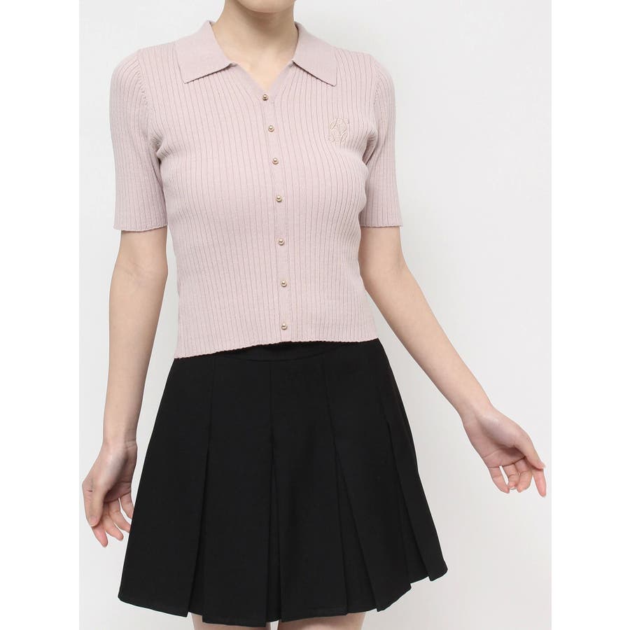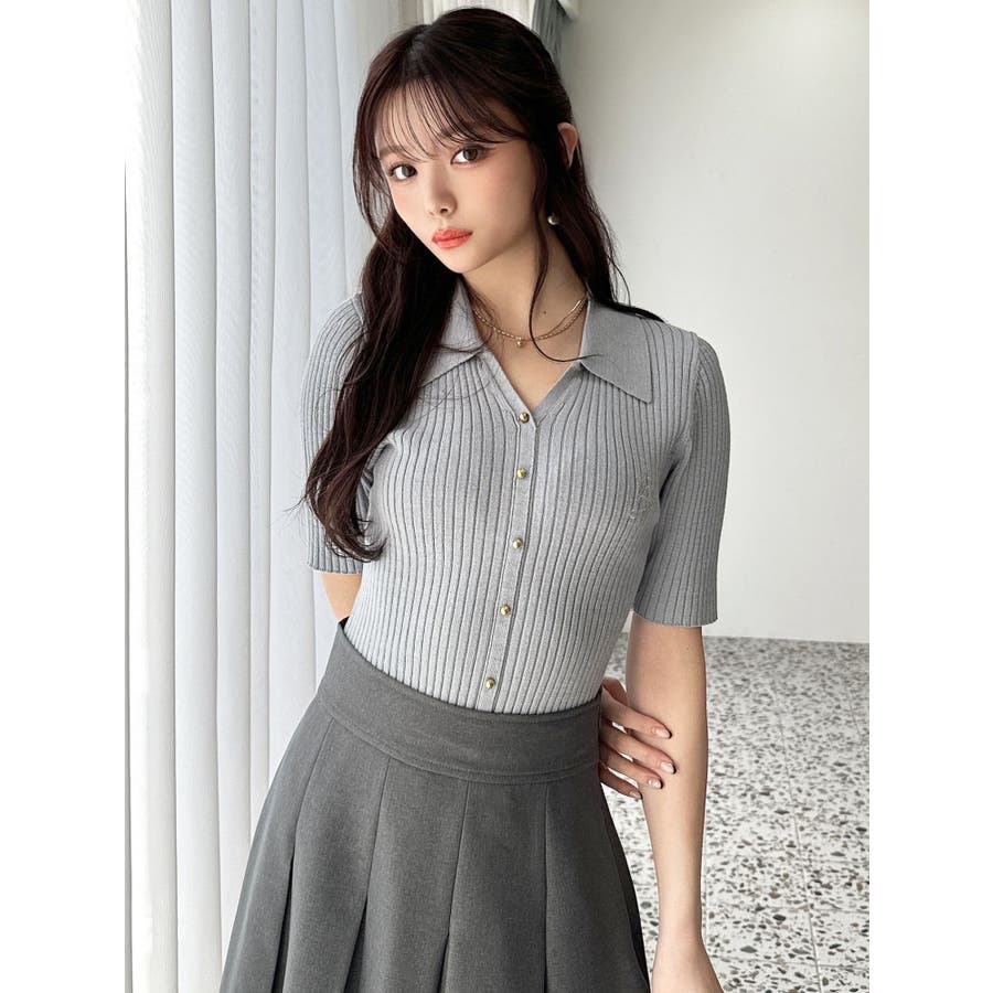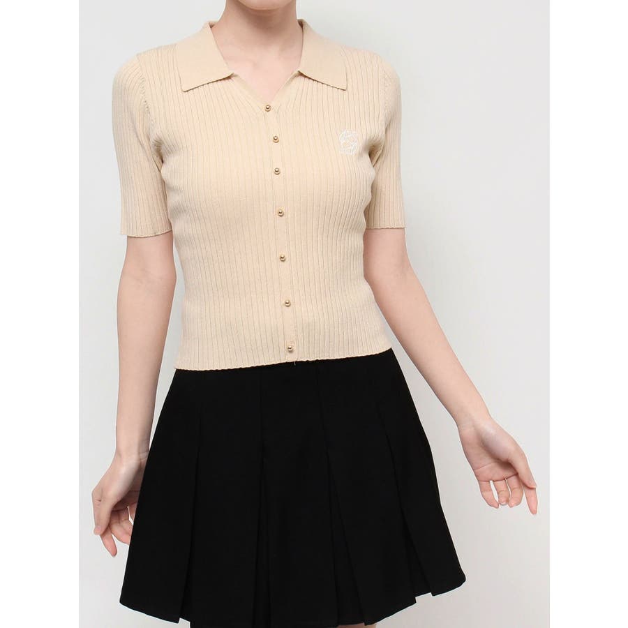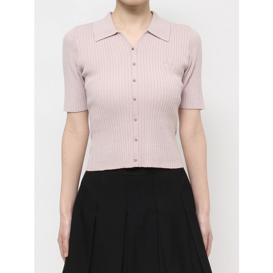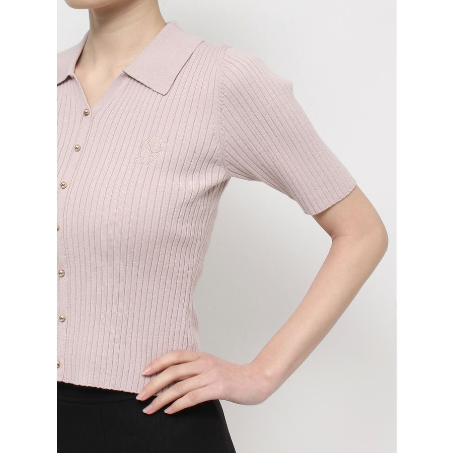 さりげないオリジナルロゴ刺繍がポイントのニットポロシャツ◎▽デザイン▽トレンド感のあるポロニットが登場。首元はすっきりと開け、リブニット素材でボディラインにフィットしタイトなシルエットを演出。オリジナルロゴを刺繍で加えたことでデザイン性をプラス。ゴールドボタンにしたことでカジュアルすぎずキレイめな着こなしに。▽カラー▽白・黒・青・ピンクの豊富な4色展開。▽スタイリング▽スカートからパンツまでどんなボトムスにも万能にマッチし着回し抜群!1枚でトレンド感のあるコーデに仕上がります◎※着用画像はフラッシュの加減で実際の製品と色味等が異なる場合がございますので、生地のズームアップ画像をご確認ください。※ご利用の端末画面の設定により実際の商品と色味が異なる場合がございます。【商品特徴】透け感:なし伸縮性:あり生地の厚さ:普通サイズ感:普通裏地:なしポケット:なし