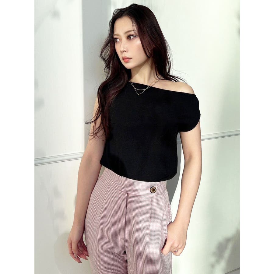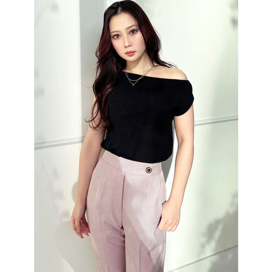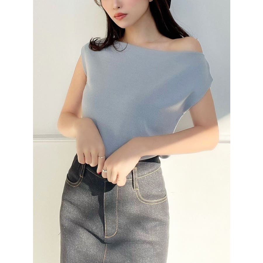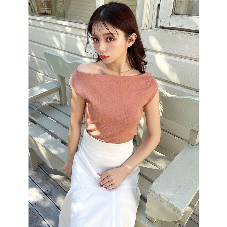 アシンメトリーボートネックニットトップス