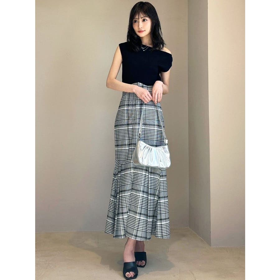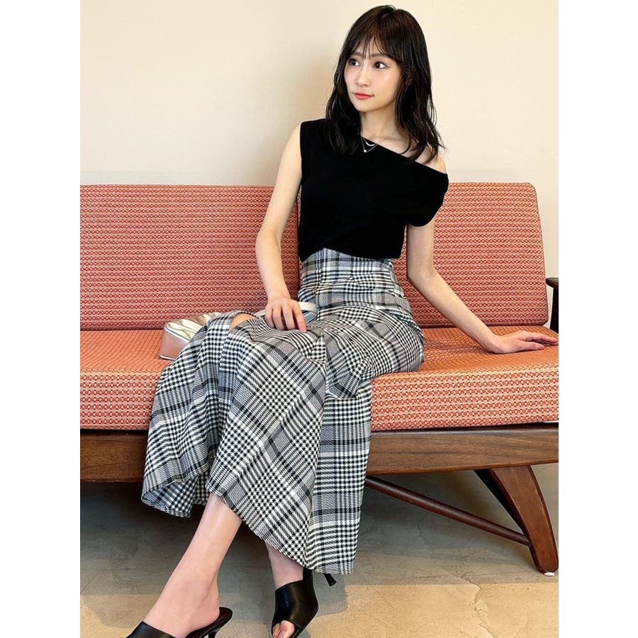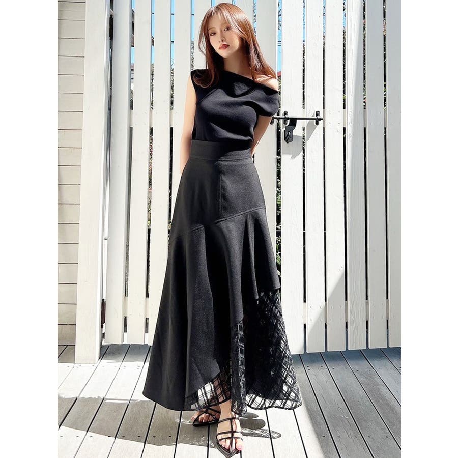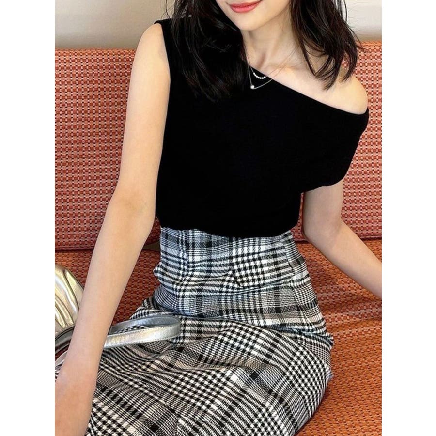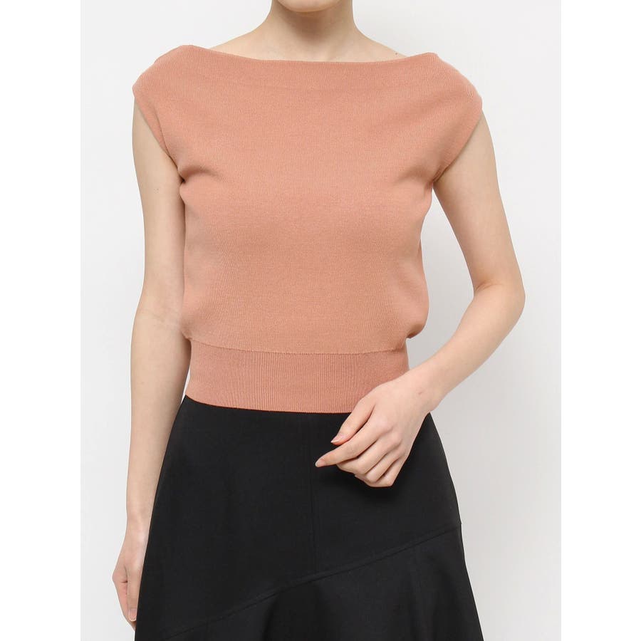 アシンメトリーボートネックニットトップス