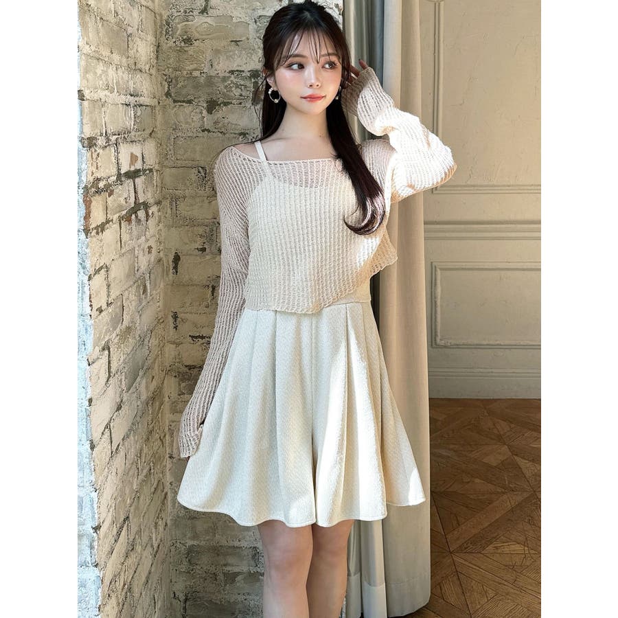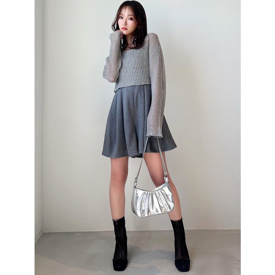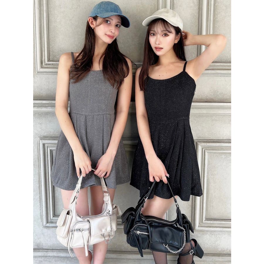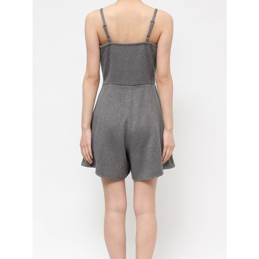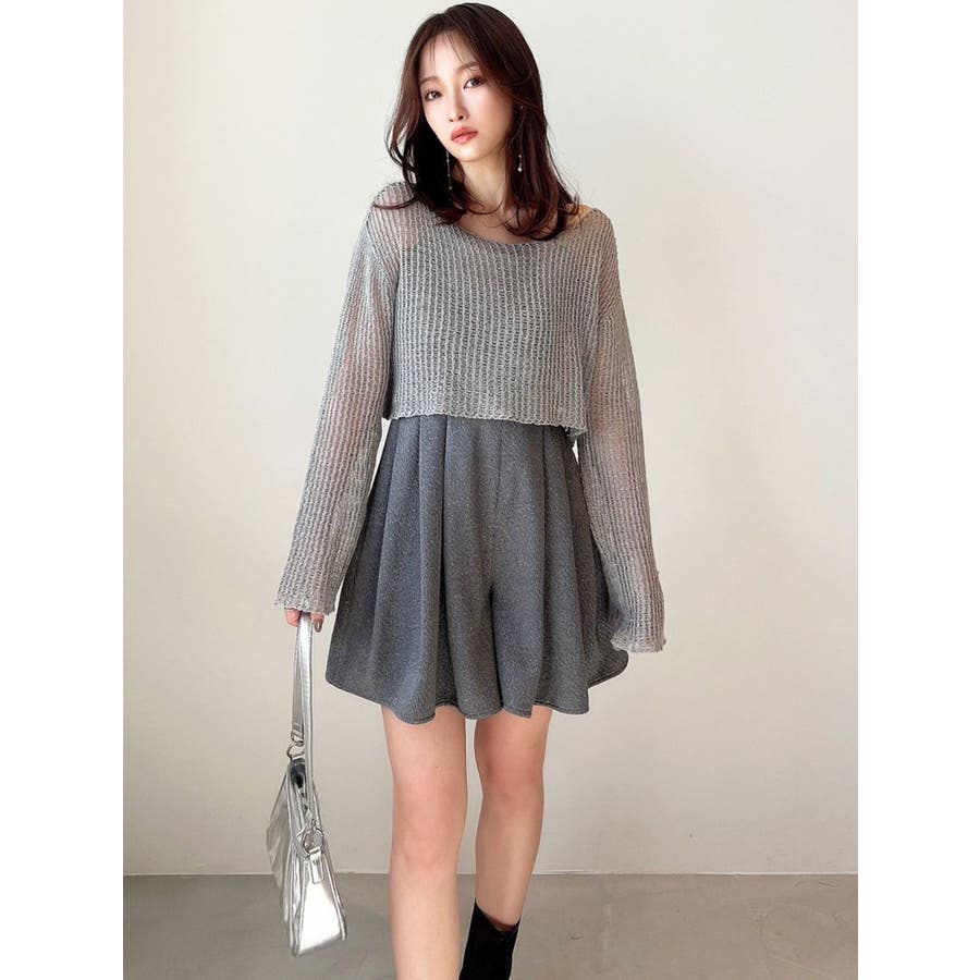 キラキラした生地に目を惹くコンビネゾン▽デザイン▽裾幅をあえて広く設定し、ウエストにタックを入れることでフレアスカート見えするショートコンビネゾンに。パンツになっているので動きやすく、高身長の方でも着やすいデザインです。コンパクトにコーデをまとめてくれ、美脚効果抜群◎ウエスト部分に切り替えを入れ1枚でスタイルアップができるデザインです。▽カラー▽白・黒・グレーの3色展開。▽スタイリング▽1枚での着用はもちろん、インナーを合わせたレイヤードスタイルでロングシーズンお使いいただけるアイテム。【オススメコーデアイテム】152432664301:メッシュルーズトップス