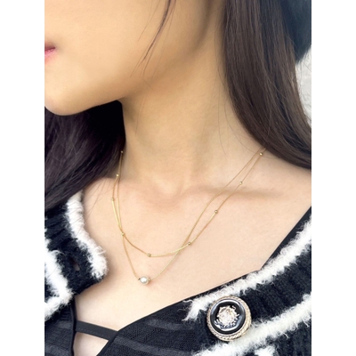 形の異なる2種類のチェーンを使用したトレンド感のあるデザイン。シンプルなコーデにプラスするだけで洒落感がでます。トップの重厚感たっぷりなパールが上品な印象になり、高見えするアイテムです。