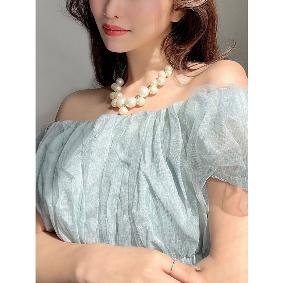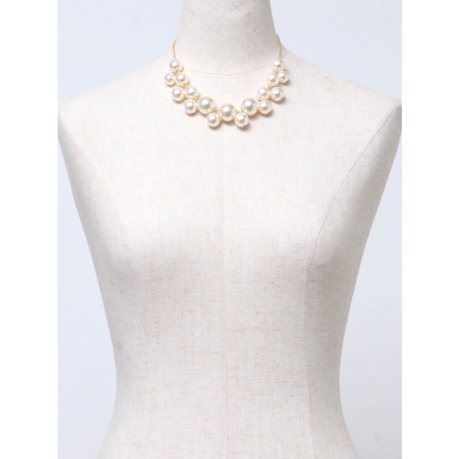 大振りのパールがトレンド感をプラスしてくれるネックレス。ランダムに付けた大き目のパールがポイント!シンプルなアイテムやオフショルのアイテムと相性抜群◎顔周りを華やかに見せてくれ、スタイリングのアクセントになります。