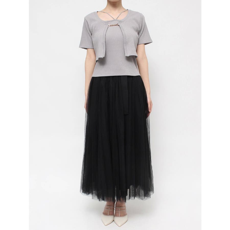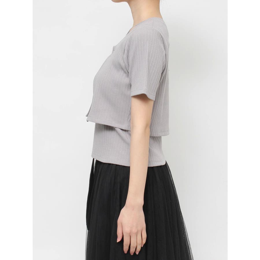 F: バスト[アウター]90[インナー]74cm/着丈[アウター]34cm/袖丈[アウター]19cm/肩幅[アウター]36cm/前下がり[インナー]調節可能cm/総丈[インナー]38.5cm/計量約300g